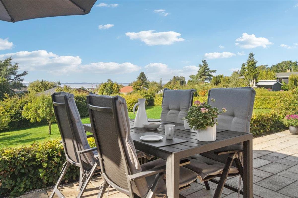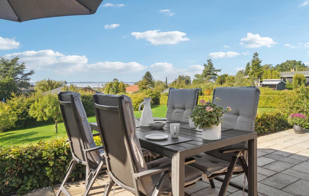 Prachtig vakantiehuis aan Bakkebølle Strand met zeezicht en tuin, perfect voor ontspanning en buitenactiviteiten.