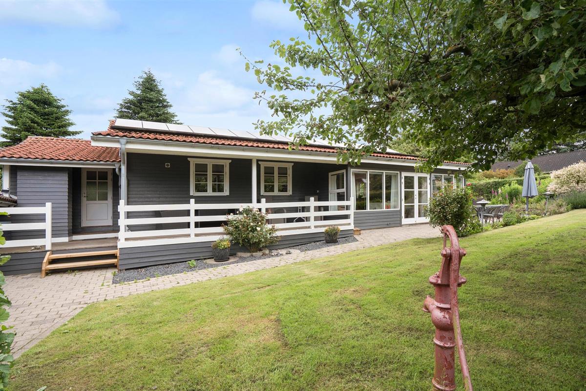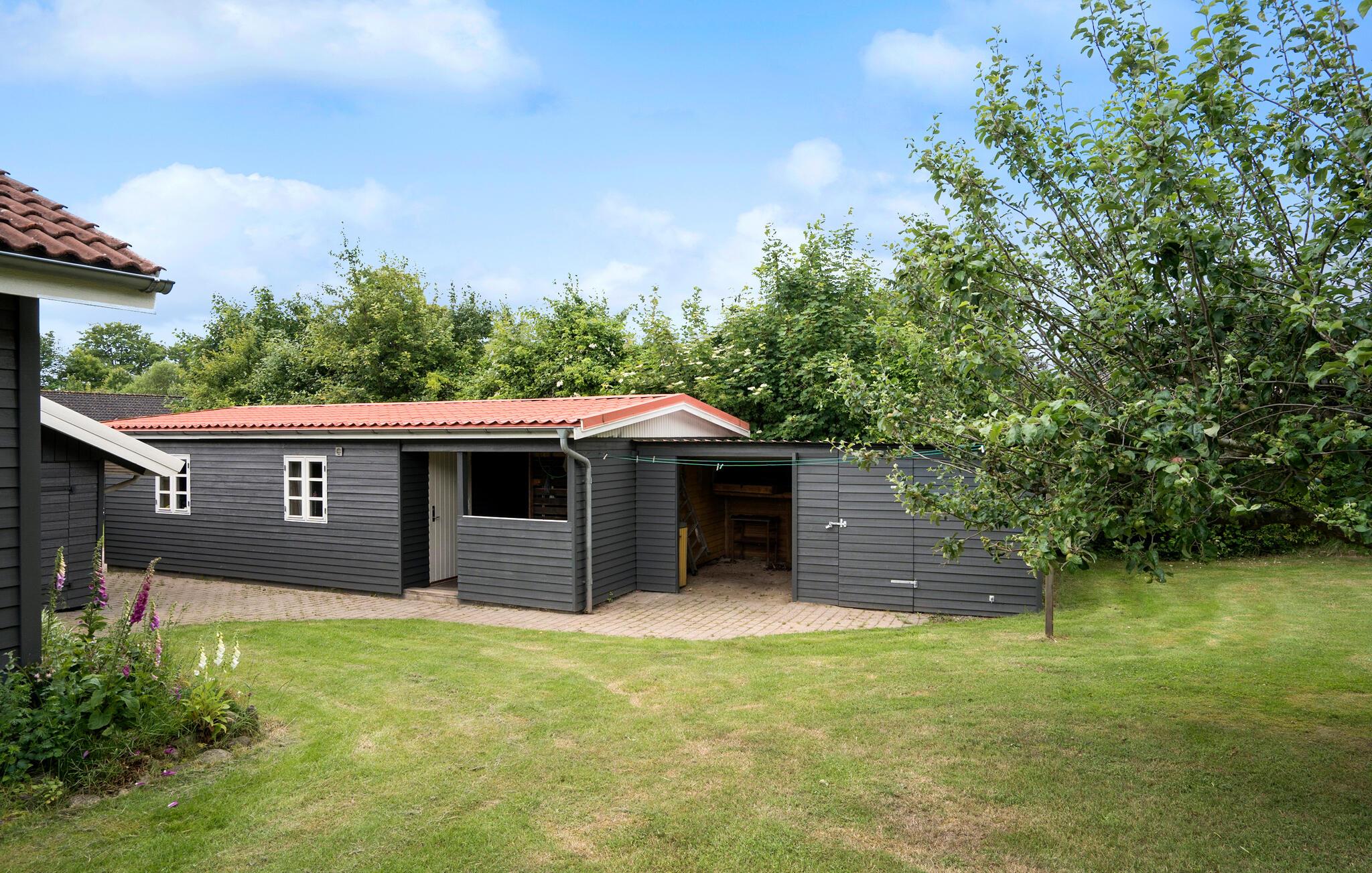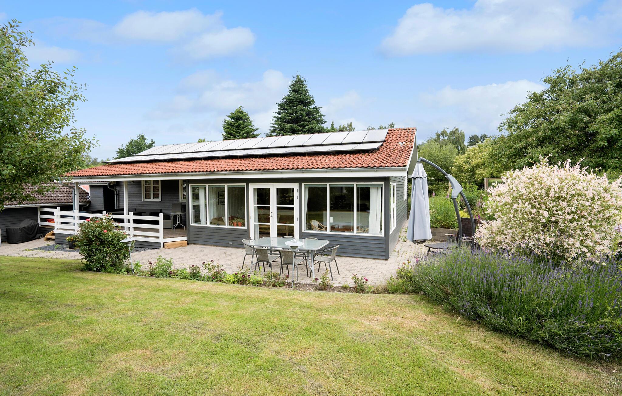 Charmant vakantiehuis nabij Bakkebølle Strand met serre, tuin en houtkachel, ideaal voor een ontspannen gezinsvakantie.