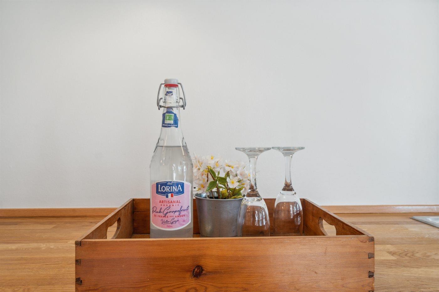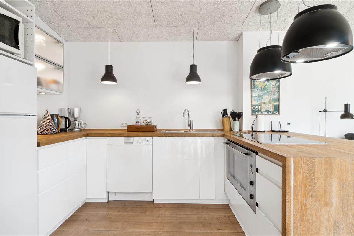 De keuken is uitgerust met koelkast Er is 5 inductiekookplaten, heteluchtoven, magnetron en vaatwasser.