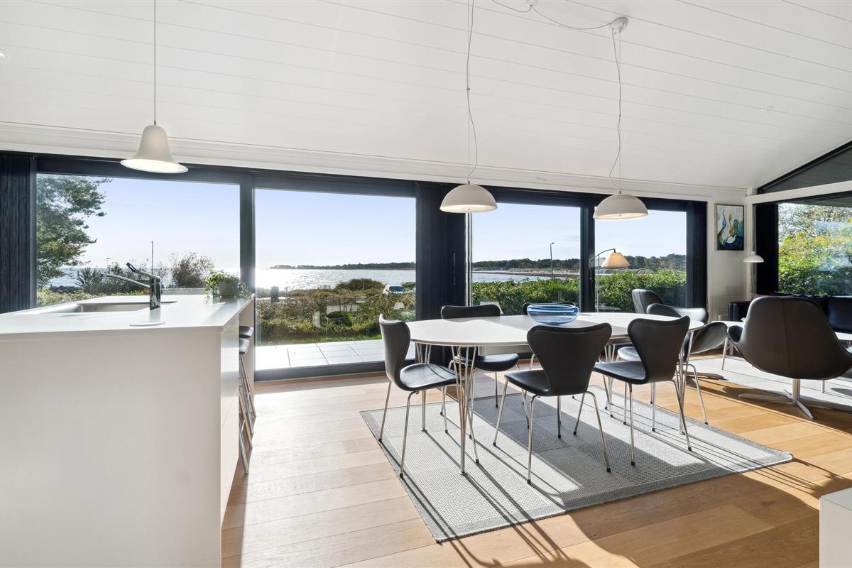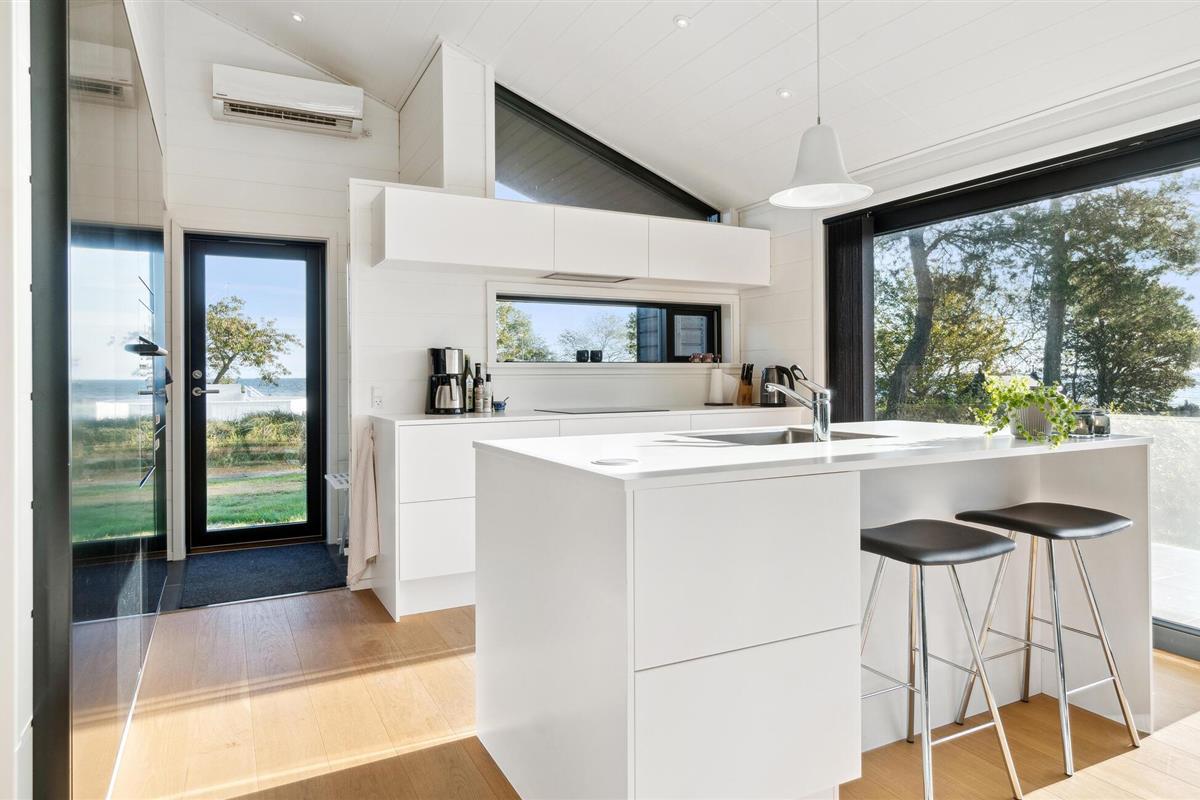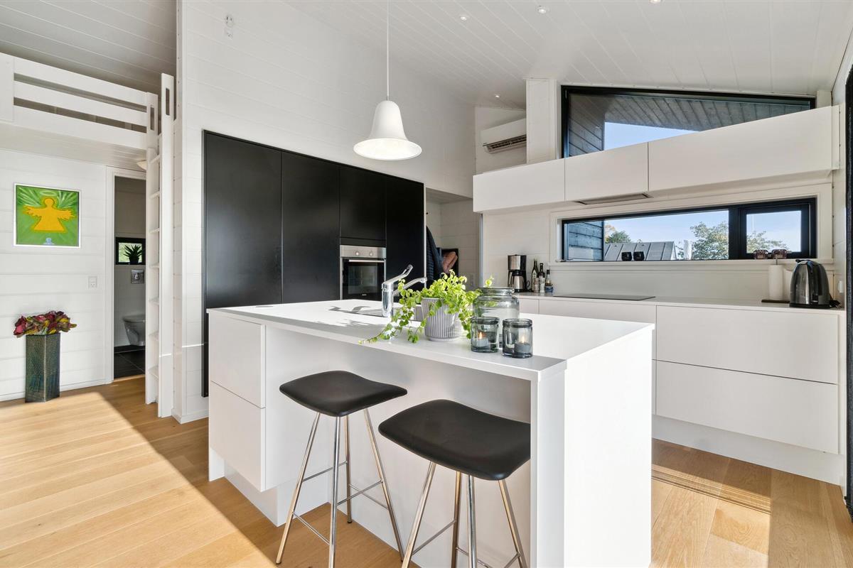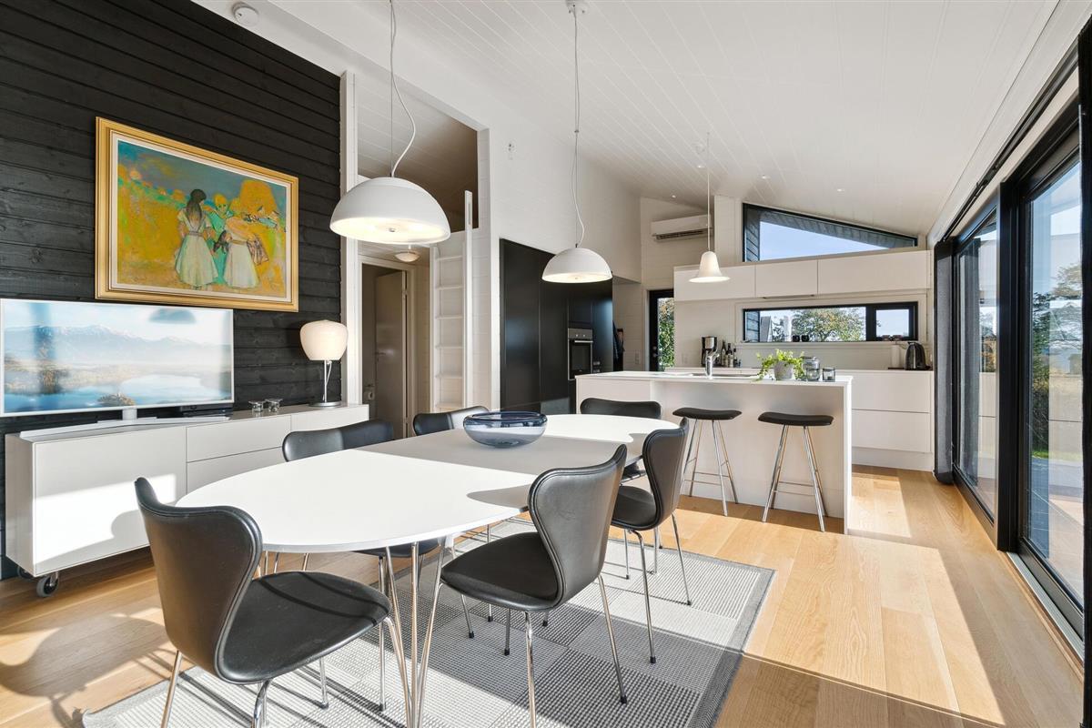 Je elegante en stijlvolle vakantiehuis heeft alles wat je nodig hebt voor een onvergetelijke vakantie. Begin je dag met een warme kop koffie en bereid een heerlijk ontbijt voor je geliefden in de moderne, open keuken. Het hele gezin kan aan de uitnodigende eettafel zitten en genieten van het prachtige panoramische uitzicht op zee, dat praktisch direct achter de grote ramen ligt. De zithoek belooft ook gezelligheid. Verdiep je in een goed boek of speel leuke bordspelletjes met je kinderen. Haal diep adem op het terras en laat je blik dwalen. De terrastafel nodigt je uit om te blijven hangen en te genieten van een heerlijke barbecue.