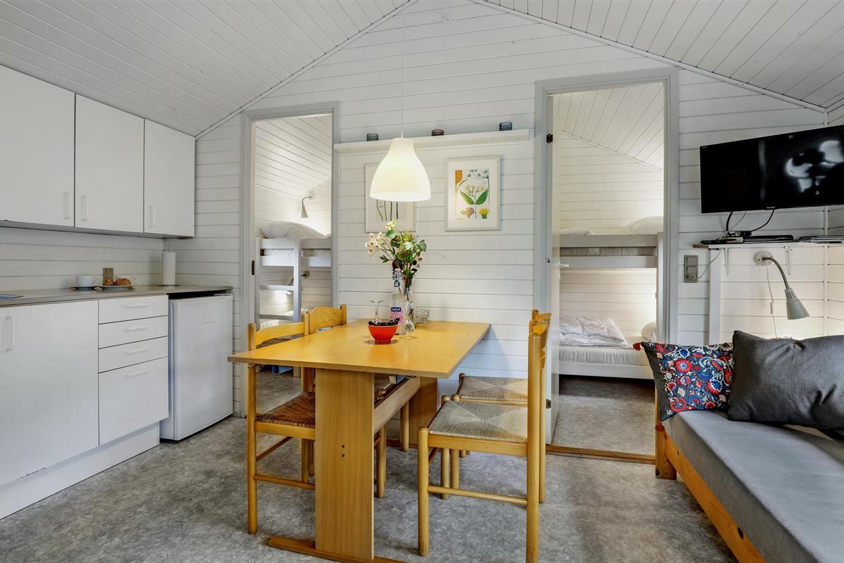 Het vakantiehuis is goed uitgerust. Je kunt een gezellige Scandinavische inrichting verwachten met een kitchenette. Geniet van een kopje koffie in de gezellige woonkamer of zoek een beschut plekje op het zonnige terras.