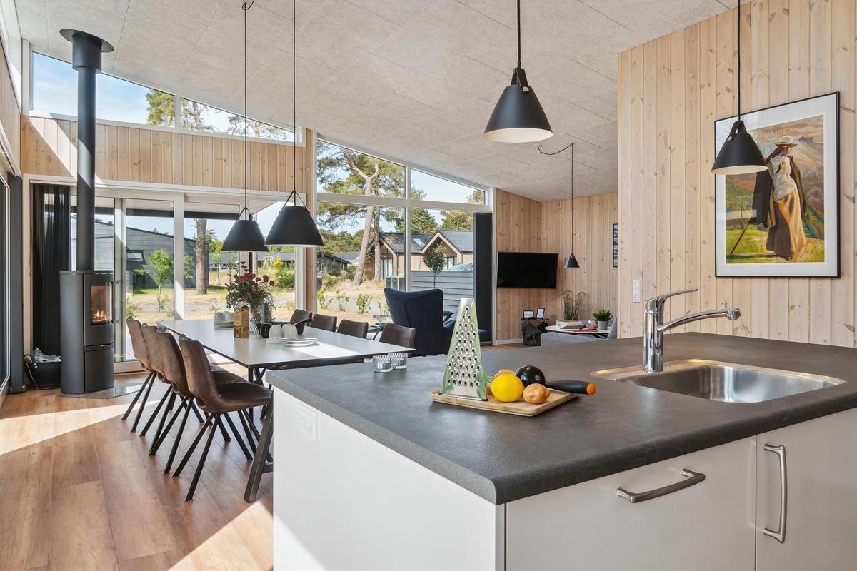 Balka en dit prachtige vakantiehuis staan bekend om het mooie en gezinsvriendelijke zandstrand en bieden de ideale omstandigheden voor een gezinsvakantie op het eiland Bornholm. Vanaf het moment dat je het huis binnenkomt, voel je je meteen thuis. De huiselijke sfeer, de houten lambrisering aan de muren en het gezellige meubilair dragen allemaal bij aan het geweldige gevoel van welzijn. Daag jezelf uit voor bordspellen aan de eettafel en geniet van een knapperend haardvuur op koelere dagen. Stap vanuit de woonkamer het gedeeltelijk overdekte terras op. Hier vind je heerlijke hoekjes en gaatjes om buiten van je maaltijden en de zon te genieten. Terwijl je kinderen overdag kunnen ravotten in de tuin, kun je 's avonds samen rond de vuurschaal zitten en zelfs de nacht doorbrengen in het comfortabele afdak.