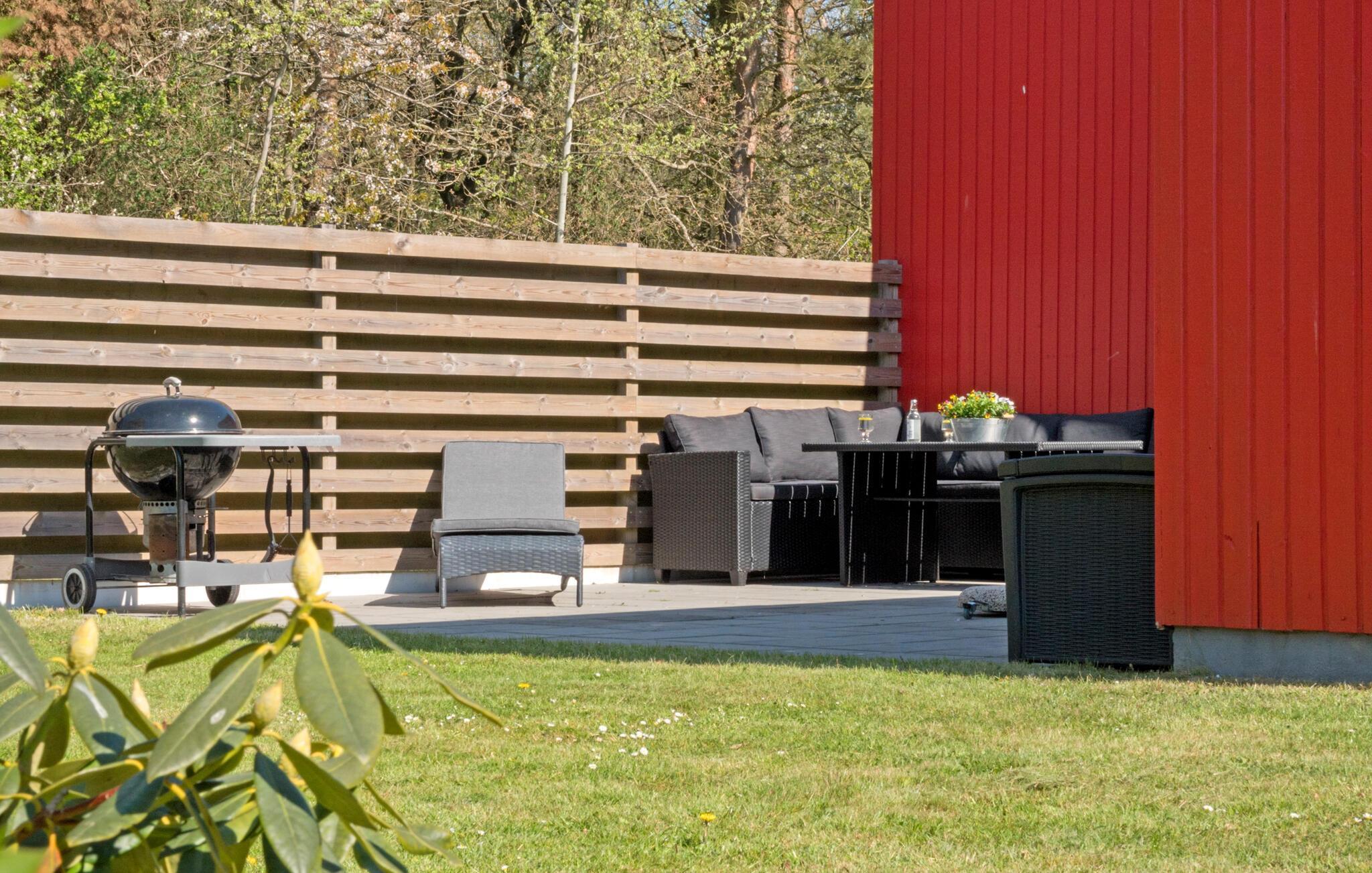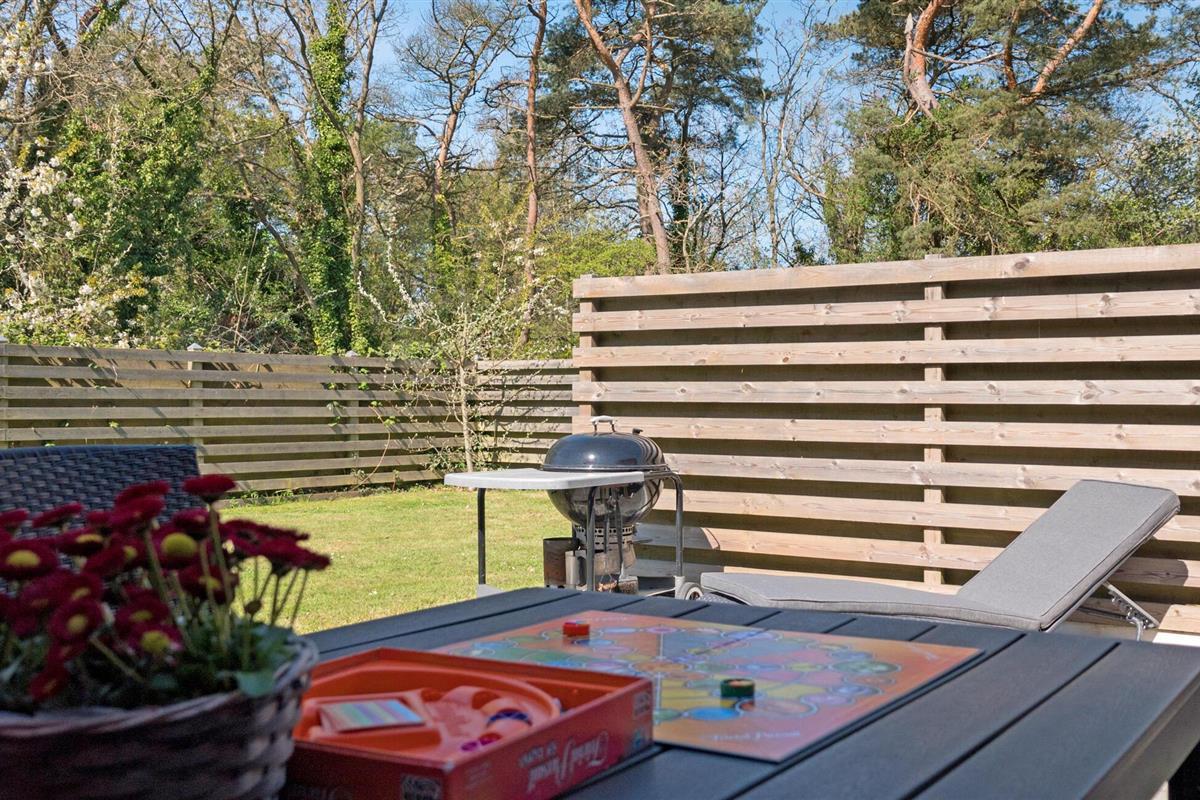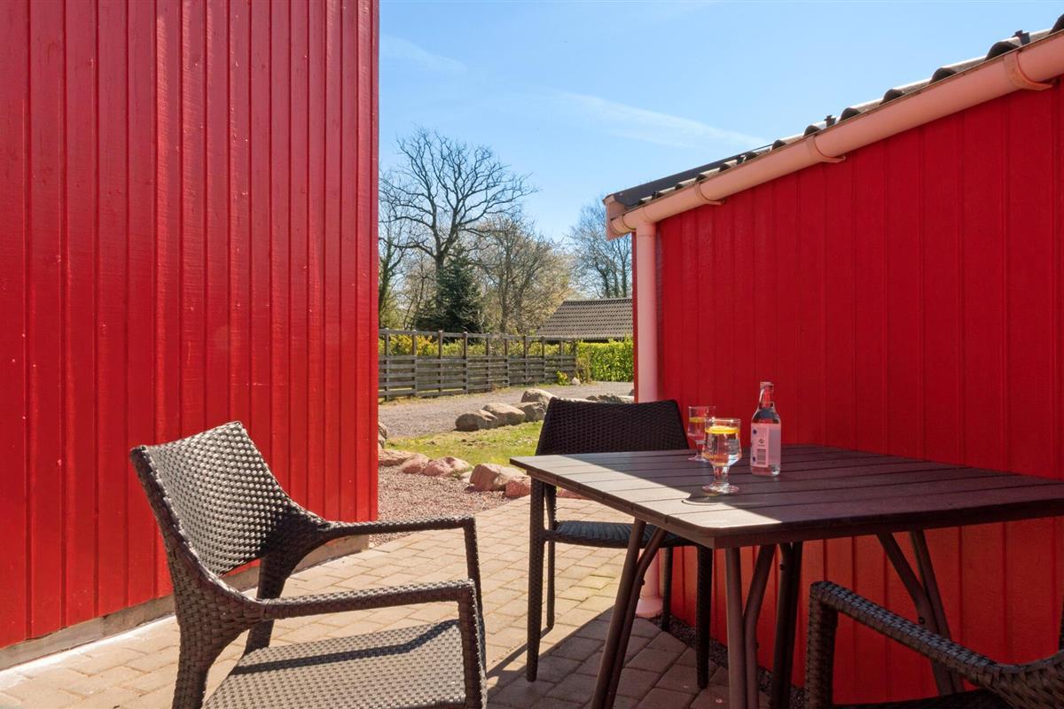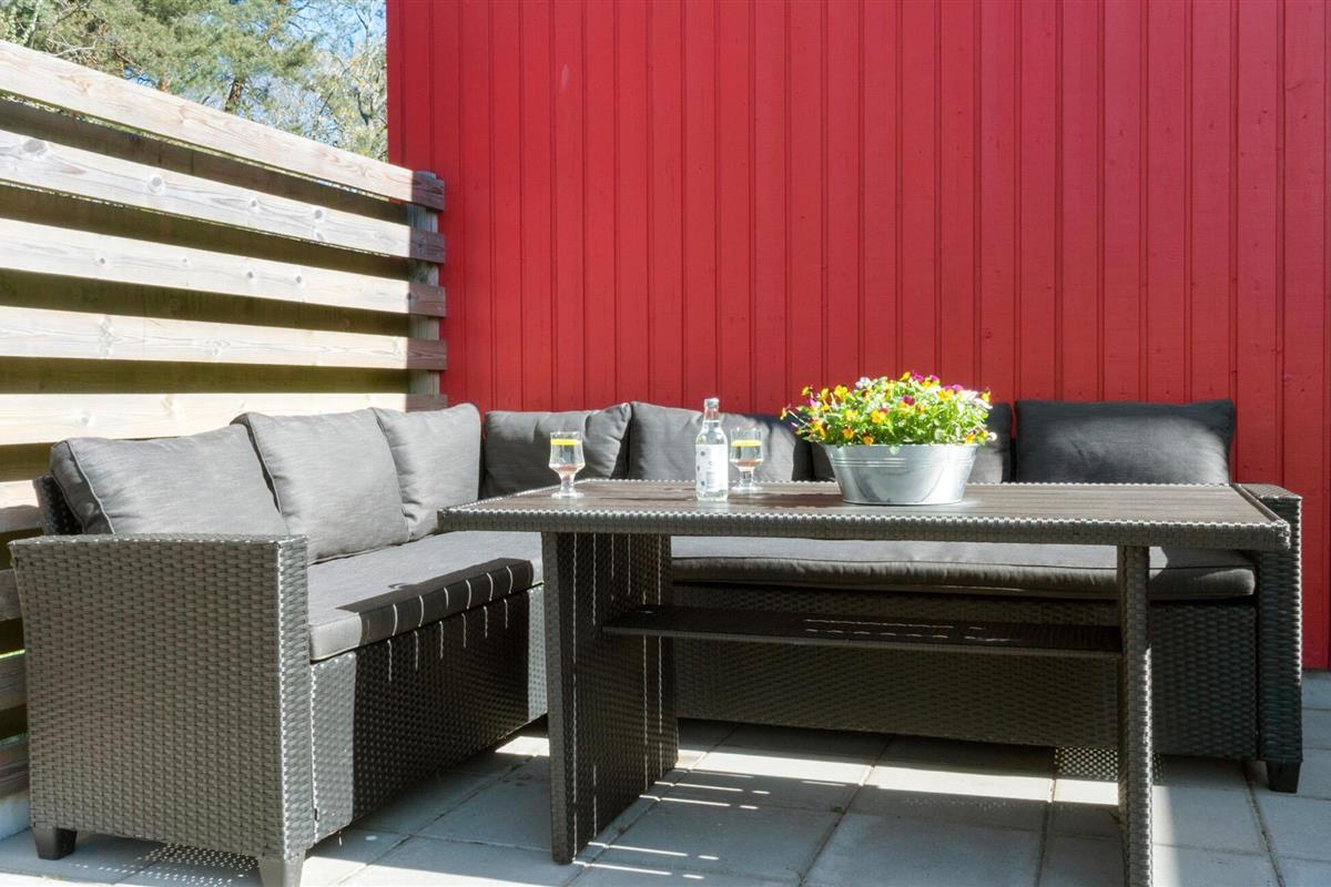 Mooie houten vakantiewoning nabij strand met sauna, houtkachel en groot terras in rustige omgeving.