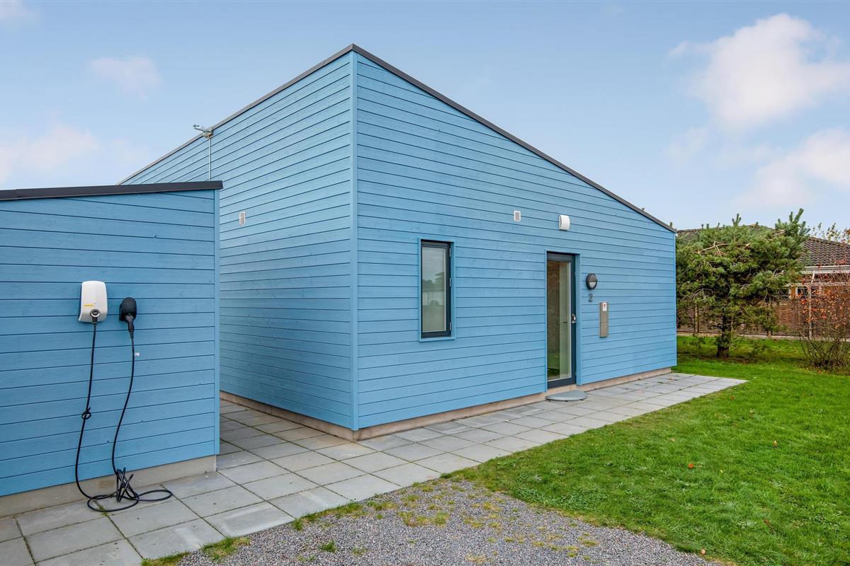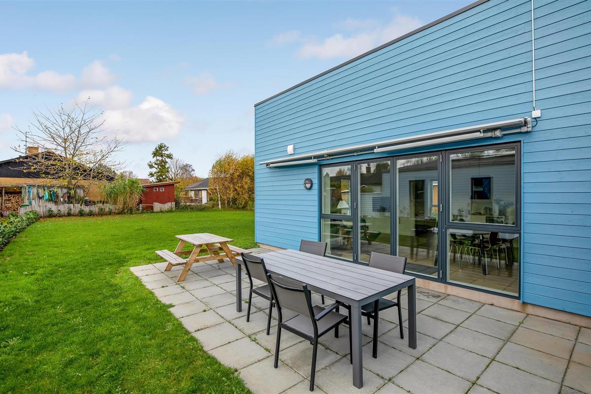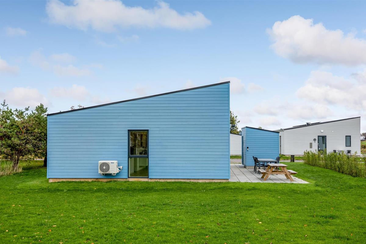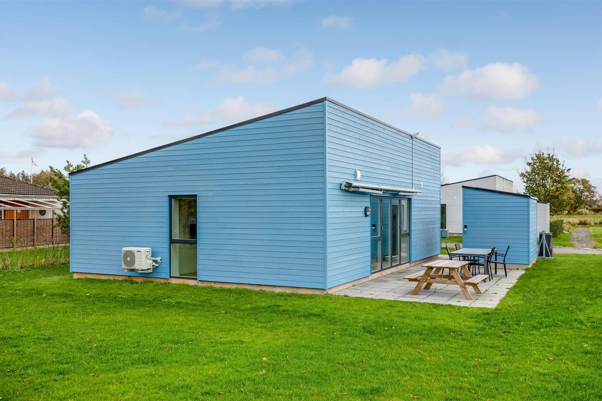 Modern vakantiehuis in Snogebæk met duurzame energie en terras, dicht bij strand en natuur.
