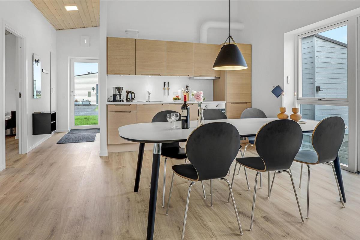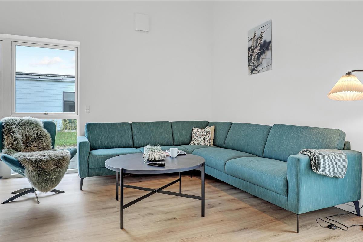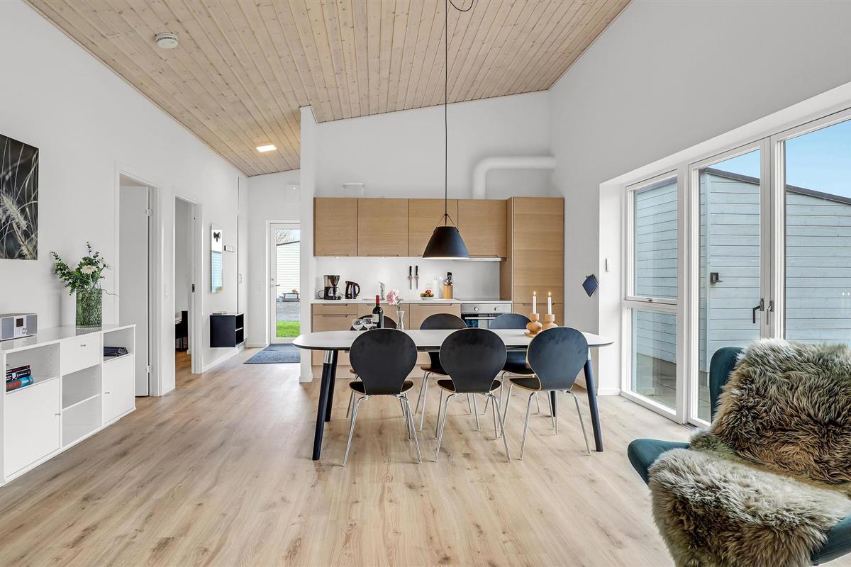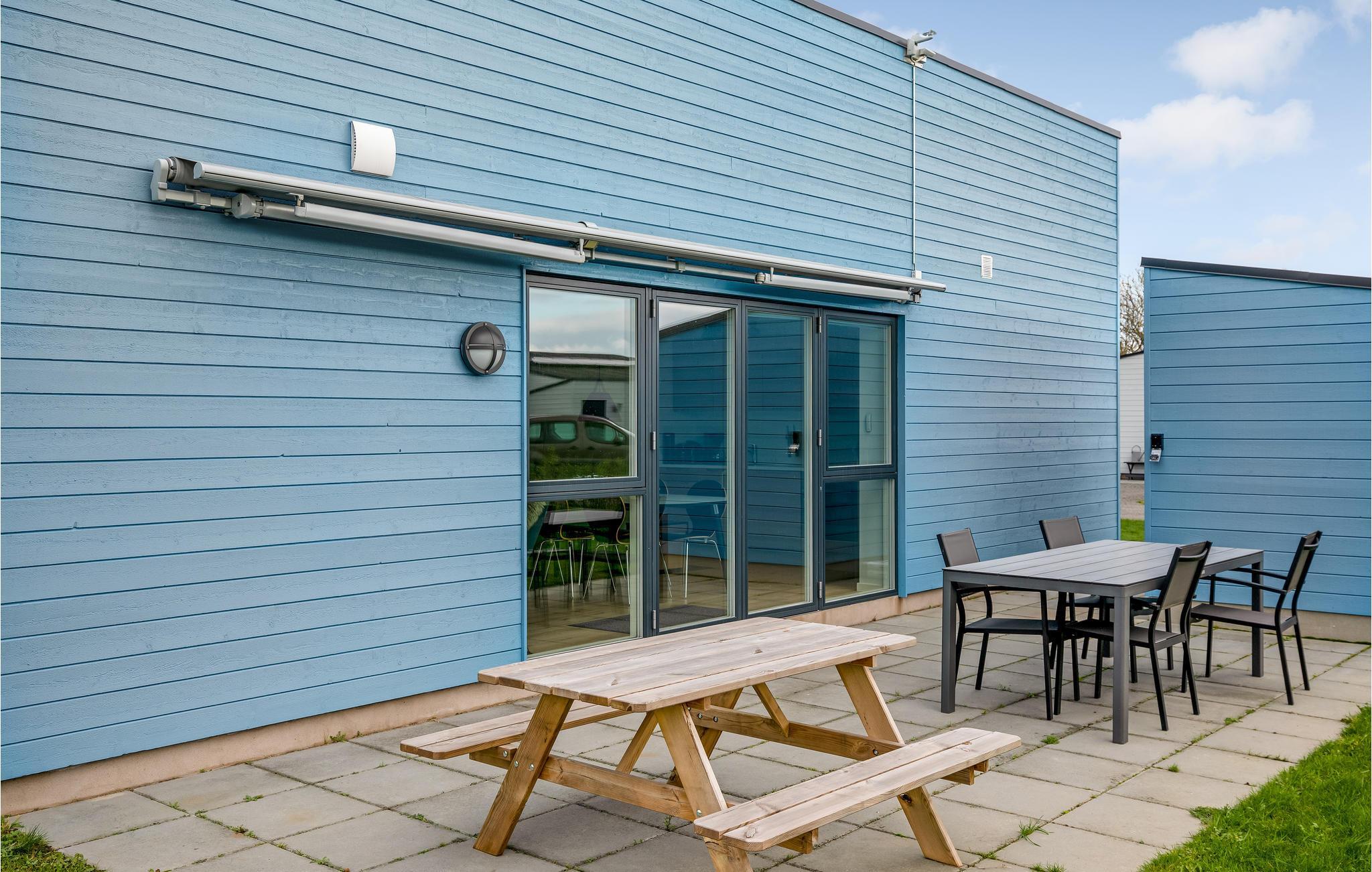 Modern vakantiehuis in Snogebæk met duurzame energie en terras, dicht bij strand en natuur.