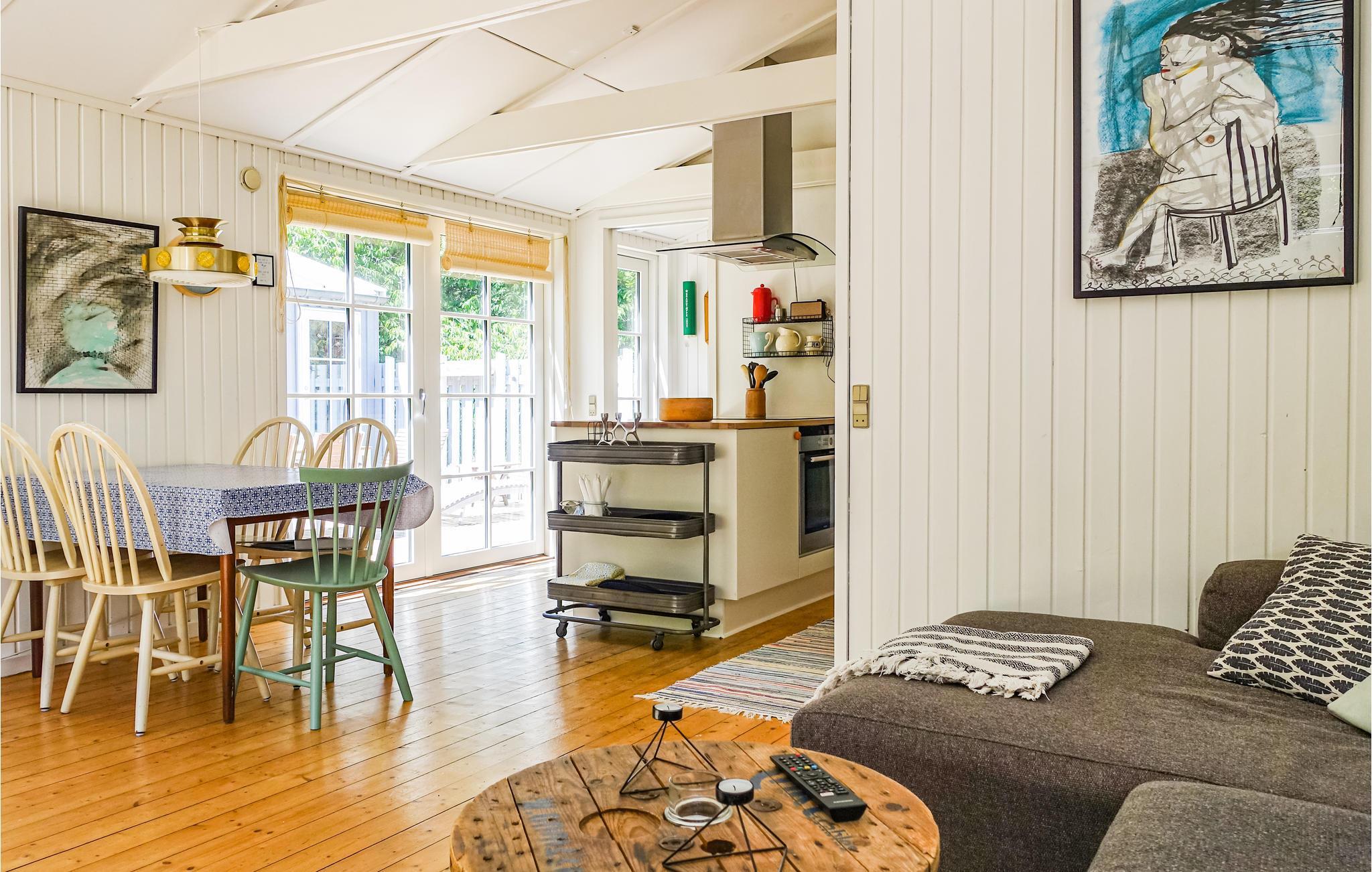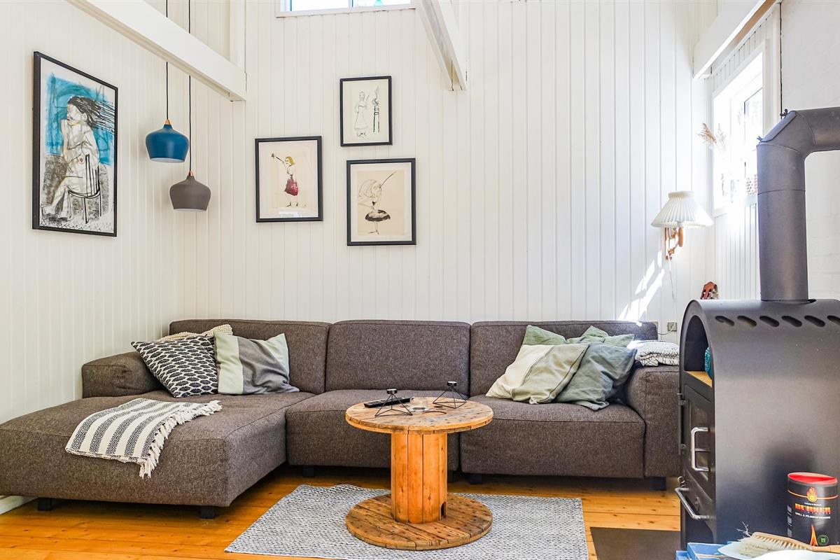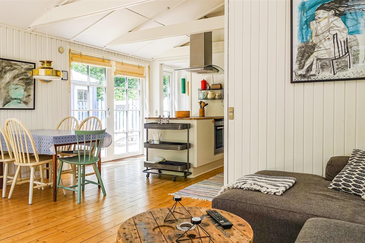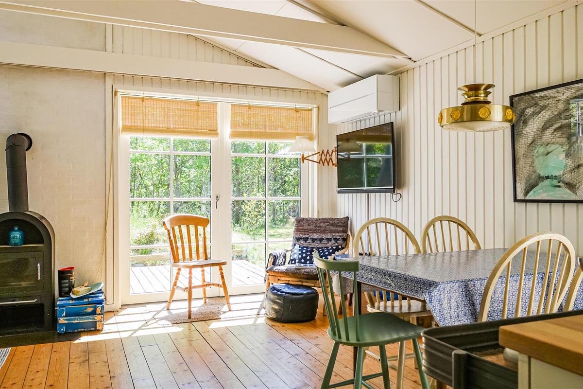 Het huis ligt afgelegen op een prachtig groot natuurgrondstuk, op slechts 600 meter van het kindvriendelijke zandstrand en de gezellige omgeving. Ontspan in de mooie woonkamer, die helemaal open is tot aan de puntgevel en vanuit vele hoeken licht binnenlaat door ramen in het plafond. Als het buiten regent en rilt, kun je knus bij de open haard zitten, en als de zon schijnt, open je gewoon de deuren en stap je het groen in. Je kunt je ook verheugen op het koken in de goed uitgeruste keuken, terwijl de rest van het huis verschillende geweldige faciliteiten heeft, waaronder een grote badkamer met spa en sauna. Naast de twee slaapkamers in het huis is er ook een loft en een bijgebouw met een tweepersoonsbed.