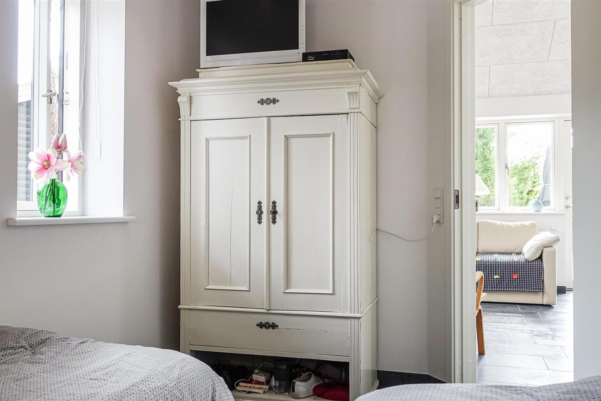 Op mooie, zonnige dagen kunt u heerlijk zitten op het grote houten terras met tuinmeubilair en een barbecue. Als u wilt gaan zwemmen of joggen, kunt u zich met warm water afspoelen bij de buitendouche. Mocht u meer ruimte nodig hebben om te koken, dan is er een bijkeuken in het bijgebouw met onder andere een koelkast en kooktoestel.