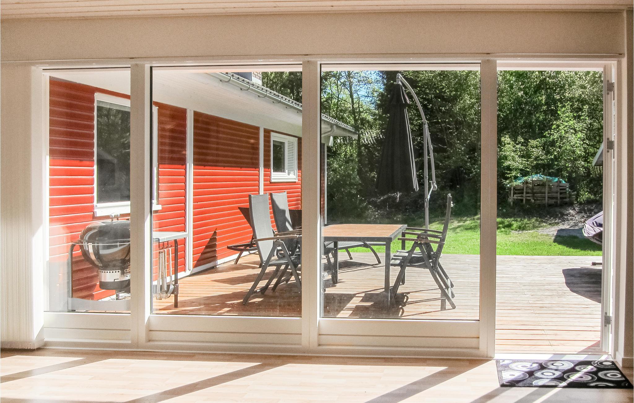 Vanuit de woonkamer heb je toegang tot een groot, beschut en zonnig houten terras met tuinmeubilair inclusief ligstoelen om te zonnen en een hangmat voor een dutje in de buitenlucht - en een barbecue voor gezellige barbecue-avonden. Hier kun je genieten van de zon en de frisse lucht terwijl je een goed boek leest of een kop koffie of een glas wijn drinkt.