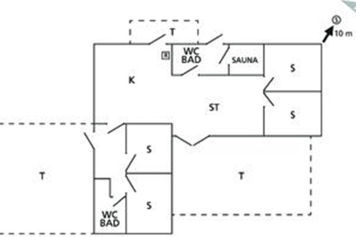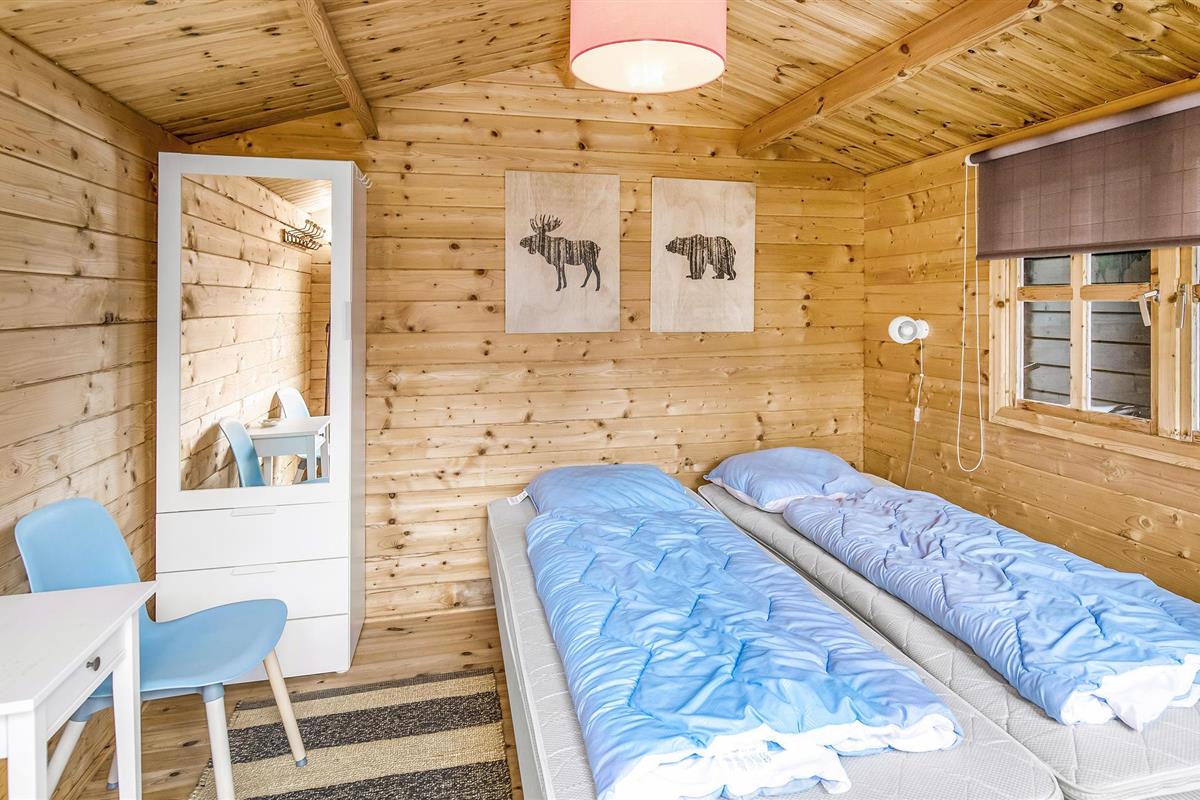 De woonkamer, die open is naar de keuken, is erg gezellig. Op koelere dagen kun je de kachel aansteken. Naast de vier slaapkamers zijn er twee aparte ruimtes met twee eenpersoonsbedden of een smal tweepersoonsbed (140 cm).