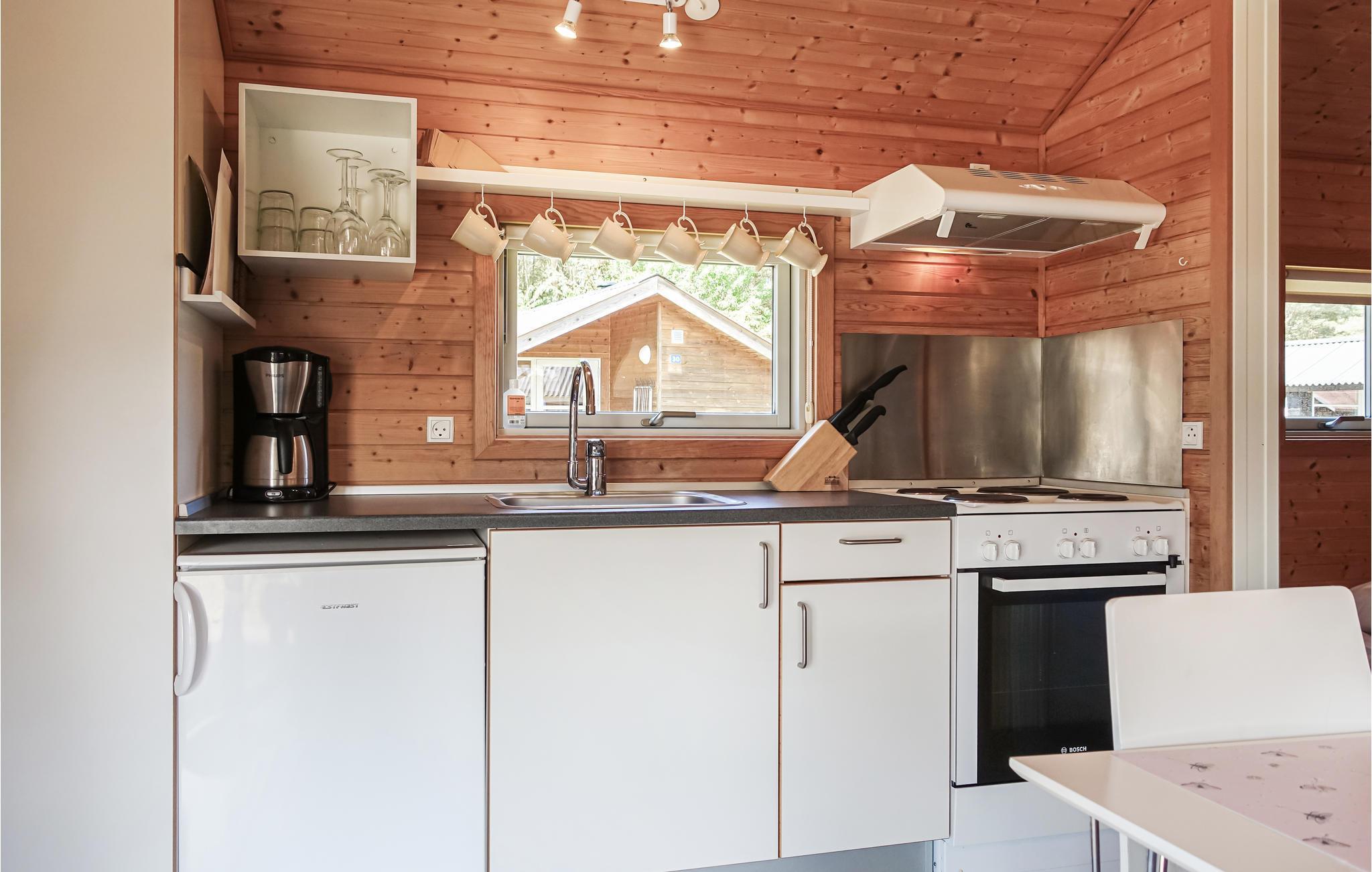 Gezellig houten vakantiehuis in Balka, dichtbij het strand en met overdekt terras voor ontspanning.