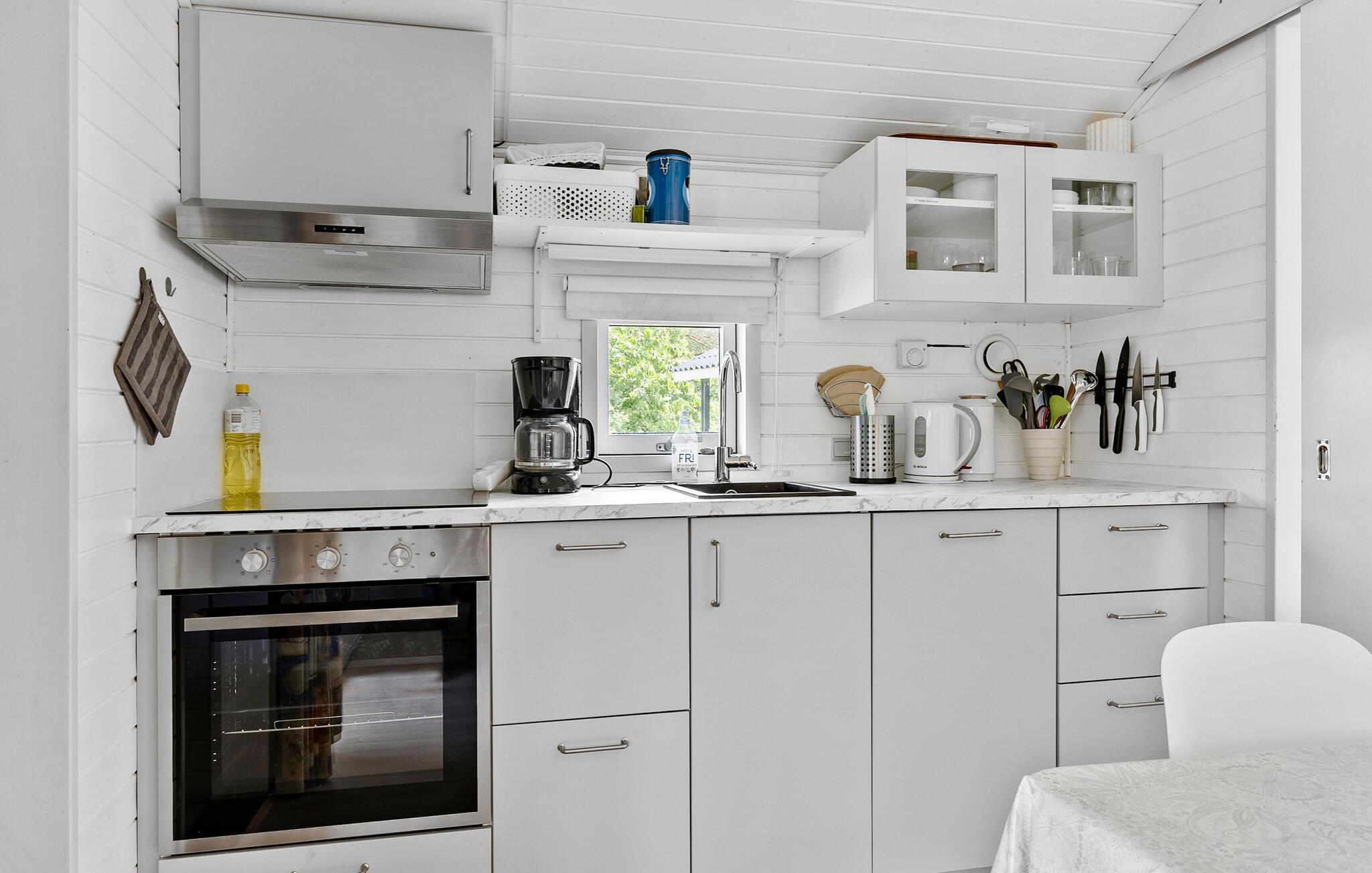 Het vakantiehuis is goed uitgerust met ruimte voor vijf personen. Een licht en modern interieur in Scandinavische stijl wacht op u met een open keuken waar u al het nodige keukengerei vindt. Maak een vers gezette koffie en ga zitten in de gezellige woonkamer of zoek een afgelegen plekje op het terras.