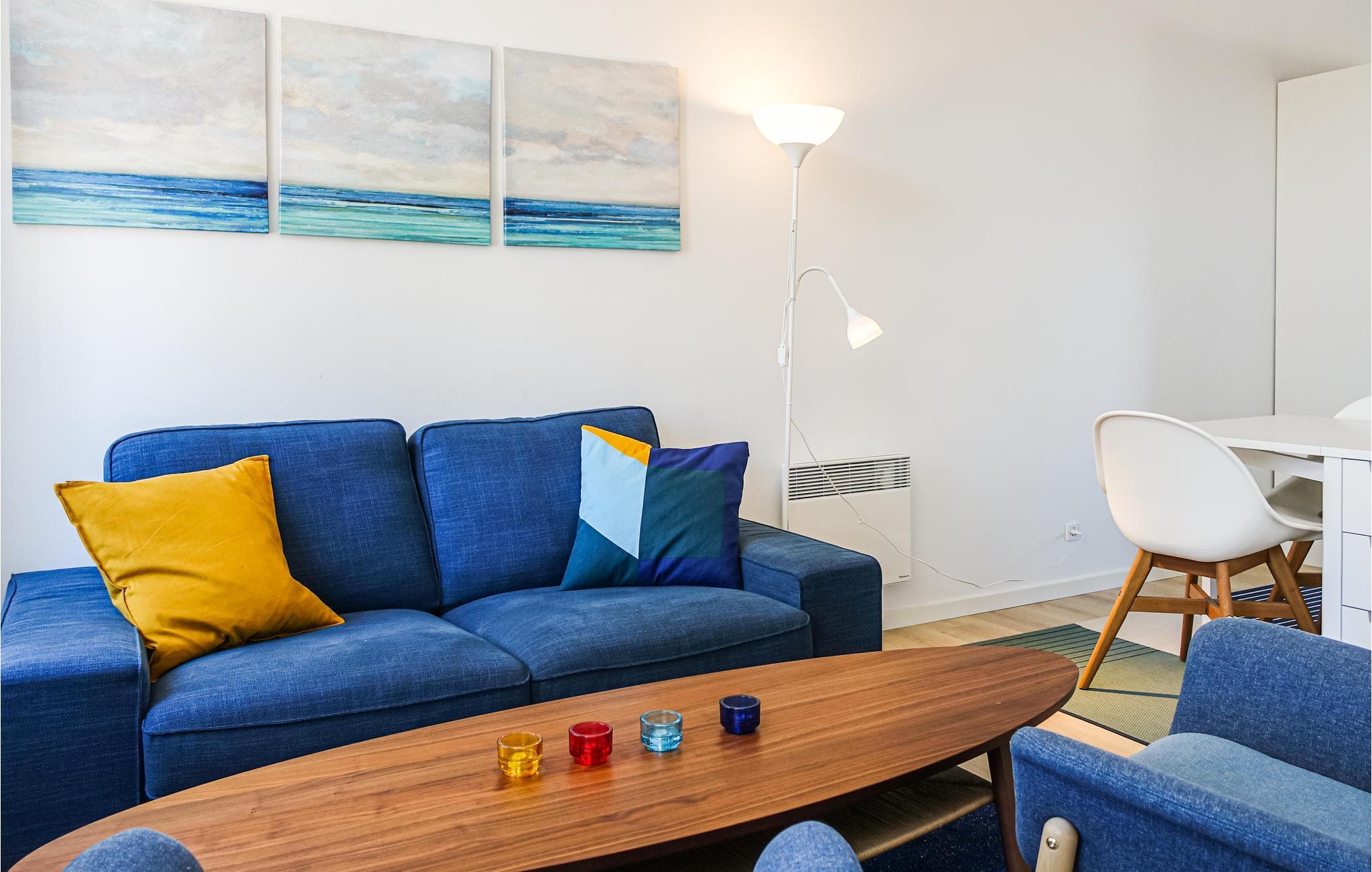 Modern vakantieappartement vlak bij Balka strand op Bornholm met terras en moderne voorzieningen.