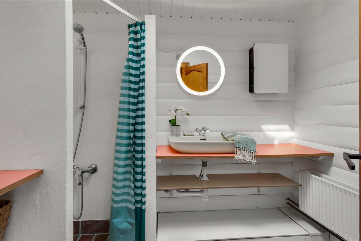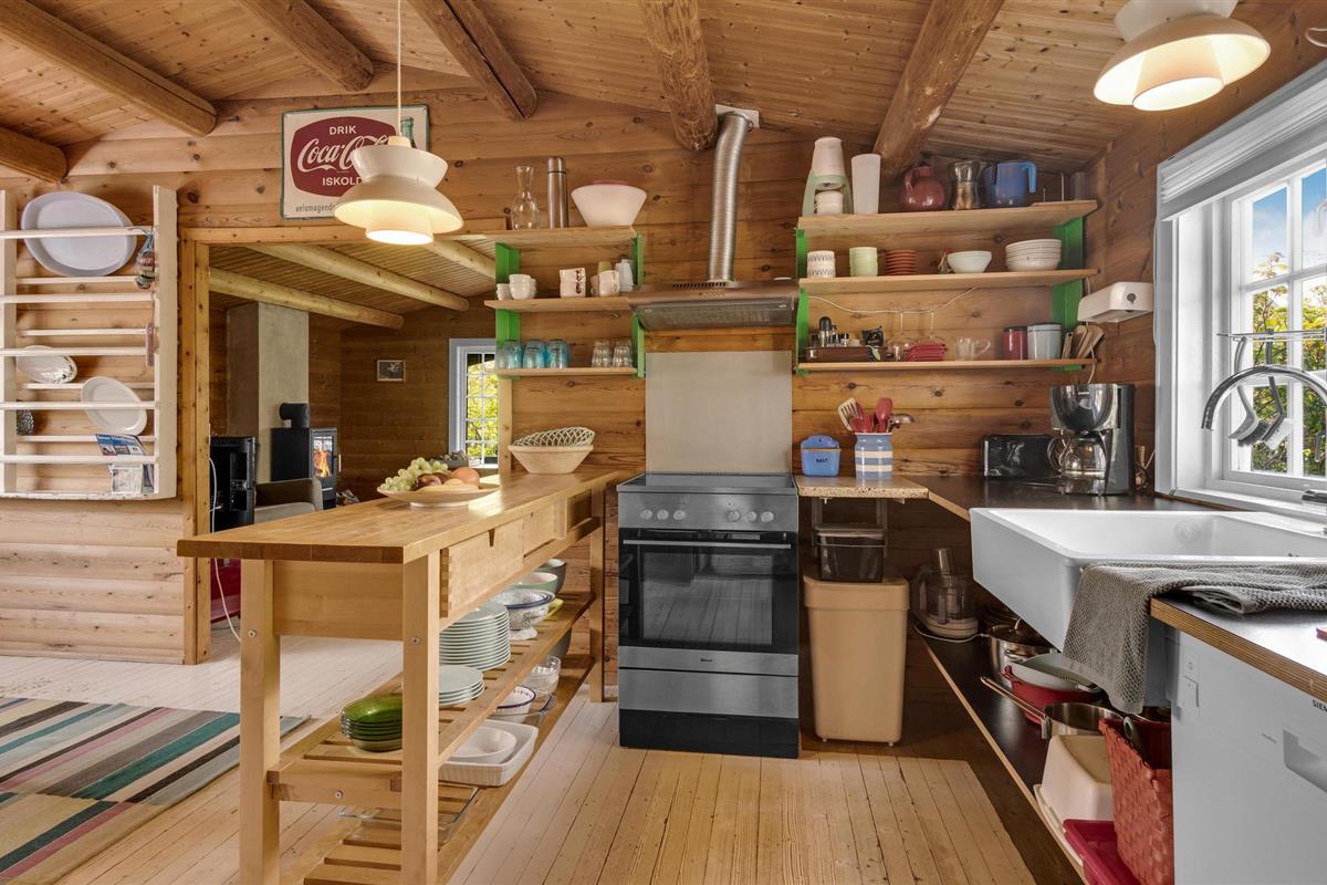 De gezellige blokhut verwelkomt je dicht bij het strand. Het is ruim en biedt voldoende ruimte voor het hele gezin. In het woongedeelte, dat warm en gezellig aanvoelt dankzij al het hout, kunnen de kleintjes spelen en de volwassenen koken en later nog lang samen zitten. De comfortabele banken nodigen je uit om lange avonden door te brengen bij de houtkachel, die zijn gezellige warmte uitstraalt en bijdraagt aan de knusse sfeer. Je kunt extra entertainment vinden als je je eigen Chromecast-stick meeneemt, want er is een tv en internet beschikbaar.