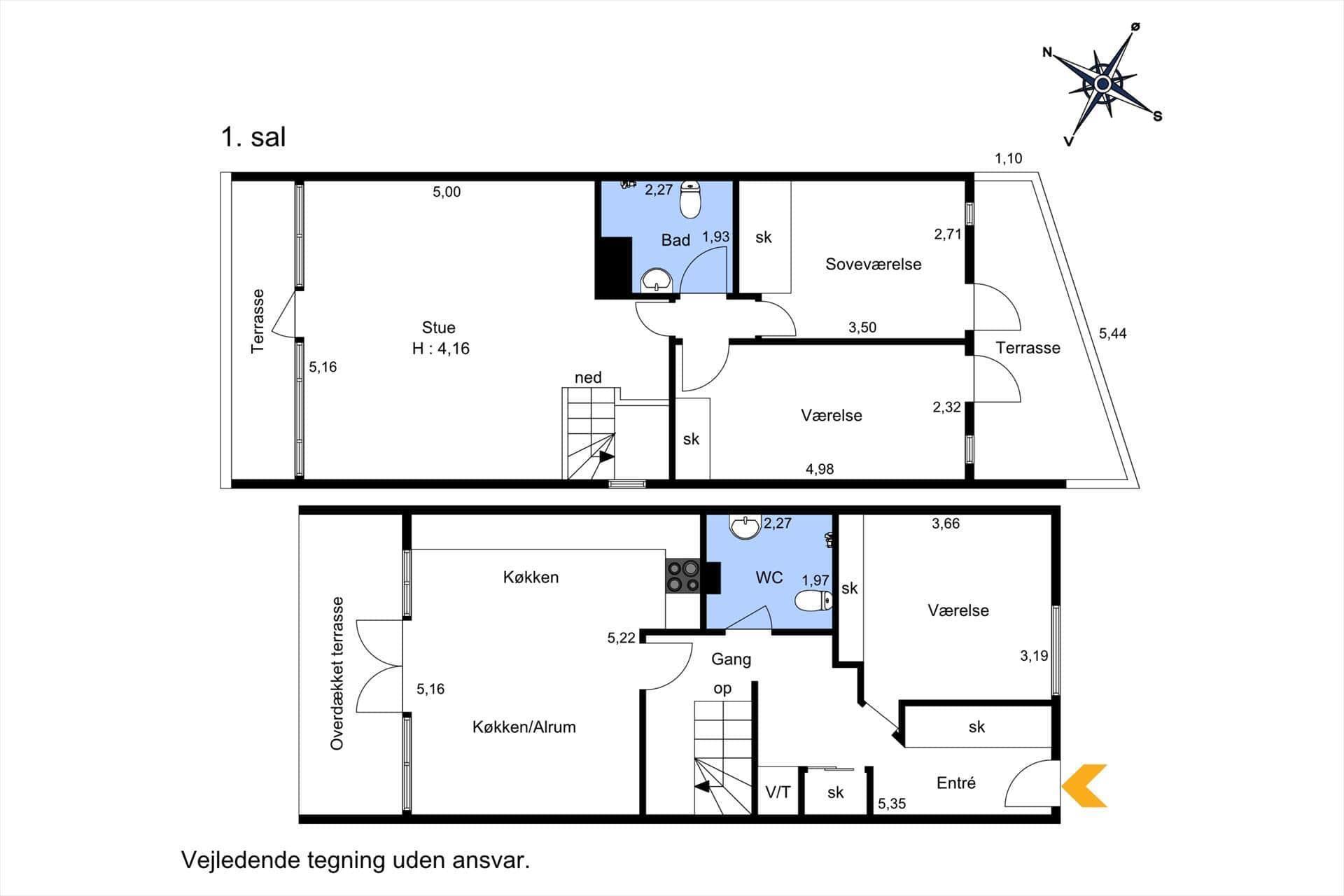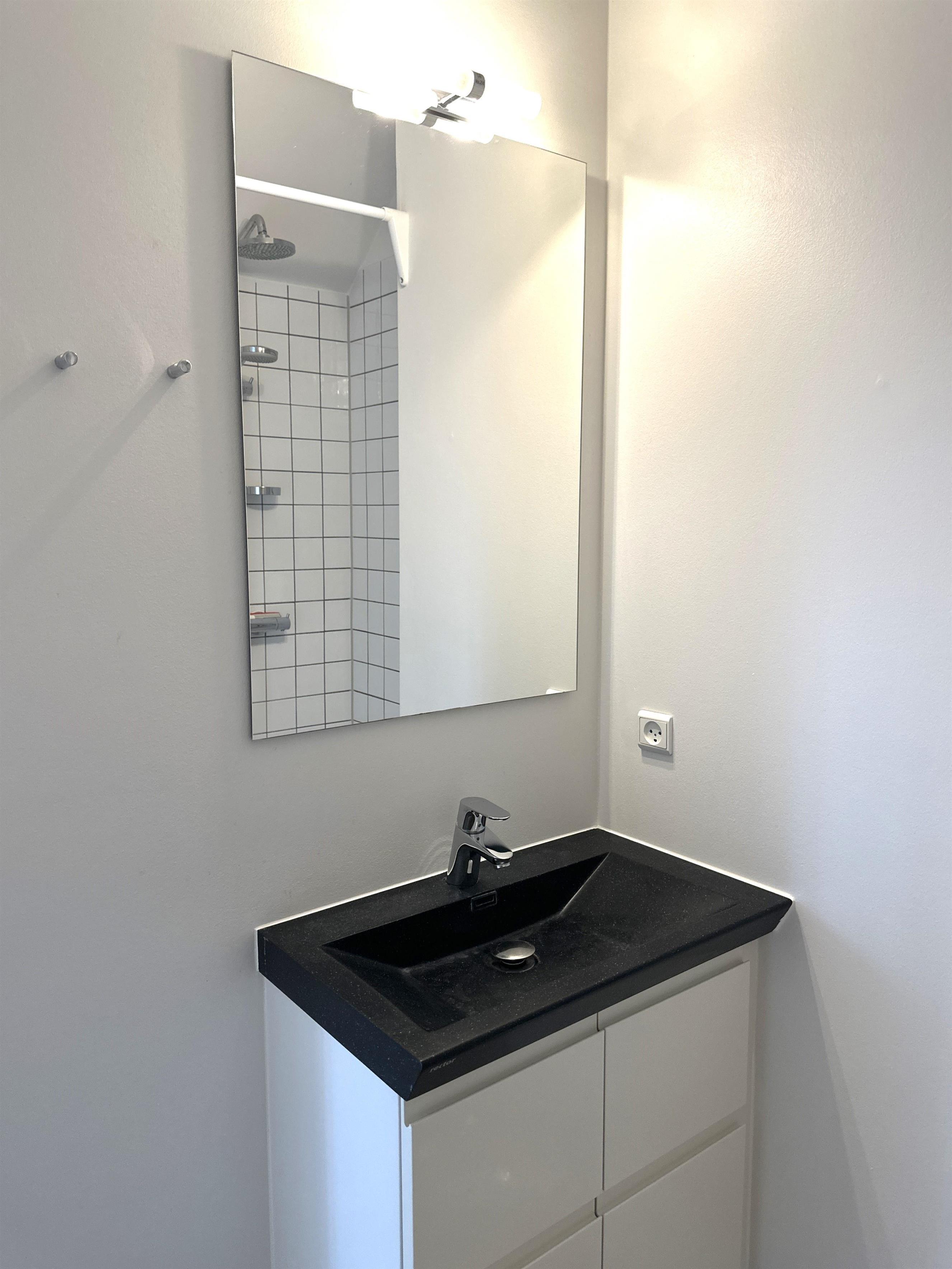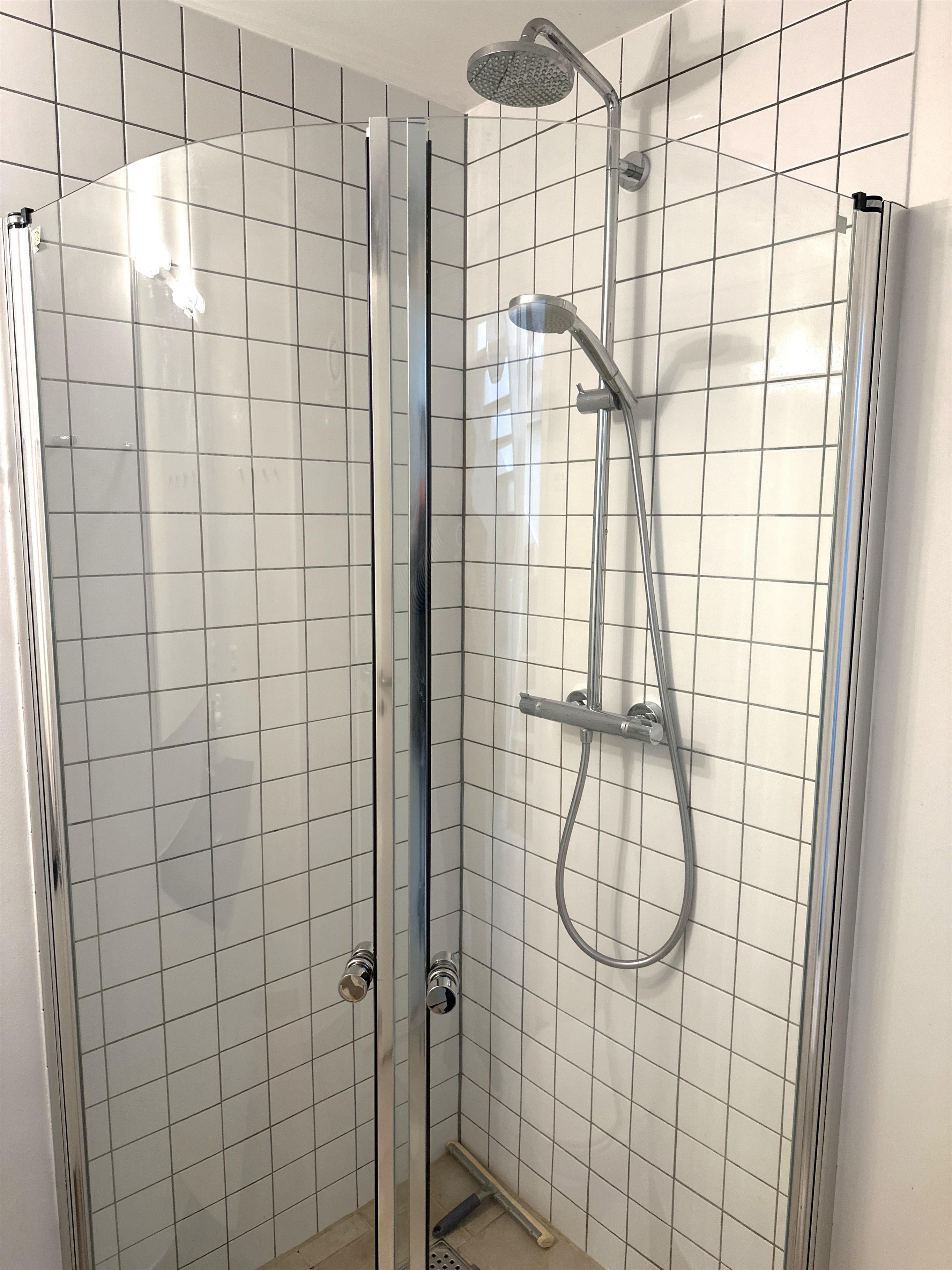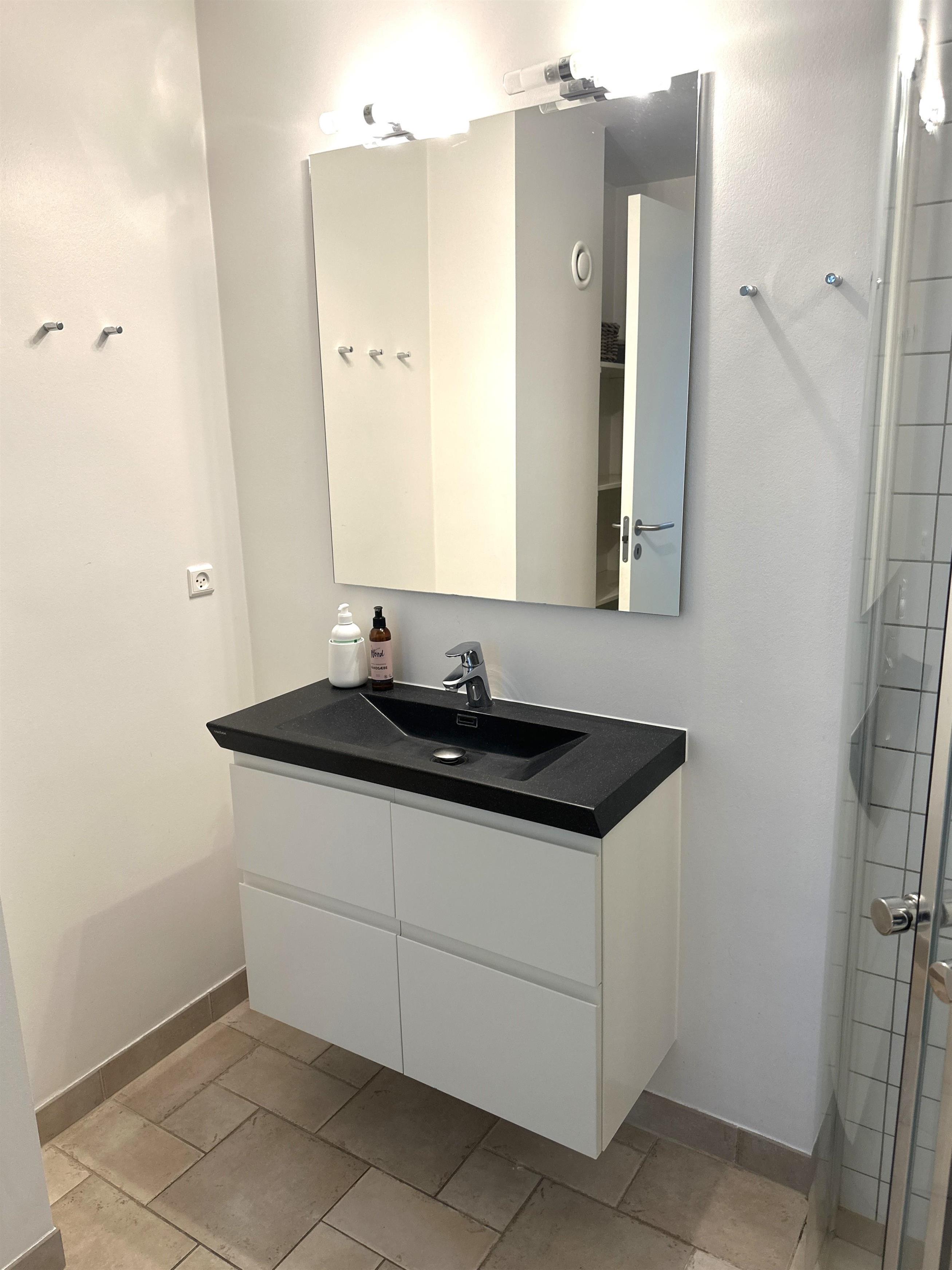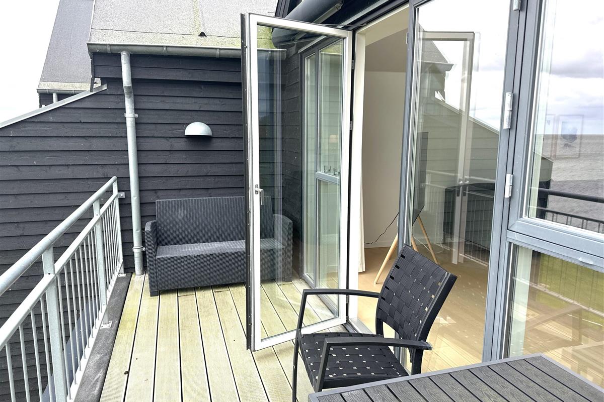 On the ground floor, you will find the entrance hall, a bedroom with a double bed and a bright bathroom, as well as a washing machine and dryer. The heart of the home is the open-plan kitchen and living room, where you will immediately be drawn to the large windows offering wonderful views of the Kattegat. Here you can cook, eat and relax with the sea in the background. Meals can be enjoyed at the dining table or on the partially covered terrace, where the sunrise and morning coffee become a very special experience.