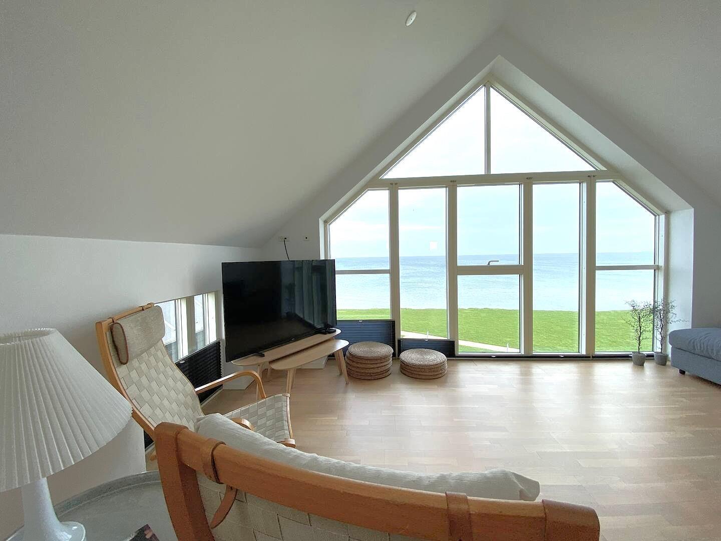 Welcome to a lovely holiday flat in the heart of Ballen – spread over two floors and with one of Samsø's best beaches right outside the door. Here you will find the setting for a holiday filled with light, togetherness and the most beautiful view of the sea.