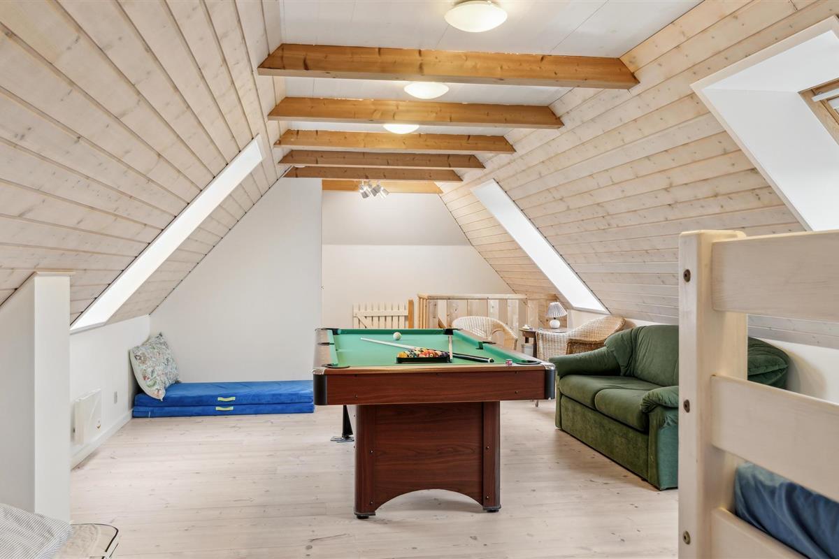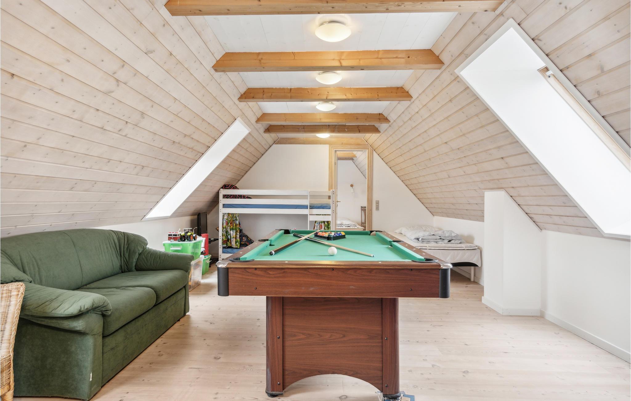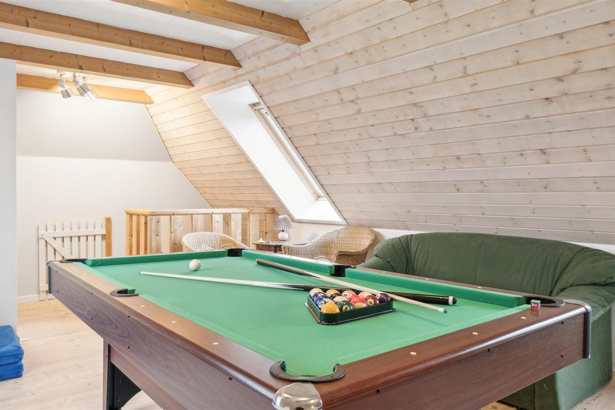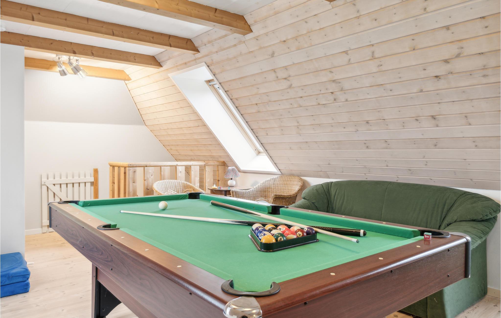 Verheug je op dit gezellige huis, dat veel ruimte biedt voor zowel plezier en spel als ontspanning. Kom hier met je gezin en voel je thuis. De open en lichte woonruimte op de begane grond combineert koken in de keuken met spelletjes aan de eettafel of rustige uurtjes op de bank. Boven vind je een entertainmentruimte met biljart en spelletjes waar je als gezin kunt samenkomen. Terwijl je kinderen zich vermaken in de speelkamer, kun je je ook terugtrekken in het bubbelbad en ontspannen.