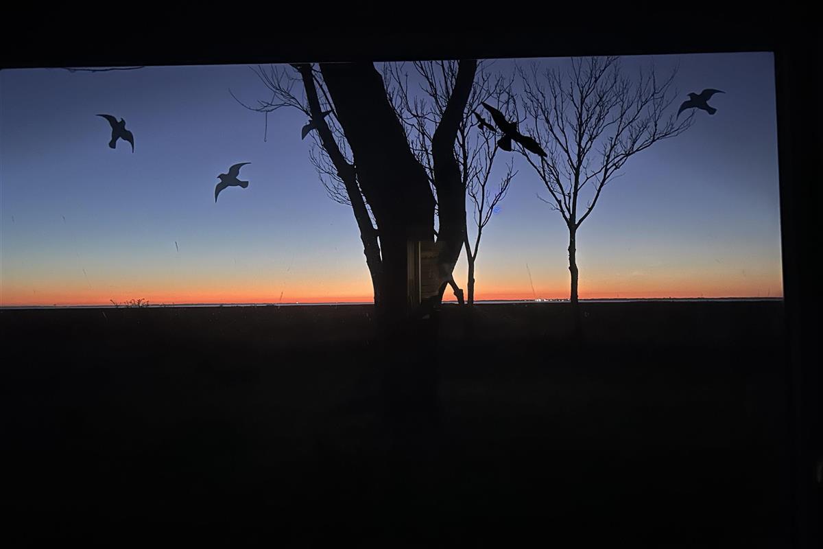 Durch das große Fenster erstreckt sich der Panoramablick über das Wattenmeer in Richtung Rømø und hin zur nordfriesischen Insel Sylt. Jeden Abend tanzt der Sonnenuntergang über die Wasseroberfläche und zaubert ein magisches Licht, das sowohl vom Wohnzimmer als auch von der Terrasse der Wohnung aus genossen werden kann – ein Anblick, der die einzigartige Atmosphäre des ehemaligen Stalls noch unterstreicht.