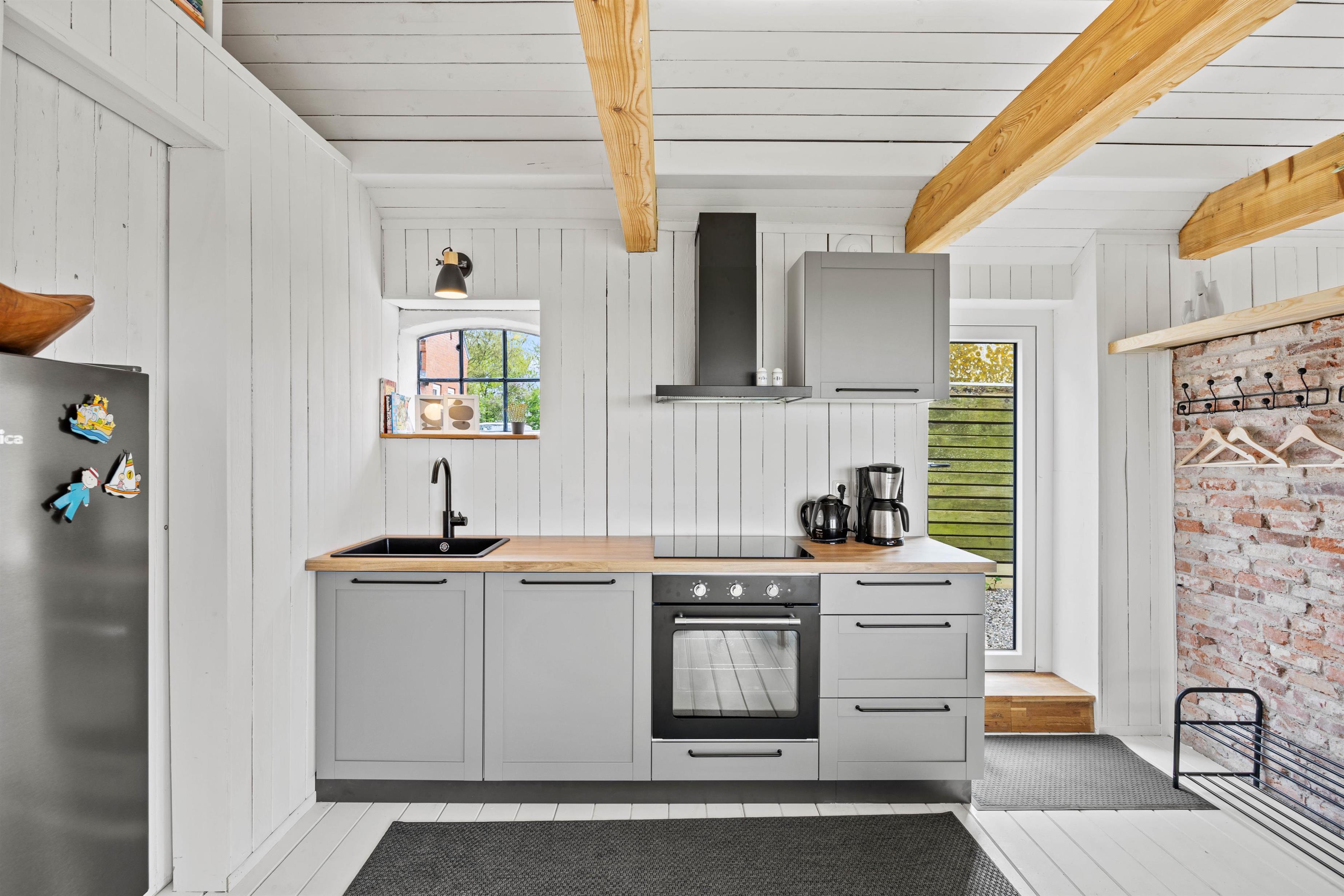 Der Innenbereich des Hauses überzeugt durch seine helle, moderne Gestaltung und ein wohliges Raumgefühl. Die Kombination aus klaren Linien, natürlichen Materialien und nordischer Gemütlichkeit lädt zum Verweilen ein. Die Küche lässt euch auch im Urlaub auf nichts verzichten – ob ein schnelles Frühstück oder ein ausgiebiges Abendessen, hier habt ihr alles griffbereit. Die integrierte Wärmepumpe sorgt für angenehme Temperaturen, ganz gleich zu welcher Jahreszeit und macht das Haus auch außerhalb der Sommermonate attraktiv.