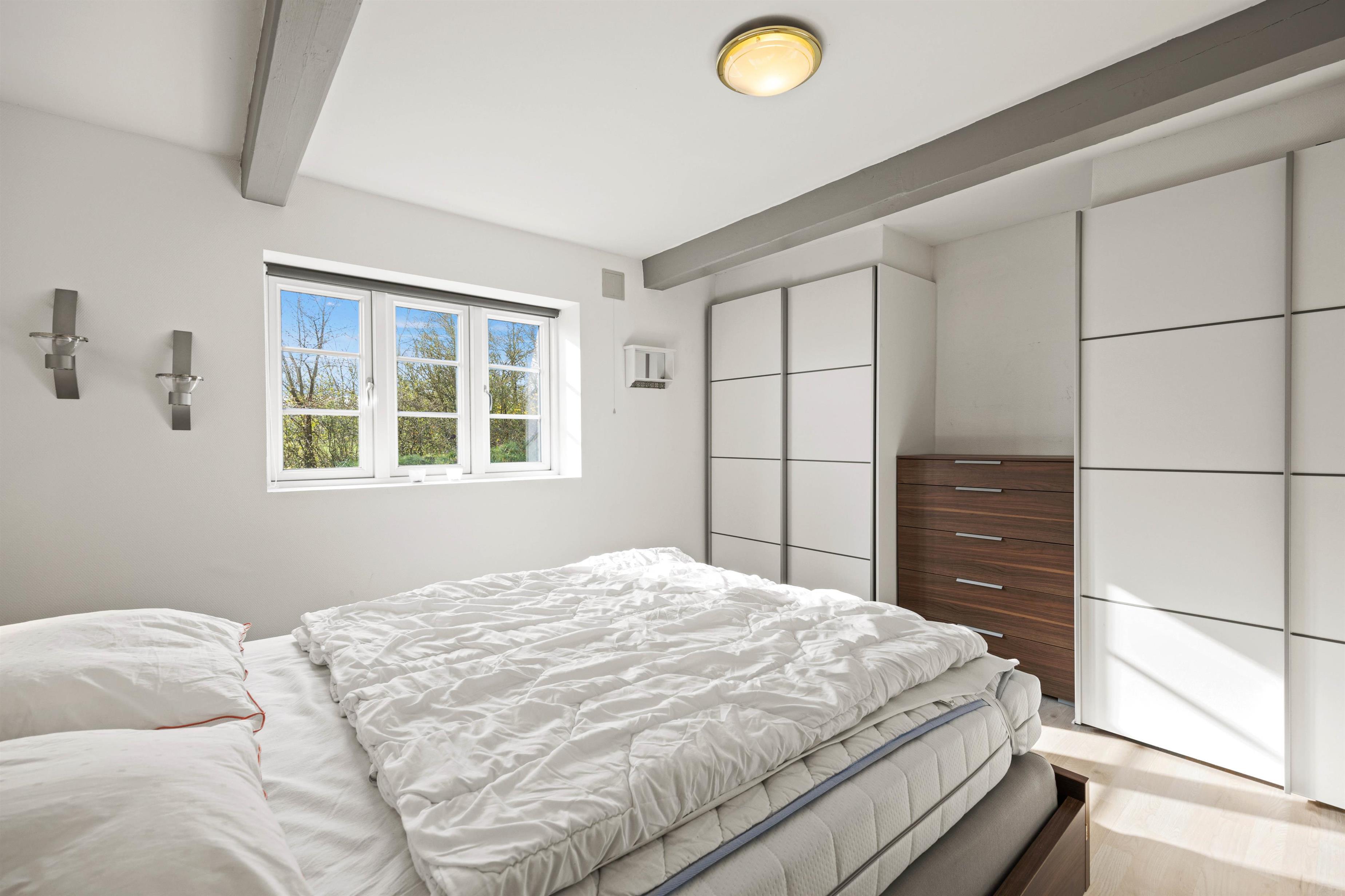 From the bright living space, doors lead to the open terrace with garden furniture, where you can savour views across the idyllic countryside. The summer house sits within extensive natural grounds, offering a genuine sense of freedom and space, with plenty of room for children to play.