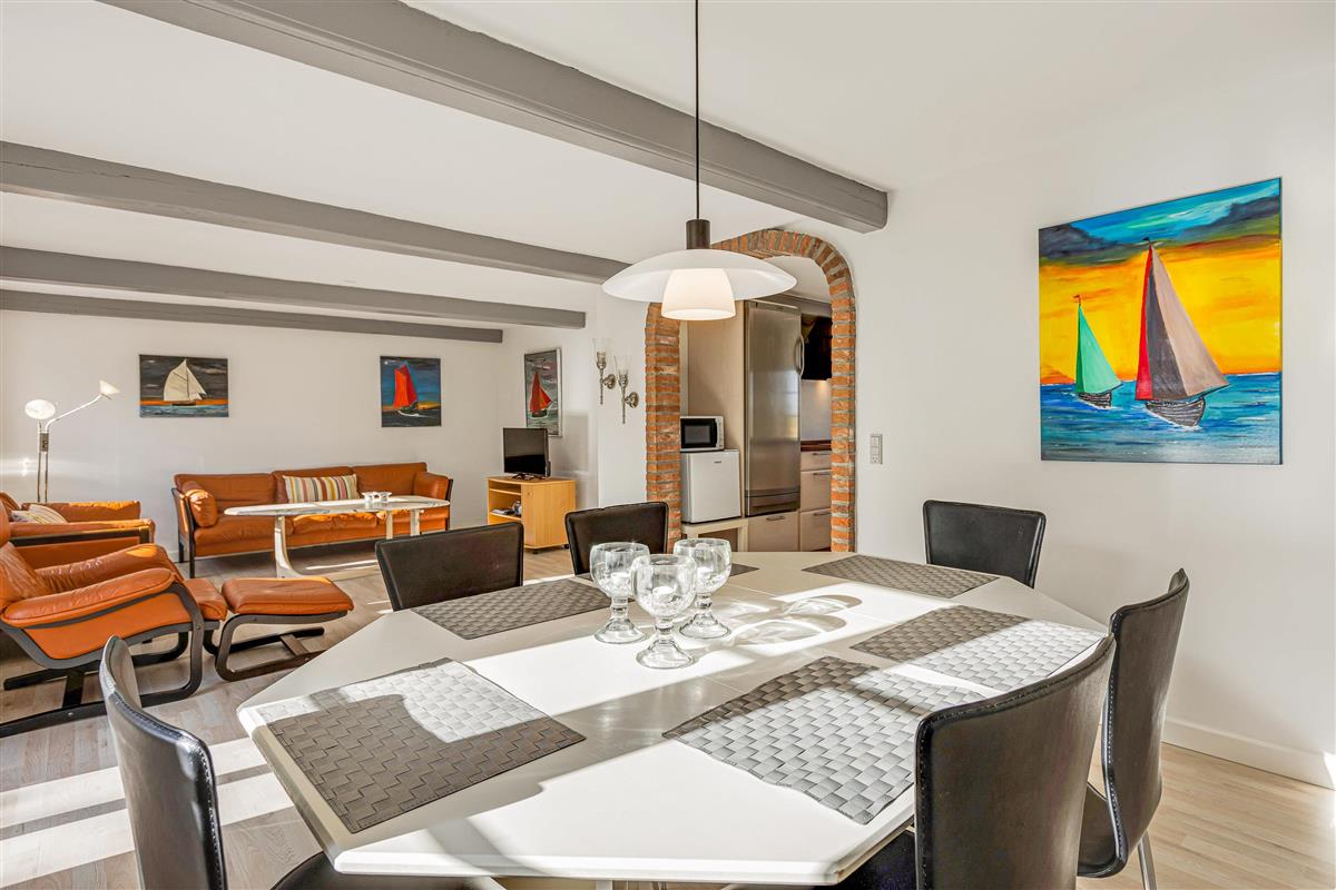 The open-plan living and dining area provides a wonderful space for quality family time. With German TV channels available, you can enjoy cosy film nights with loved ones or settle in for a fun evening of games. The living area flows seamlessly into the well-equipped kitchen, which features a dishwasher and generous worktop space, perfect for cooking together.