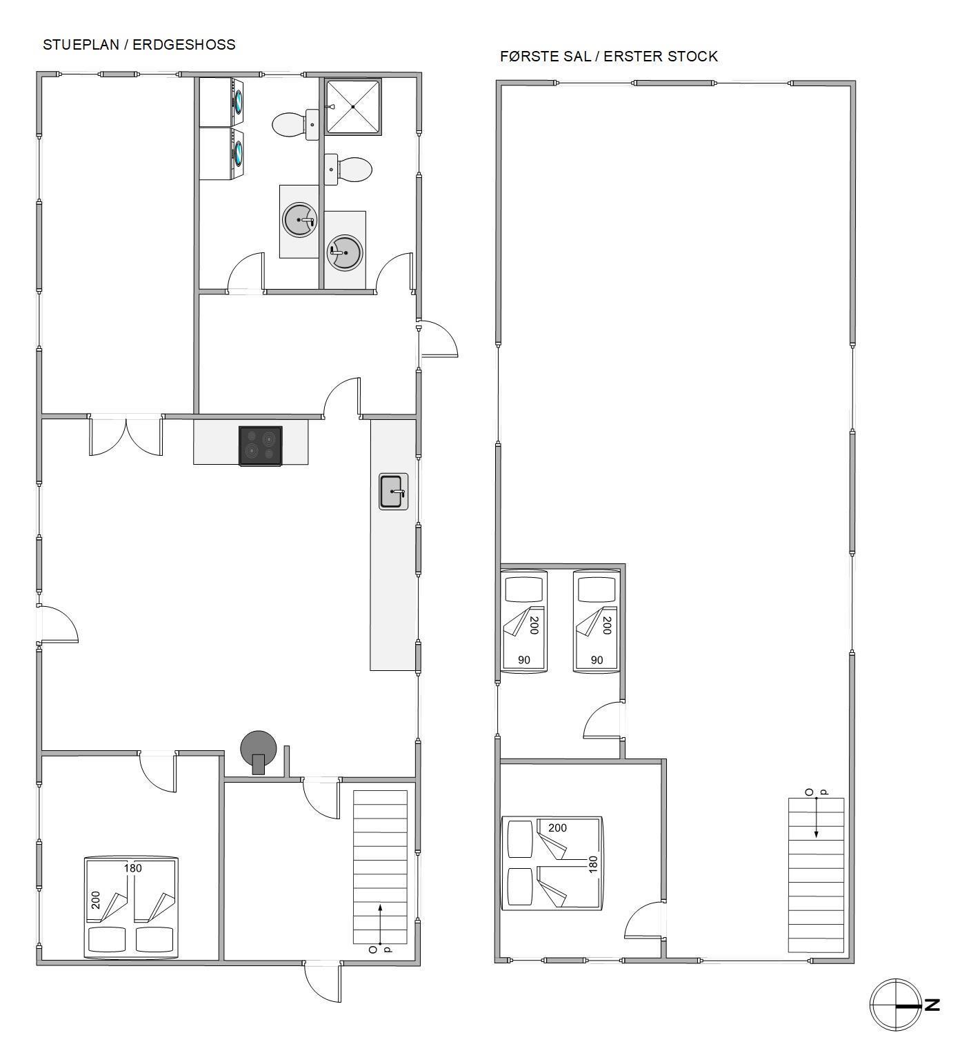 Open the front door and feel at home from the moment you arrive. The heart of this 179-square-metre holiday home is its living area. Here, the kitchen and living room flow together, with the wood-burning stove in the kitchen creating a cosy atmosphere. Beyond the essential kitchen equipment, there's also an additional chest freezer. The separate dining room is adjacent to the open-plan living area. In this exceptional holiday home, you can enjoy countless comfortable moments cooking together in the kitchen, playing fun games at the dining table, or gathering to watch a good film on the television.