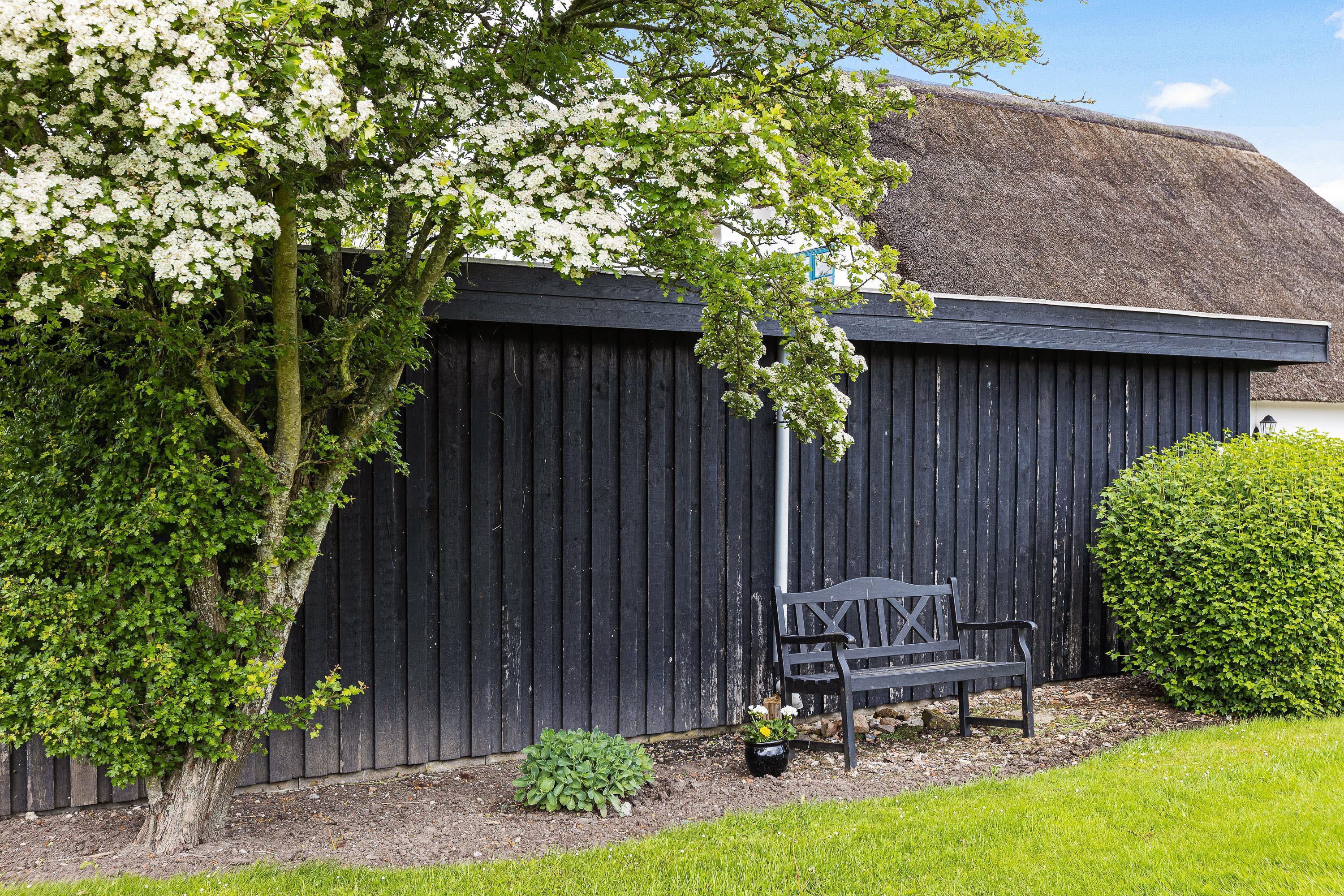 On the south side of the thatched cottage, you'll find a beautiful stone terrace, partially screened for wind protection and privacy. Comfortable sun loungers invite relaxation while your children can explore the hedge-enclosed grounds. The expansive lawn is perfect for football or a game of Kubb (Viking chess). Little ones will love the swing set and sandpit.