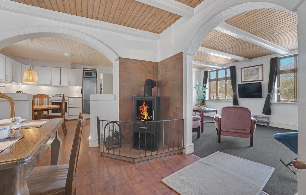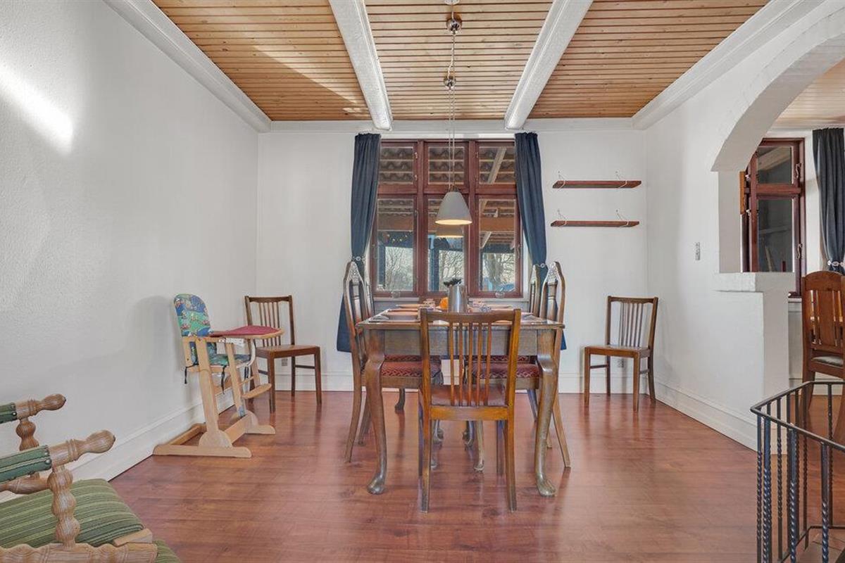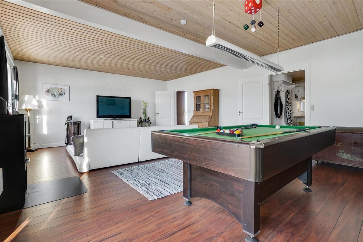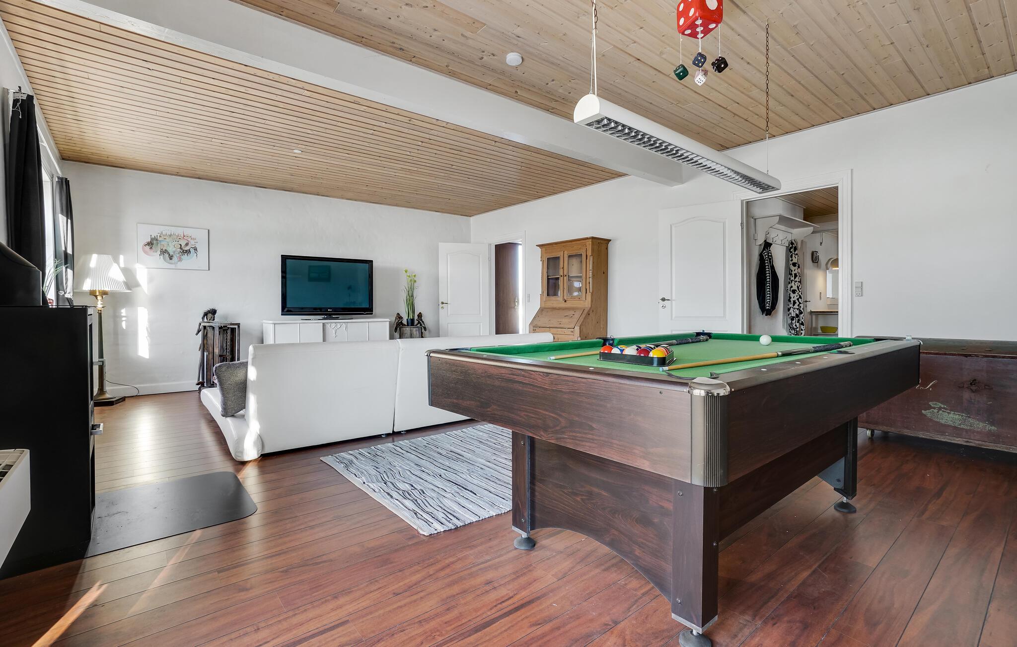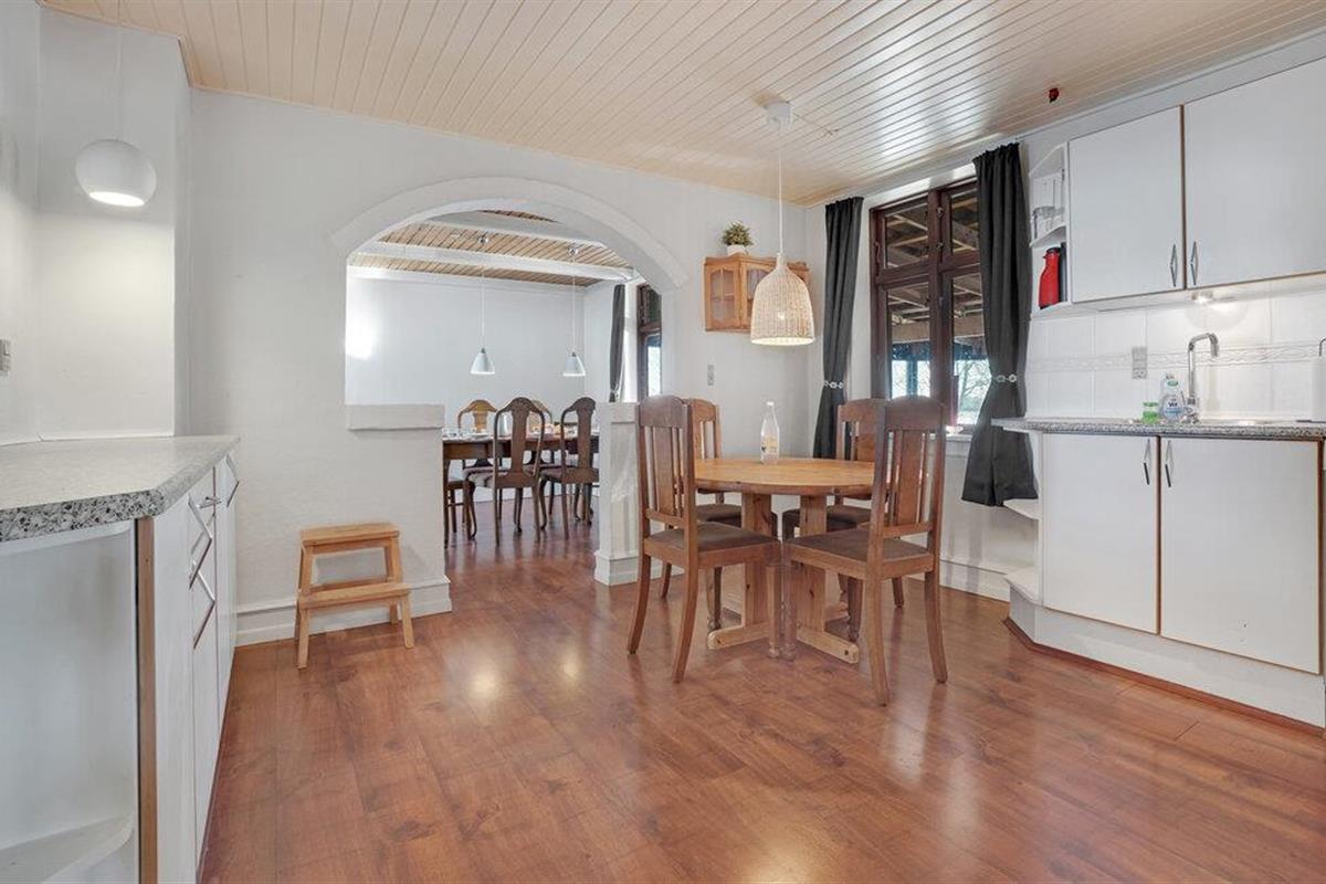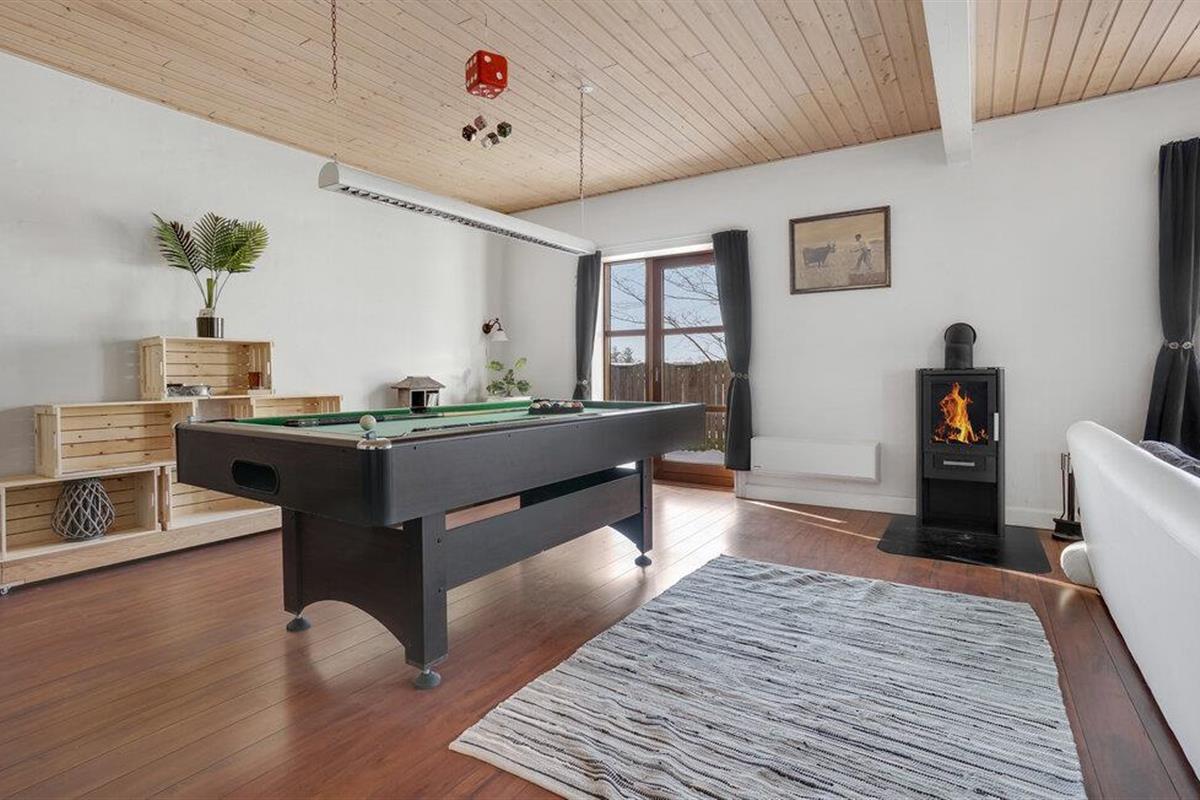 Omgeven door weilanden en velden verwelkomt dit grote vakantiehuis op het platteland u. Samen met uw uitgebreide familie kunt u hier genieten en optimaal gebruik maken van de ruime ruimte. Breng rustige nachten door in de slaapkamers en kom samen in de woonkamer en ontspan op de bank of speel een spelletje biljart. De open keuken met aangrenzende eetkamer met open haard nodigt ook uit tot gezamenlijke kookavonden, die u kunt afsluiten met bordspellen.