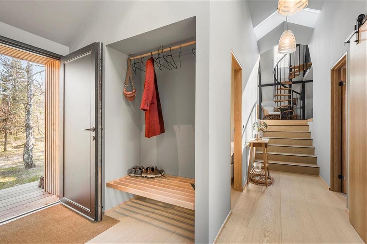 Mit mehreren schönen Terrassen rund ums Haus gibt es viele Möglichkeiten, das Leben draußen in vollen Zügen zu genießen. Auf der einen Terrasse kannst du mit Blick in den Wald entspannen, auf der anderen gemütlich essen und lange Sommerabende verbringen. Das Naturgrundstück lädt zum Abschalten, Träumen oder Spielen ein. Und in nur zwei Gehminuten stehst du am Strand – oft ganz für dich allein – mit freiem Blick über die Bucht. Perfekt für ein Bad, einen Spaziergang, Spiel oder einfach zum Seele baumeln lassen.