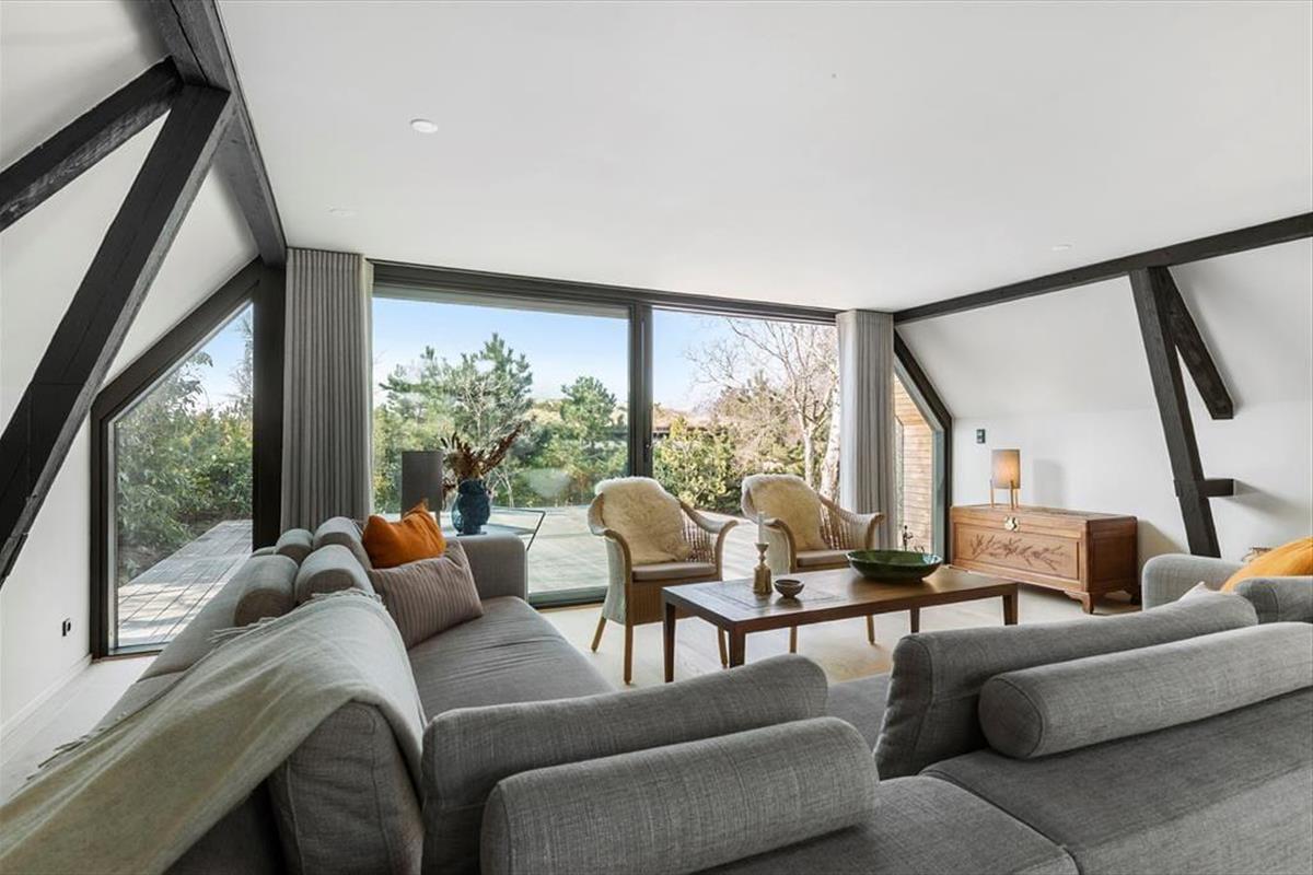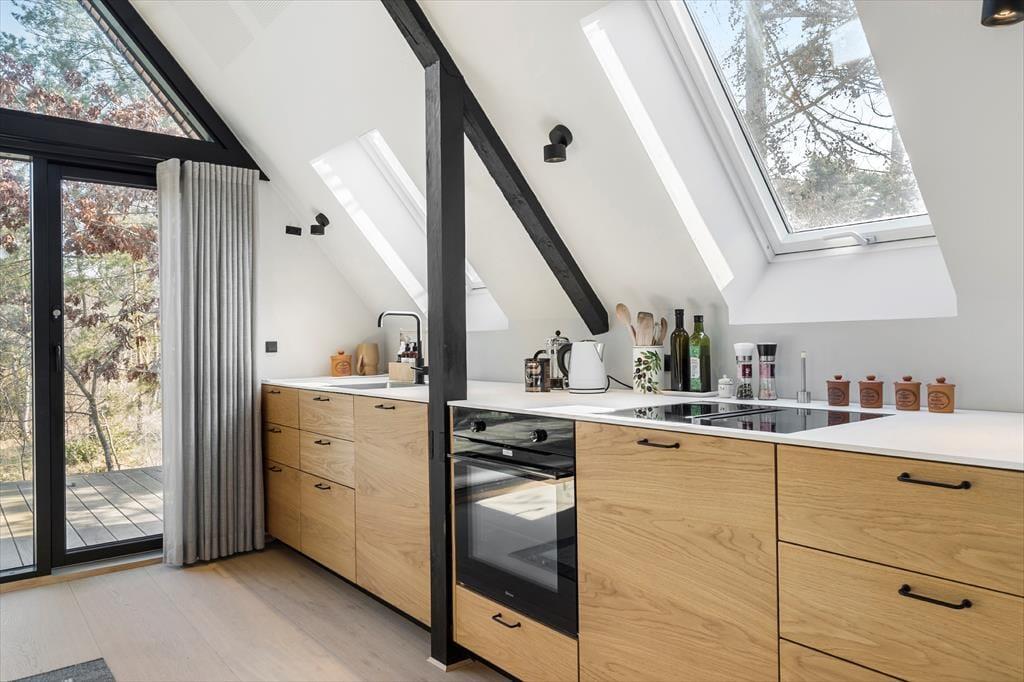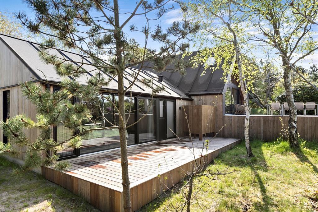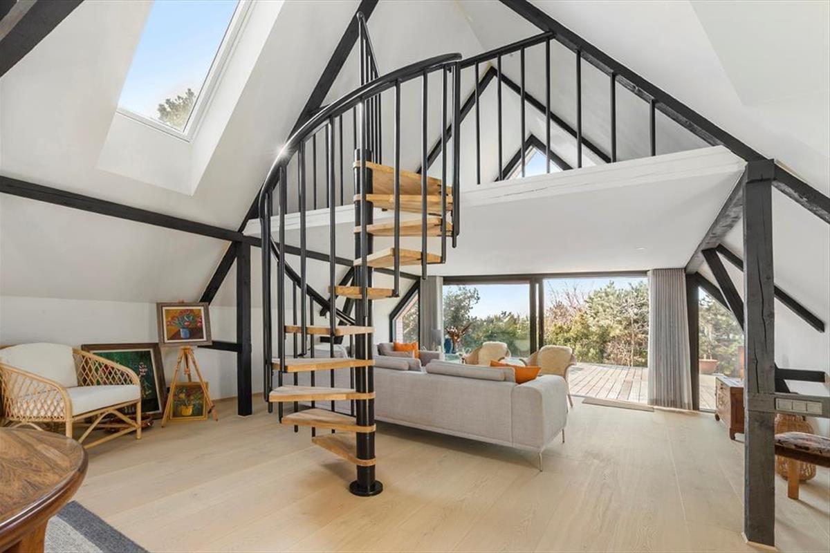 Wenn du das Haus betrittst, empfängt dich ein einladendes, geschmackvolles Zuhause mit liebevollen Details. In der Wohnküche wurden die alten Holzbalken erhalten, die dem Raum seinen besonderen Charakter verleihen. Die sanften, pudrigen Farbtöne in den Fluren und Schlafzimmern harmonieren wunderbar miteinander und stehen im schönen Kontrast zu den massiven Eichenholzdielen. Durch die clevere Aufteilung auf drei Ebenen sowie Dachfenster, schräge Fenster und Deckenfenster wird das gesamte Haus von morgens bis abends mit natürlichem Licht durchflutet. Die neue Küche (inkl. Geschirrspüler) bietet alles, was du brauchst, und grenzt an einen gemütlichen Essbereich. Von hier aus gelangst du direkt auf die nordöstlich gelegene Terrasse mit Blick in den Wald – mit etwas Glück kannst du hier Eichhörnchen beobachten oder ein Reh entdecken. Das Wohnzimmer ist hell und offen gestaltet, mit großen Fenstern und Zugang zu einer weiteren südlich ausgerichteten Terrasse – perfekt, um den Vögeln zu lauschen oder den Kindern beim Spielen auf dem Naturgrundstück zuzusehen. Das Haus verfügt über drei Schlafzimmer mit Doppelbetten und bietet Platz für sechs Erwachsene und ein Kind. Im Obergeschoss erwartet dich eine gemütliche Leseecke mit Panoramablick – ideal zum Entspannen mit einem guten Buch. Das geräumige Badezimmer ist mit Dusche, Waschmaschine und Trockner ausgestattet – und von hier aus gelangst du direkt auf eine weitere Südterrasse mit Außendusche. Ideal für eine erfrischende Dusche nach dem Strandbesuch!