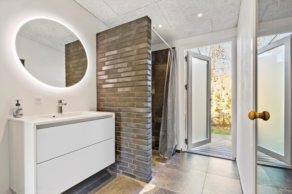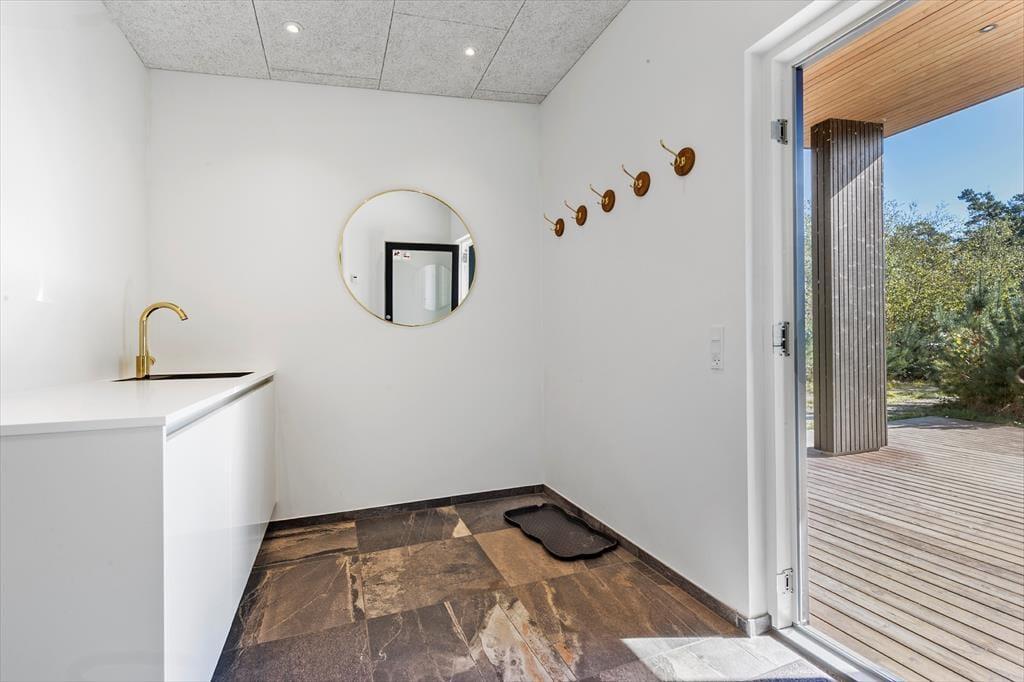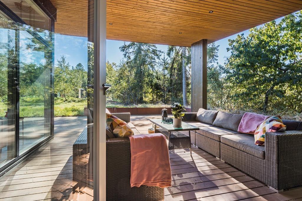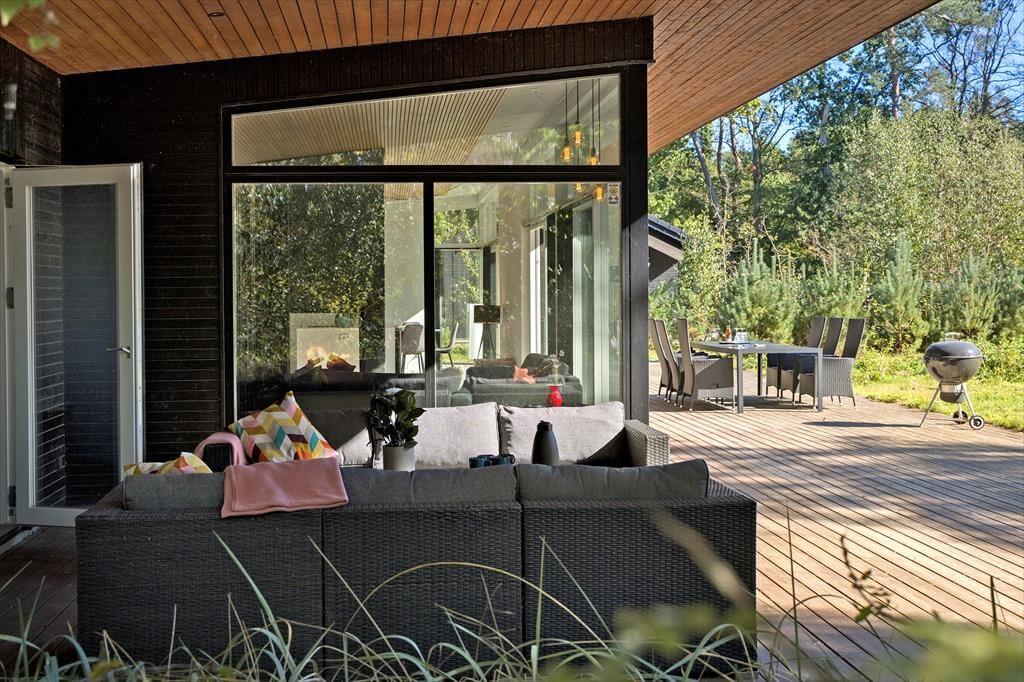 Du wohnst nur etwa 300 m vom Meer entfernt – ideal für spontane Spaziergänge, ein erfrischendes Morgenbad oder einfach ruhige Momente mit dem Klang der Wellen im Hintergrund. Draußen erwartet dich ein großes Naturgrundstück, auf dem Kinder frei spielen können und Erwachsene ihren Lieblingsplatz in der Sonne finden. Die zum Teil überdachten Terrassen machen es dir leicht, zu grillen und lange Abende unter freiem Himmel zu genießen – ganz unabhängig vom Wetter. Wenn du deinen Hund mit in den Urlaub nimmst, wird auch er die vielen Wege und die Freiheit rund ums Haus lieben.