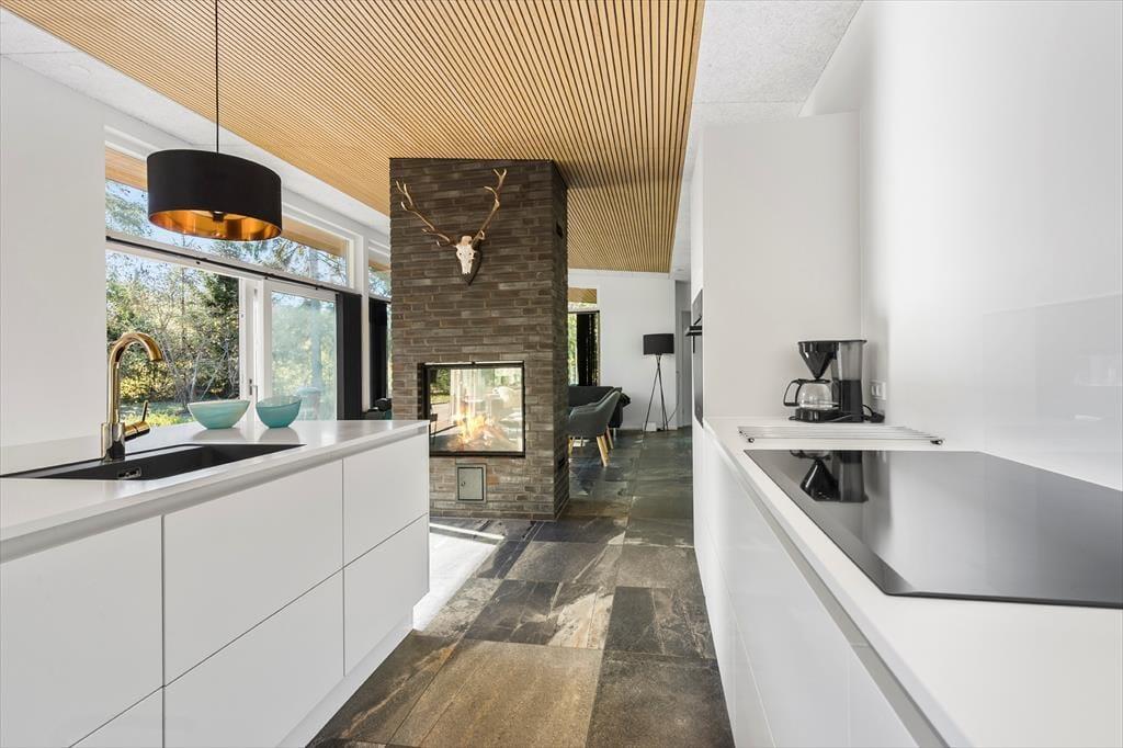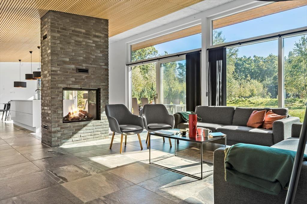 Du betrittst ein modernes und helles Ferienhaus, in dem Komfort und Qualität Hand in Hand gehen. Hier gibt es Platz für bis zu acht Personen, verteilt auf vier einladende Schlafzimmer. Die offene Küche und das Wohnzimmer laden zu gemütlichen Momenten beim Kochen, Spielen oder Entspannen ein. Nach einem langen Tag in der Natur genießt du die Wärme des Kaminofens, machst einen Saunagang oder lehnst dich einfach auf dem Sofa zurück und spürst, wie die Ruhe einkehrt. Mit zwei Badezimmern wird der Alltag leicht – auch dann, wenn ihr viele seid.