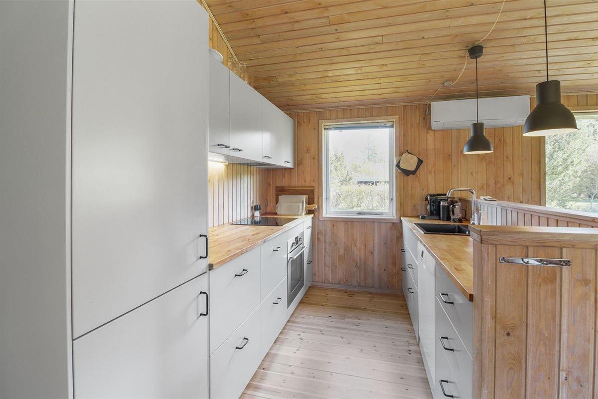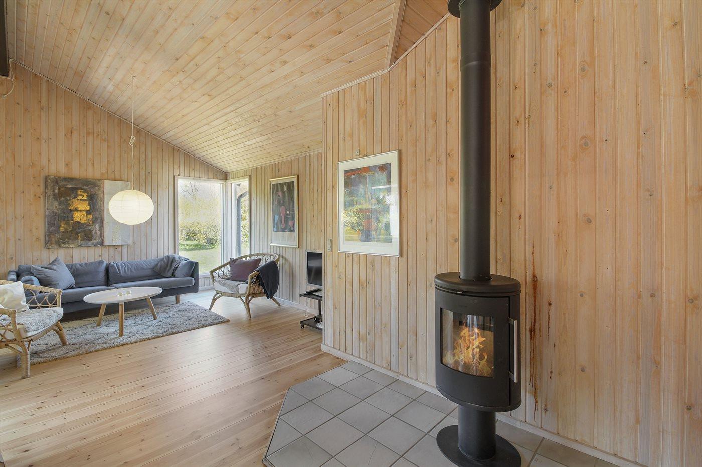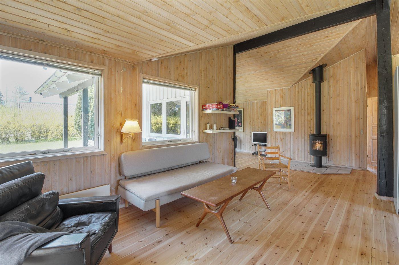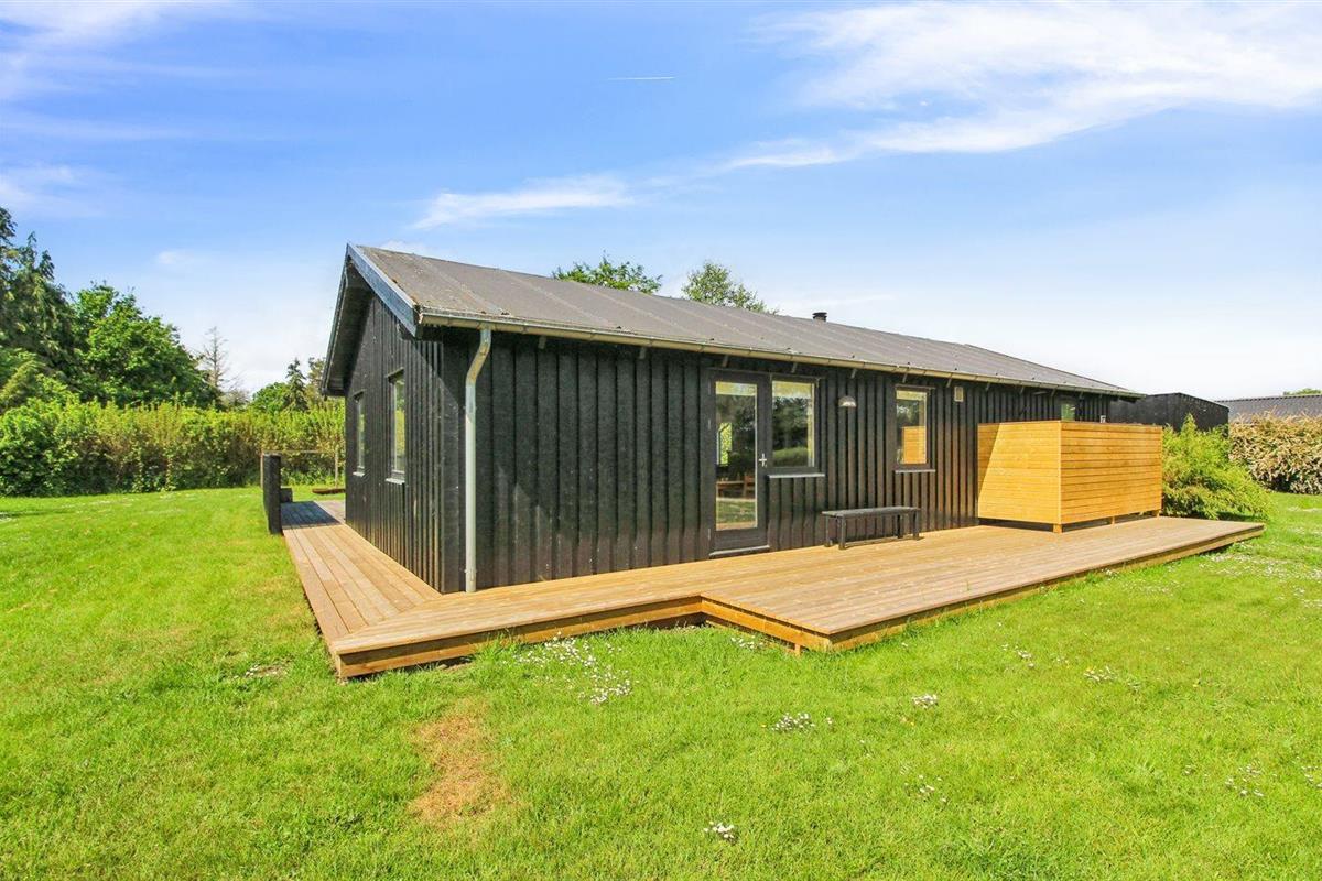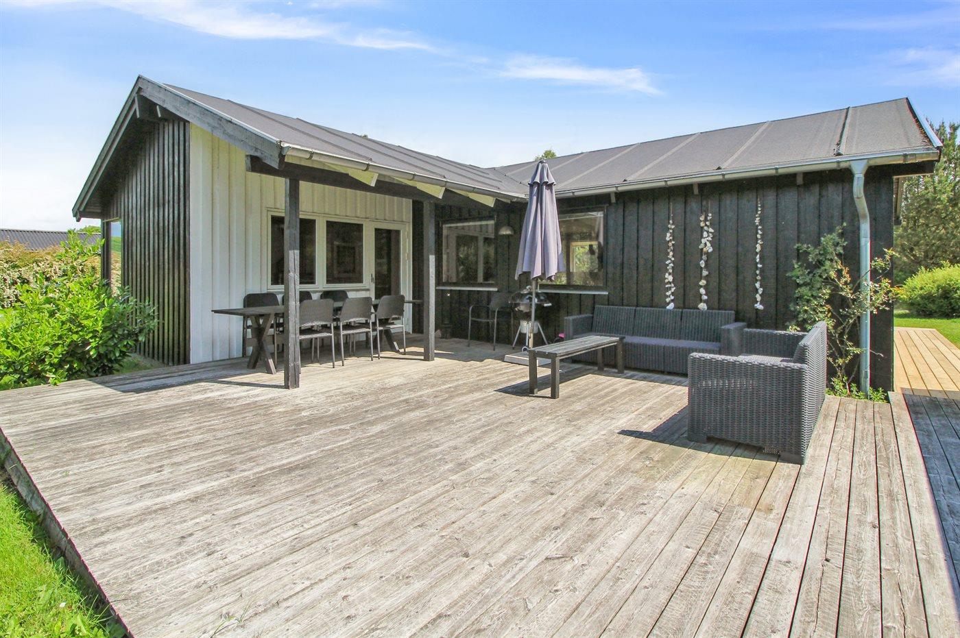 Comfortabel vakantiehuis nabij zee met sauna, houtkachel en overdekt terras in Knebel, Denemarken.