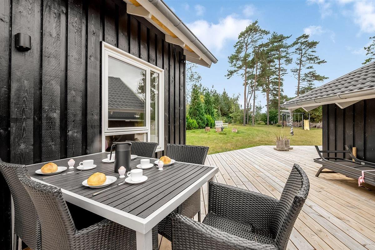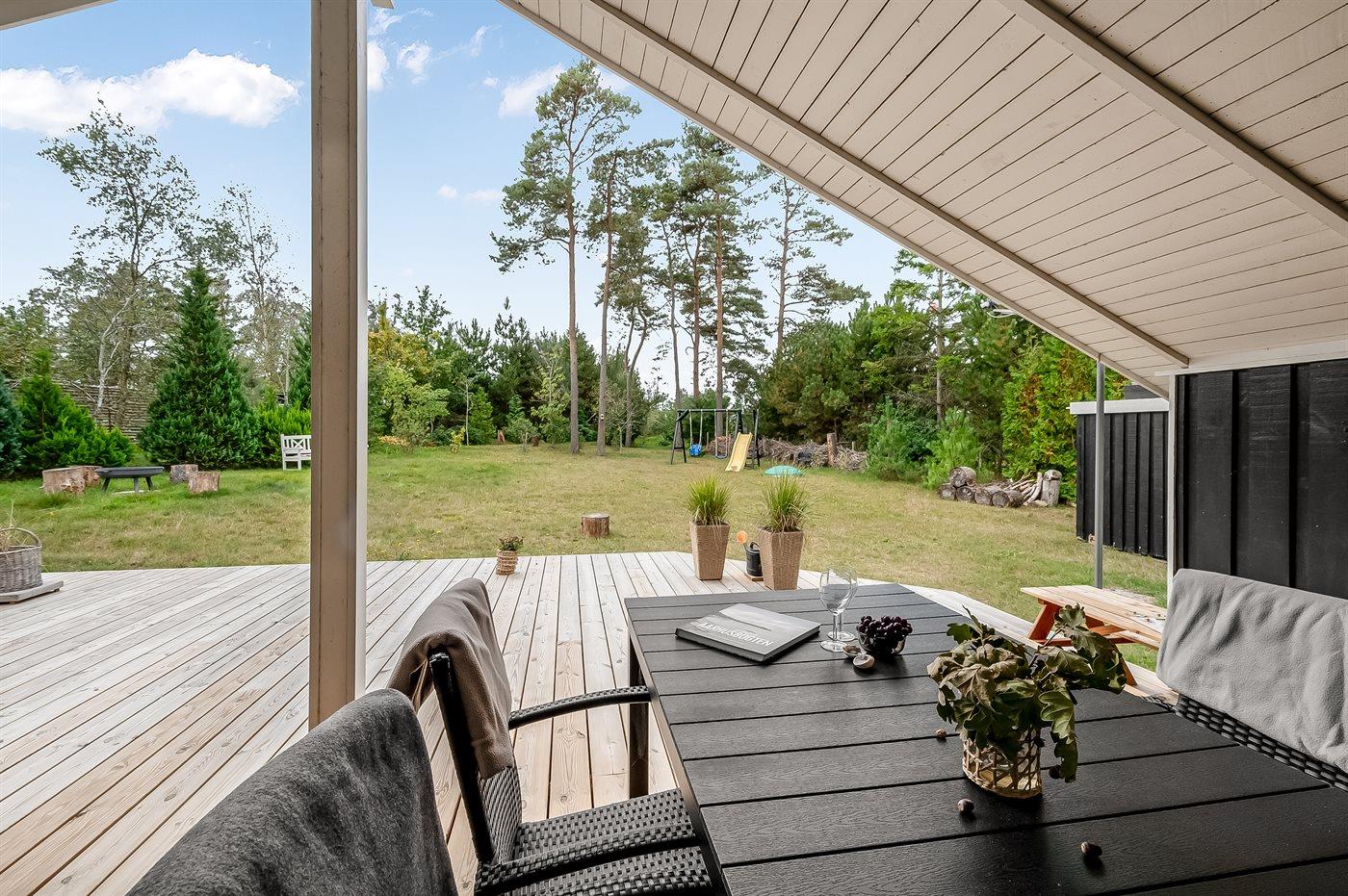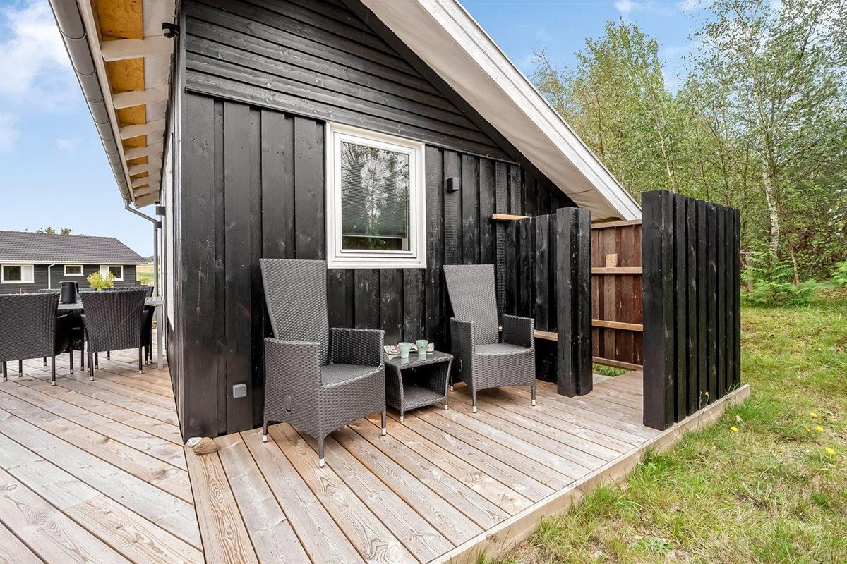 De vakantiewoning is gelegen op een 1390 m² groot natuural grond. Afstand tot de zee 175 m. Dichtstbijzijnde winkel 4000 m. Bij de vakantiewoning hoort 7 m² terras. Daarnaast is er een 18 m² groot overdekt terras. Schommel. Het huis heeft een stopcontact voor het opladen van een elektrische auto. Parkeerplaats bij het huis.