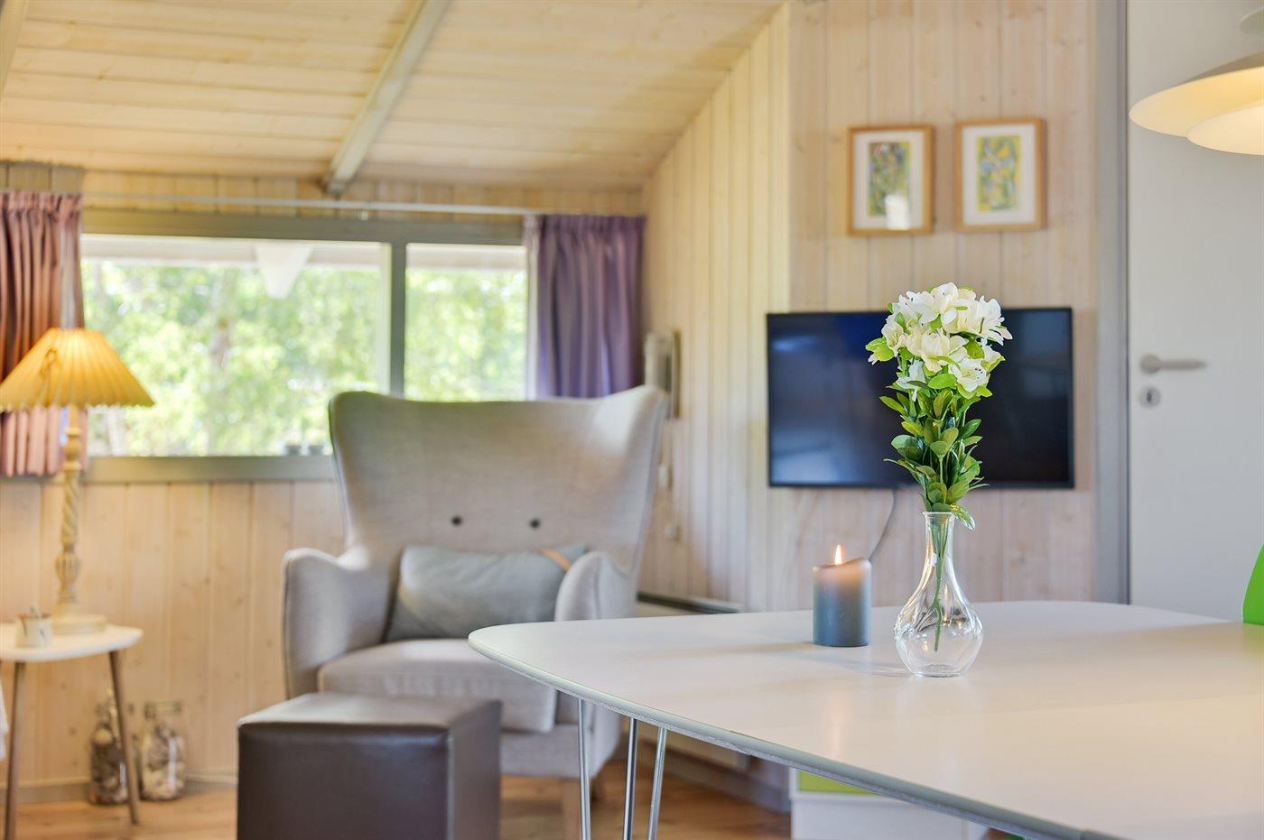 In de vakantiewoning is aanwezig televisie.1 Chromecast.1 LED-tv. Radio. Tenminste 4 deense zenders. Tenminste 4 duitse zenders. Draadloos internet.