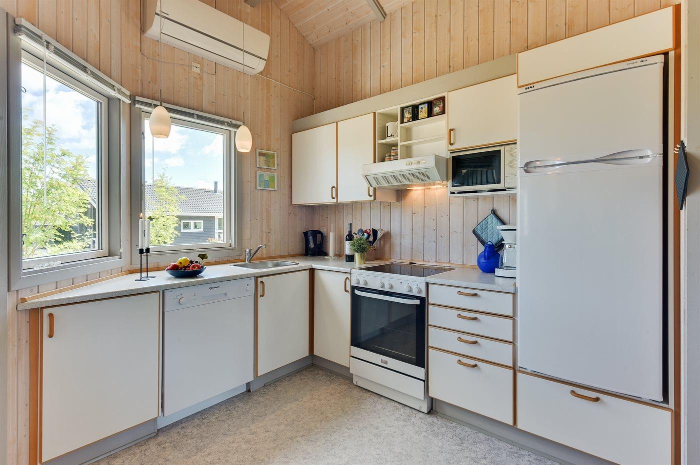 De keuken is uitgerust met koelkast Er zijn 4 keramische kookplaten, heteluchtoven, magnetron en vaatwasser.