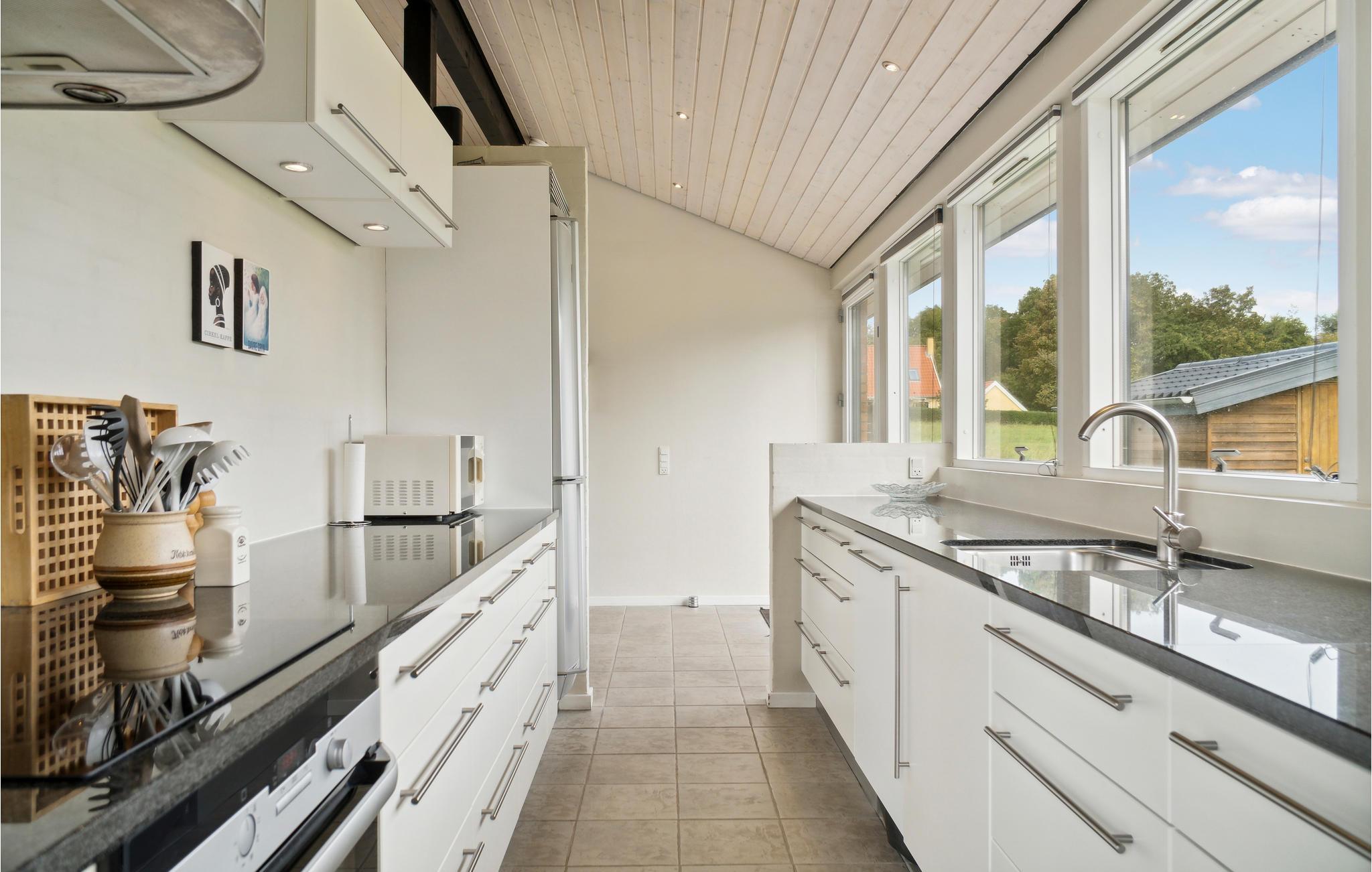 De locatie van het vakantiehuis kan niet beter, want korte afstanden leiden je direct naar het nationale park om te wandelen en te fietsen. Na een paar kilometer bereik je Trehøje, waar niet alleen natuurliefhebbers enthousiast zullen zijn over het uitzicht. De stad Ebeltoft met zijn vele attracties, zoals het glasmuseum, het oude stadhuis en het dierenpark Ree Park, is een bezoek waard voor het hele gezin.