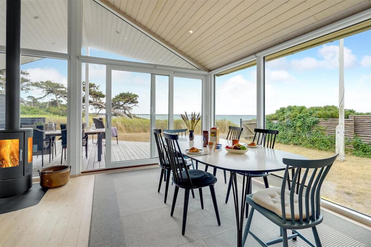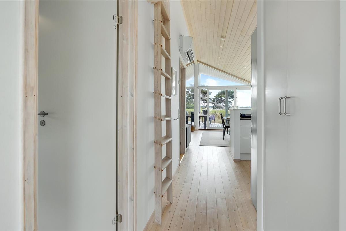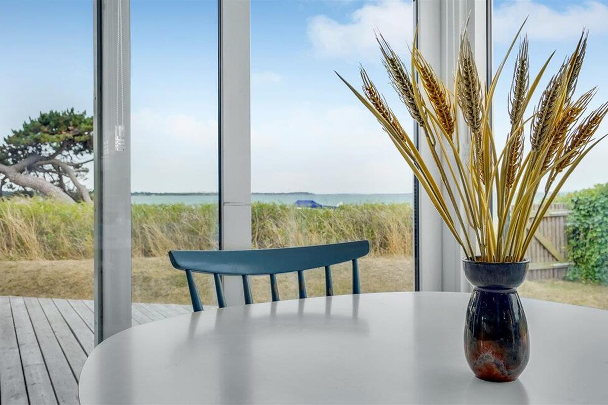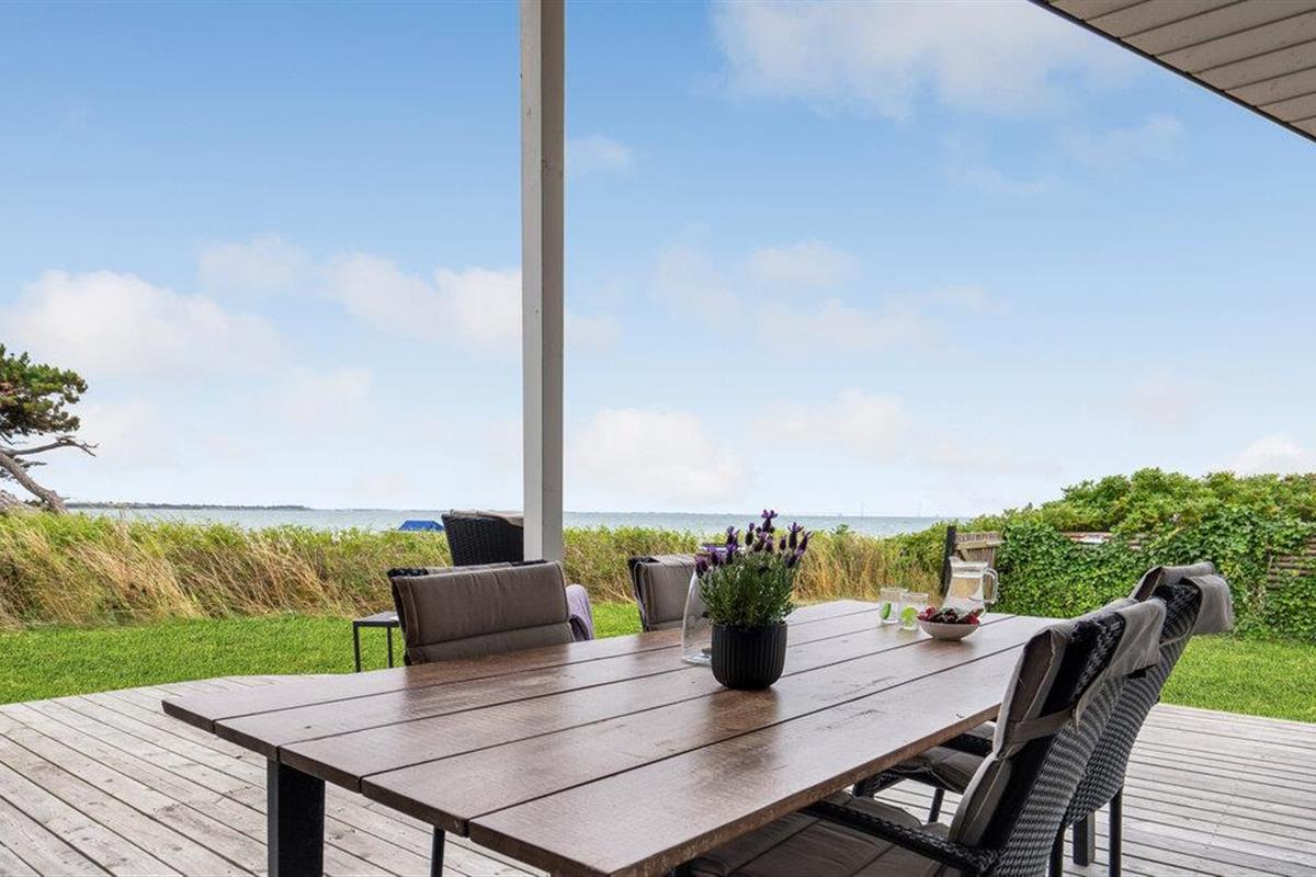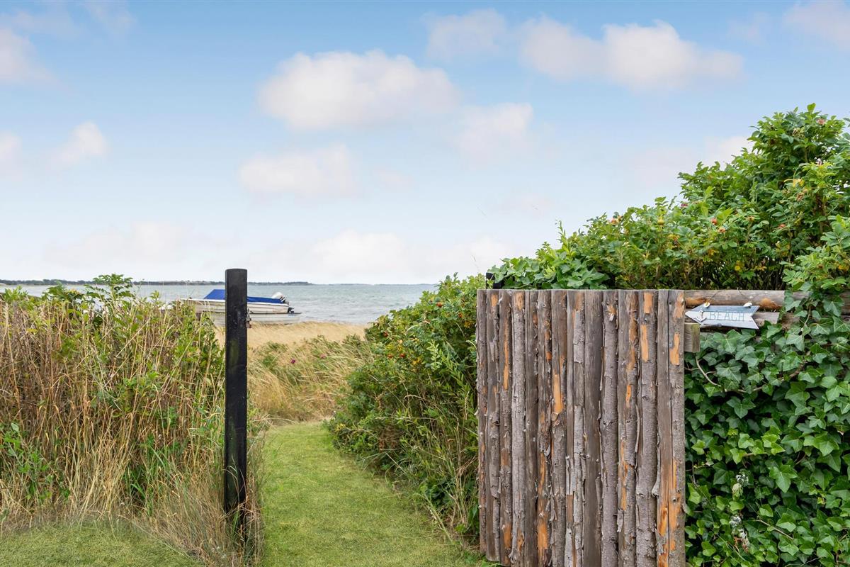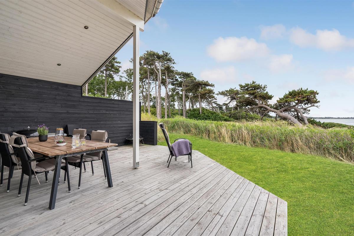 Het grote terras is gedeeltelijk overdekt en verlengt de lichte woonkamer. Hier kunt u samen dineren en later naar de zonsondergang kijken. Een klein pad leidt naar het lange zandstrand van Bildsø. Het strand is bijzonder kindvriendelijk en zal de ogen van uw kinderen doen twinkelen.