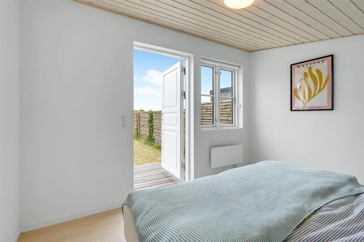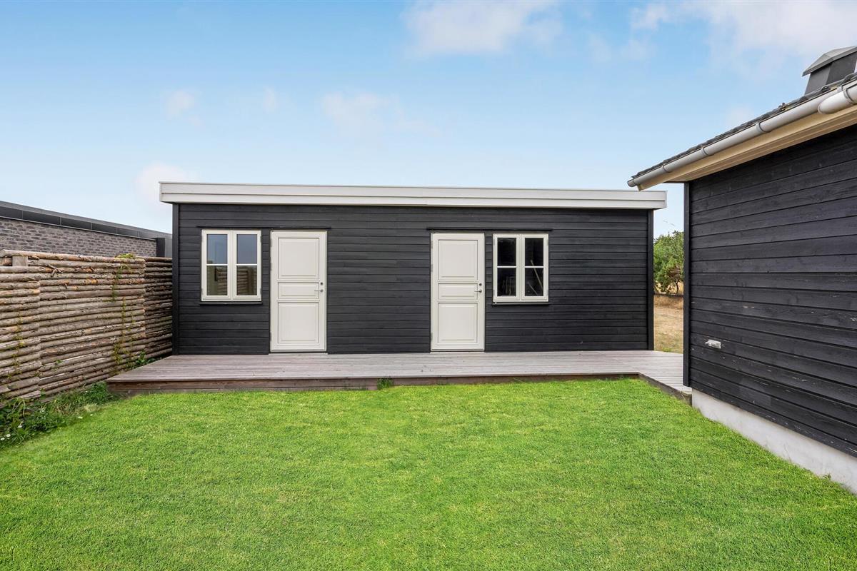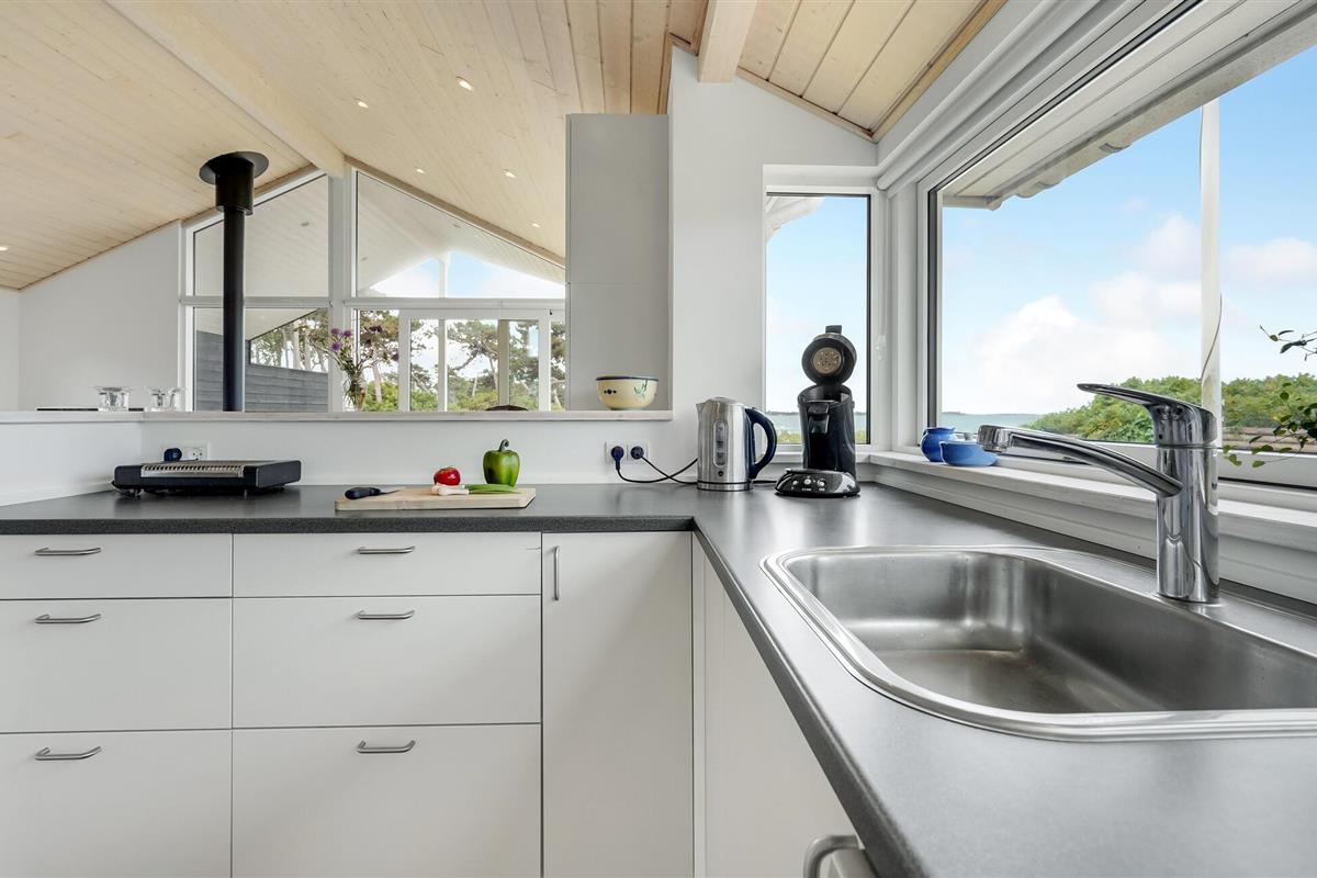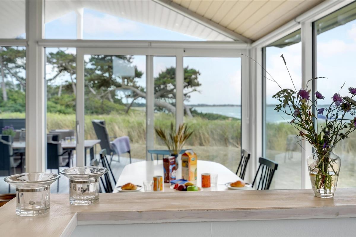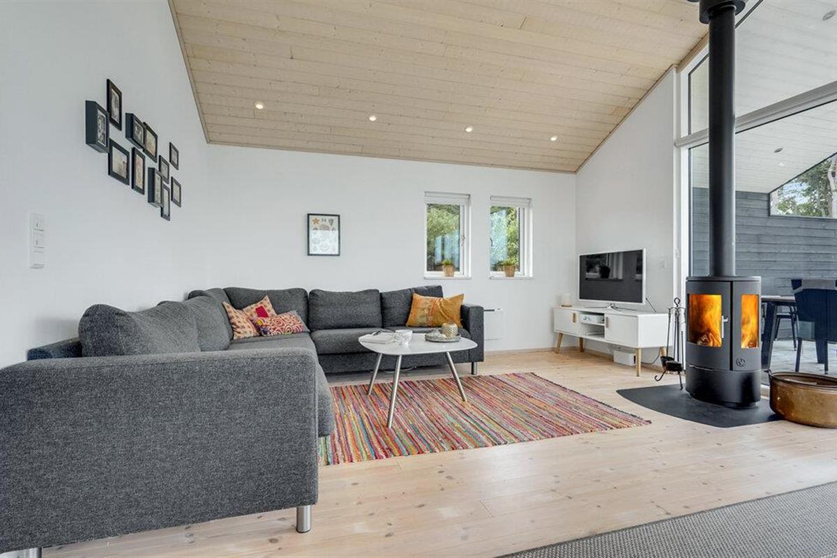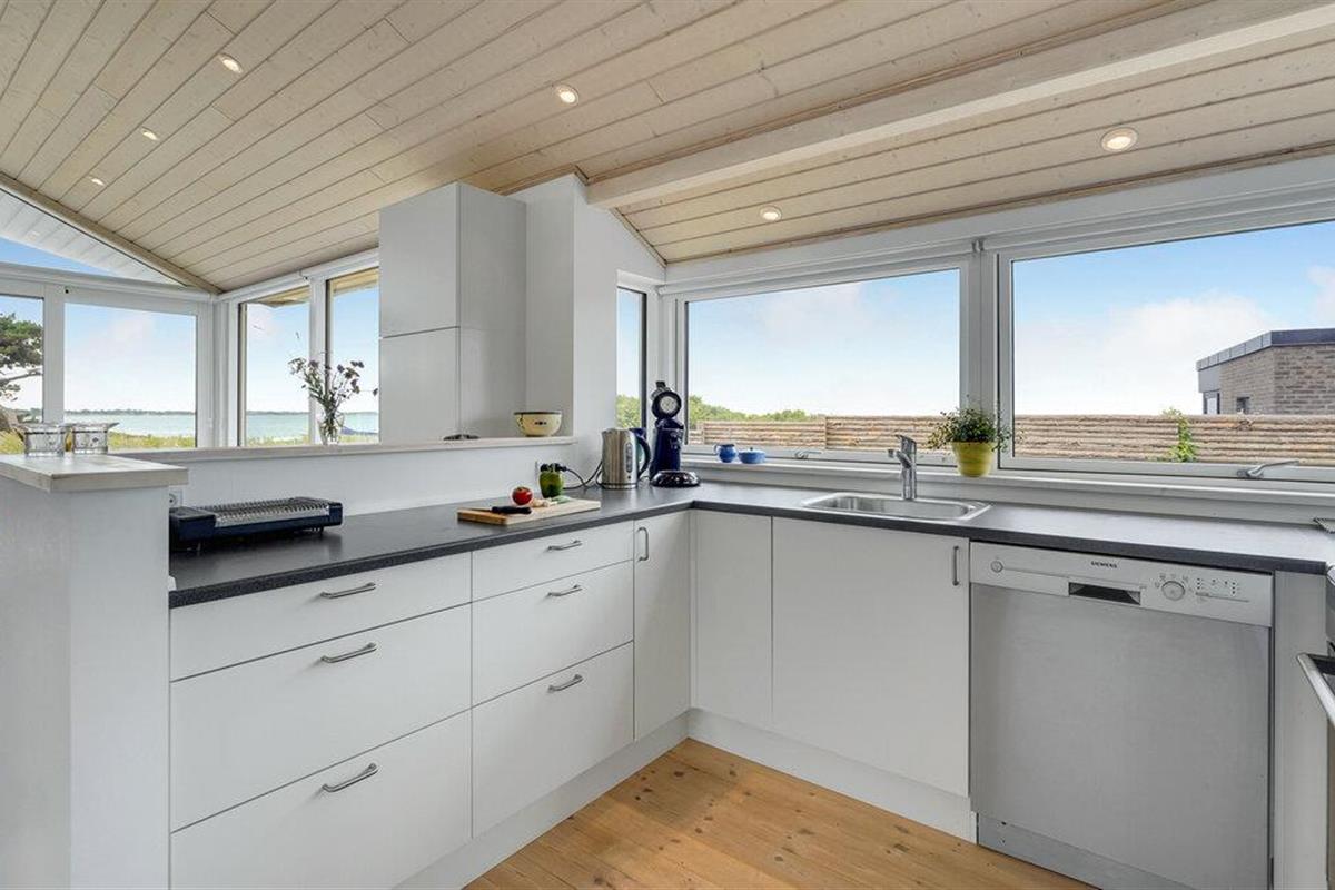 Het grote terras is gedeeltelijk overdekt en verlengt de lichte woonkamer. Hier kunt u samen dineren en later naar de zonsondergang kijken. Een klein pad leidt naar het lange zandstrand van Bildsø. Het strand is bijzonder kindvriendelijk en zal de ogen van uw kinderen doen twinkelen.