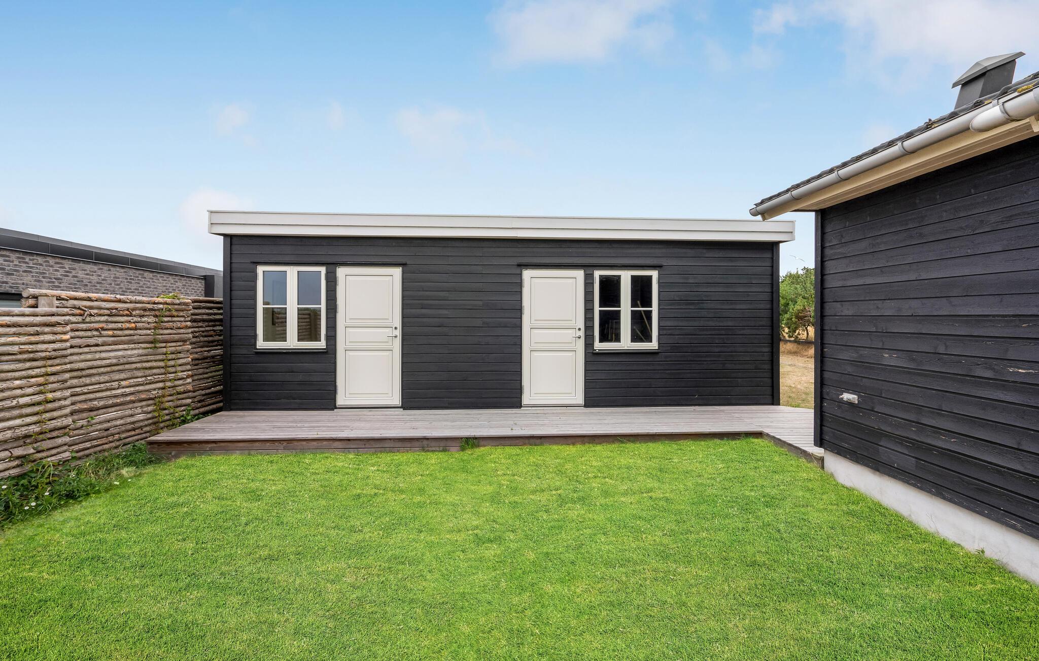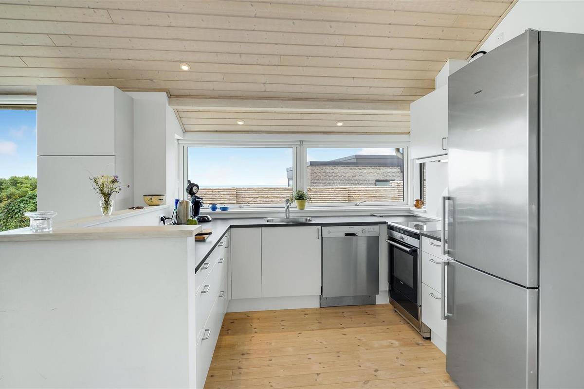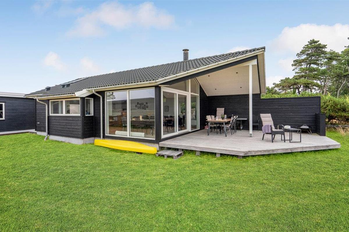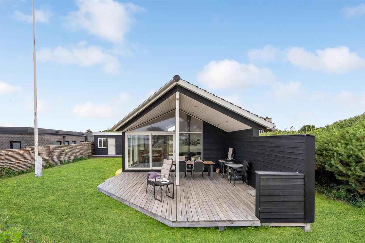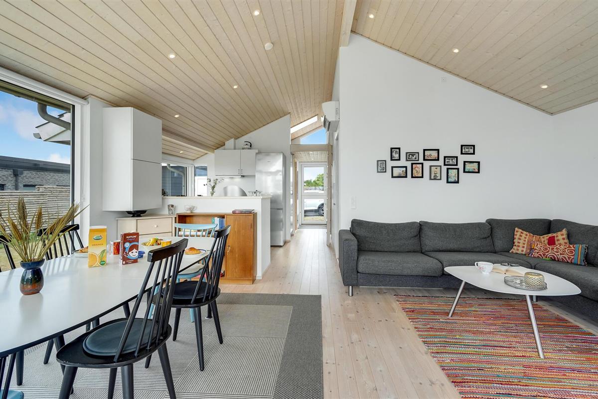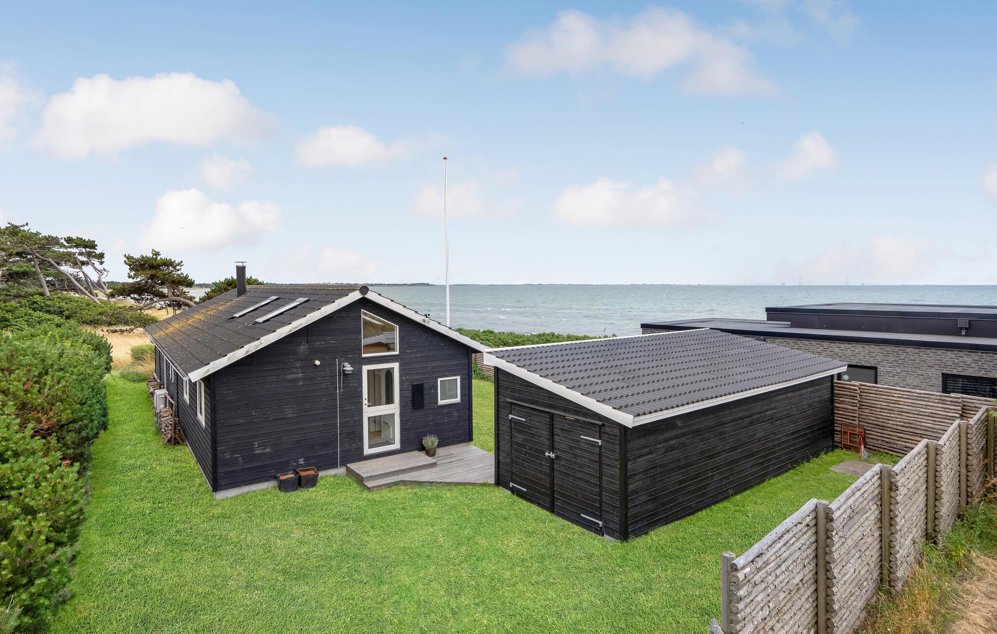 Het grote terras is gedeeltelijk overdekt en verlengt de lichte woonkamer. Hier kunt u samen dineren en later naar de zonsondergang kijken. Een klein pad leidt naar het lange zandstrand van Bildsø. Het strand is bijzonder kindvriendelijk en zal de ogen van uw kinderen doen twinkelen.