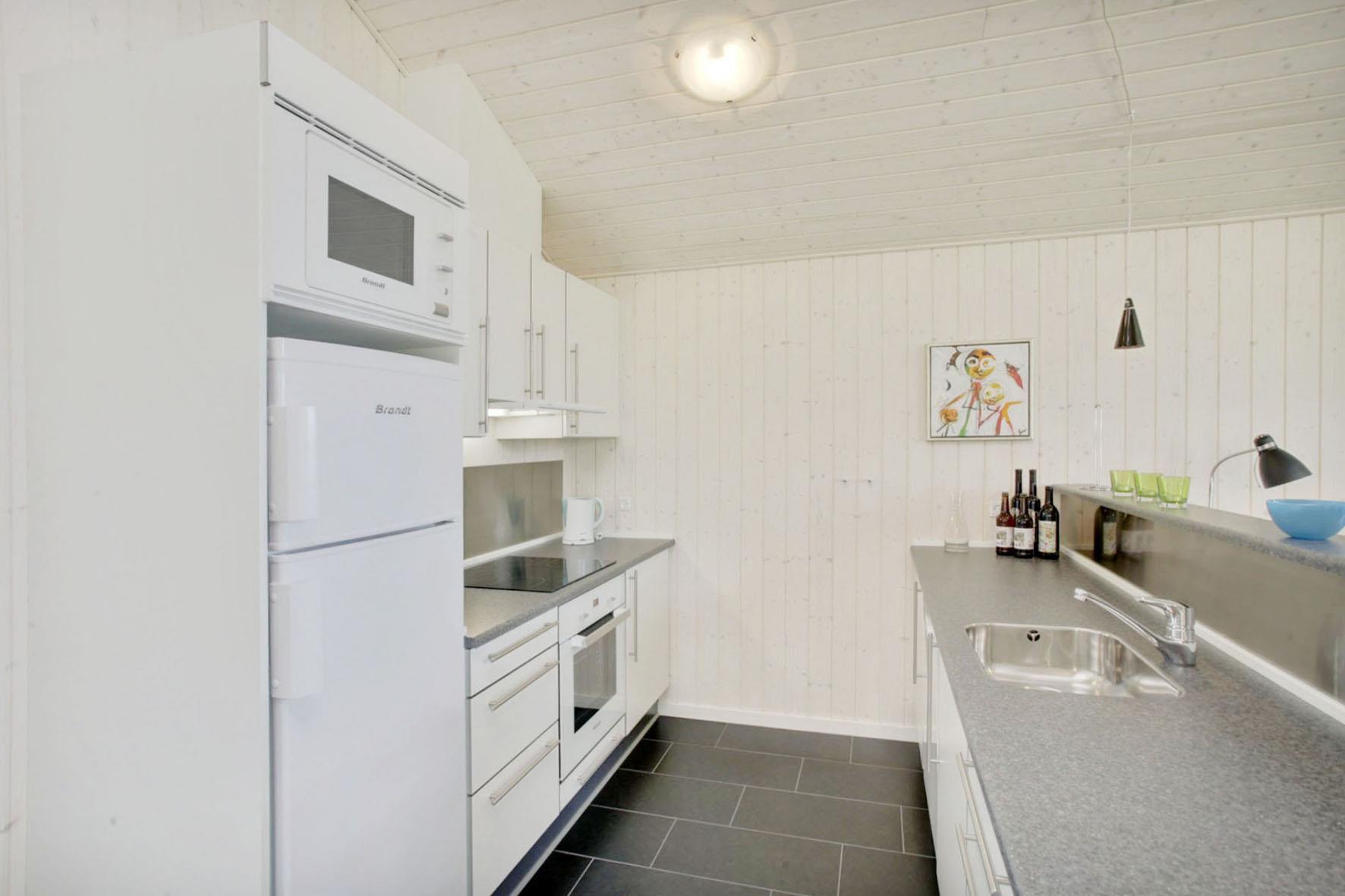 Woonkamer & keuken: koelkast/vriezer, koffiezetapparaat, waterkoker, keramische kookplaat, oven, magnetron en vaatwasser