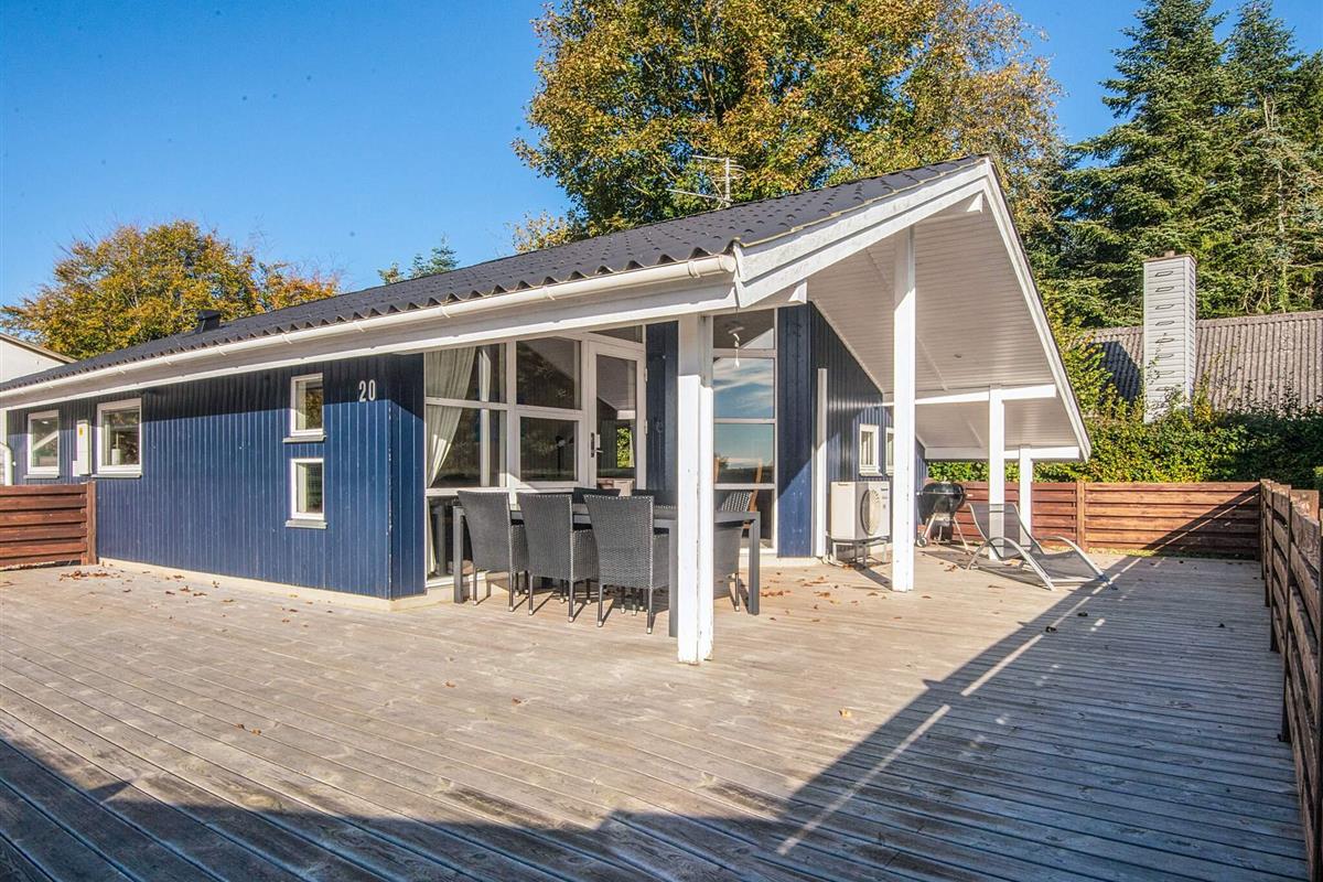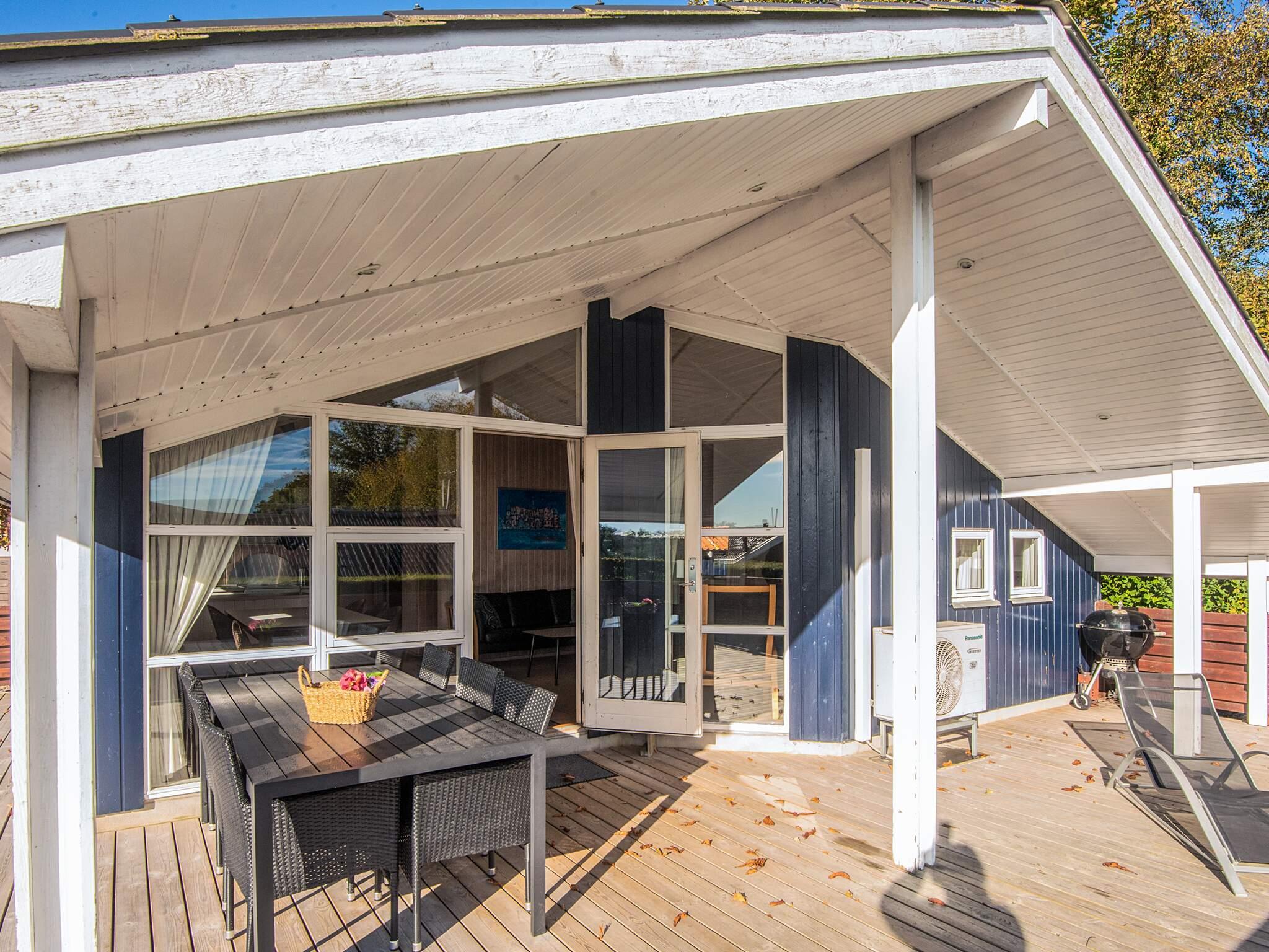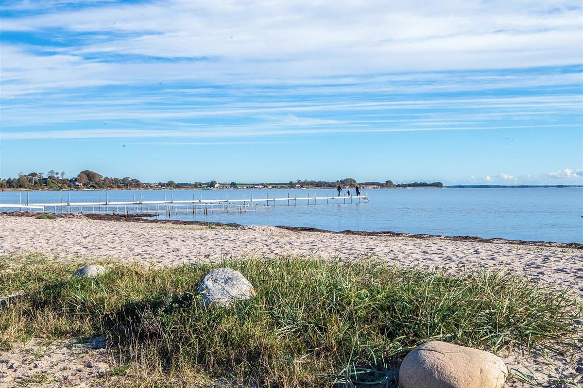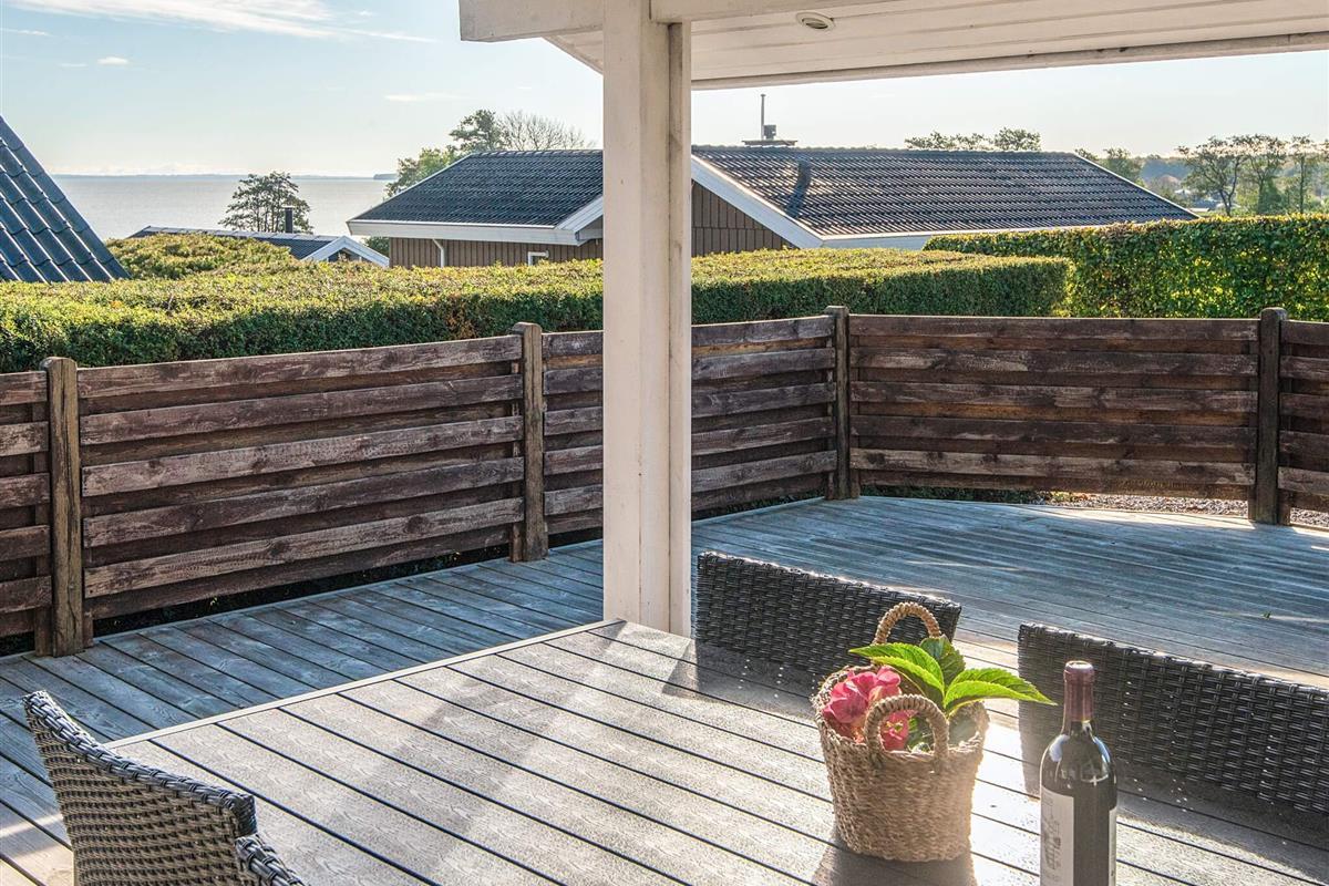 Ferienhaus auf Gartengrundstück mit großer, offener und überdachter Terrasse, auf denen Sie die Sonne und die warmen Sommerabende genießen können. Von Terrasse und Wohnzimmer aus haben Sie einen herrlichen Blick auf das Meer. Auf dem Grundstück gibt es eine Sandkiste für die Kleinsten. Schönes Badezimmer mit Whirlpool. Das Haus liegt 300 m vom schönen, kinderfreundlichen Sandstrand mit Badesteg entfernt, der sich auch gut zum Surfen eignet. In der Hochsaison gibt es Bademöglichkeit im nahe gelegenen, beheizten Swimmingpool. Gute Angelmöglichkeiten.