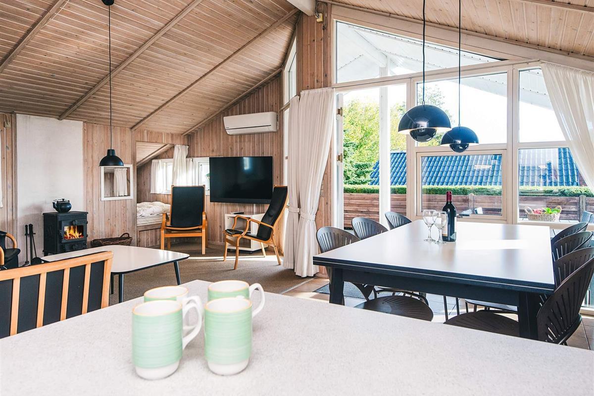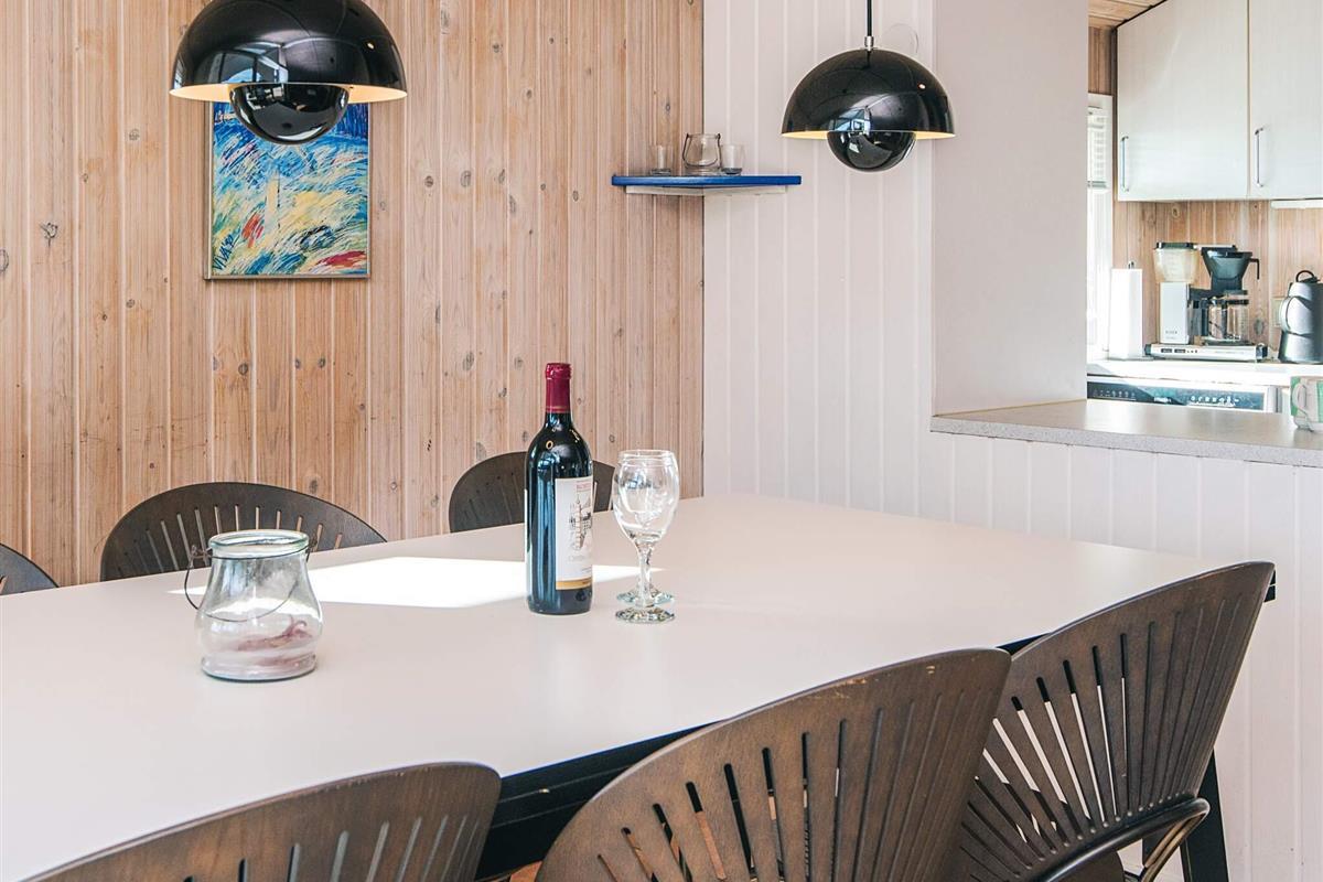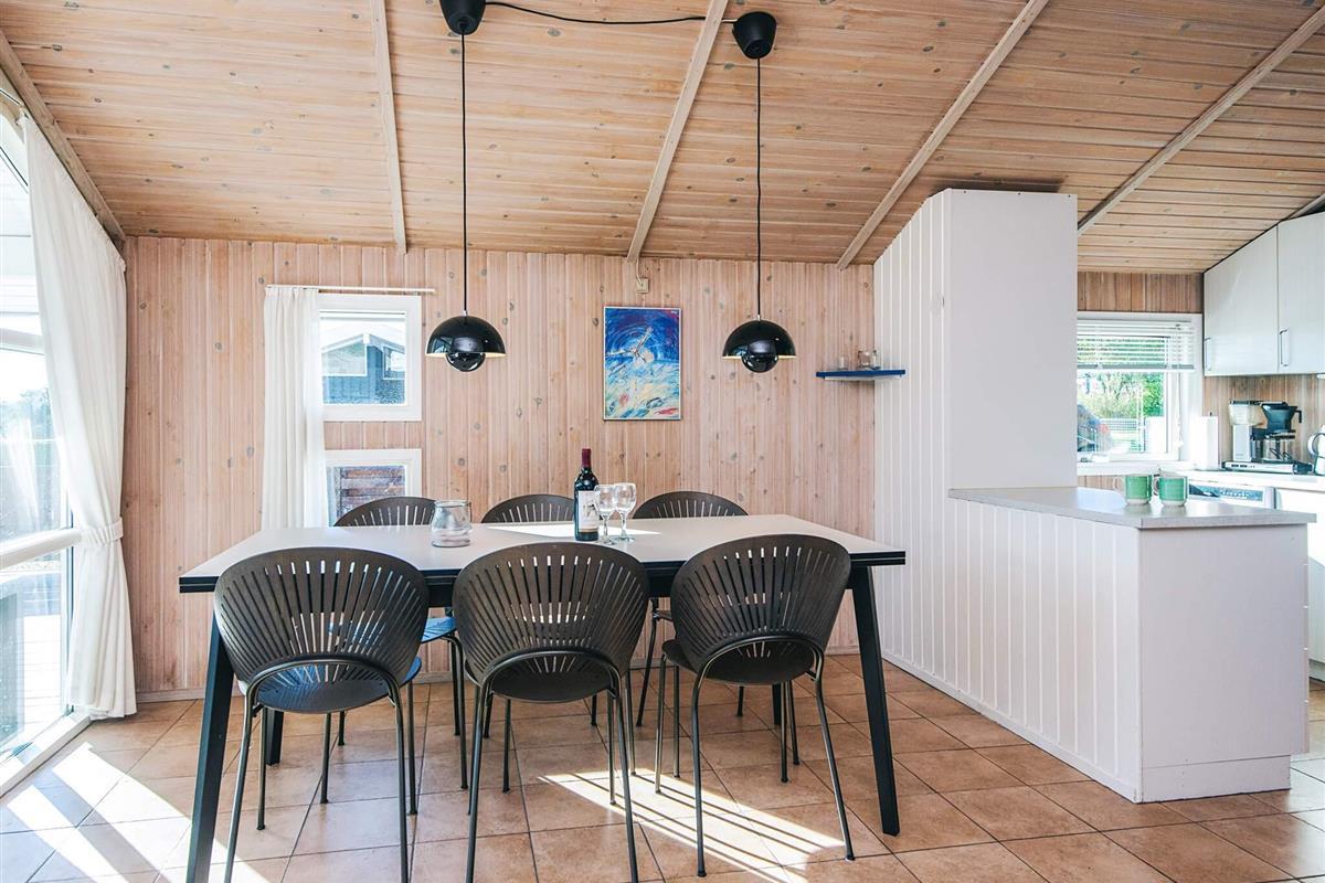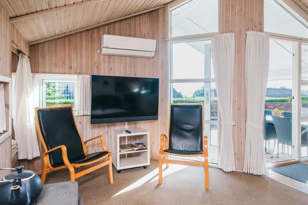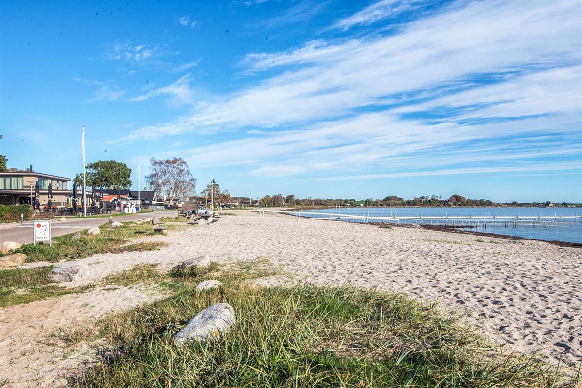 Ferienhaus auf Gartengrundstück mit großer, offener und überdachter Terrasse, auf denen Sie die Sonne und die warmen Sommerabende genießen können. Von Terrasse und Wohnzimmer aus haben Sie einen herrlichen Blick auf das Meer. Auf dem Grundstück gibt es eine Sandkiste für die Kleinsten. Schönes Badezimmer mit Whirlpool. Das Haus liegt 300 m vom schönen, kinderfreundlichen Sandstrand mit Badesteg entfernt, der sich auch gut zum Surfen eignet. In der Hochsaison gibt es Bademöglichkeit im nahe gelegenen, beheizten Swimmingpool. Gute Angelmöglichkeiten.