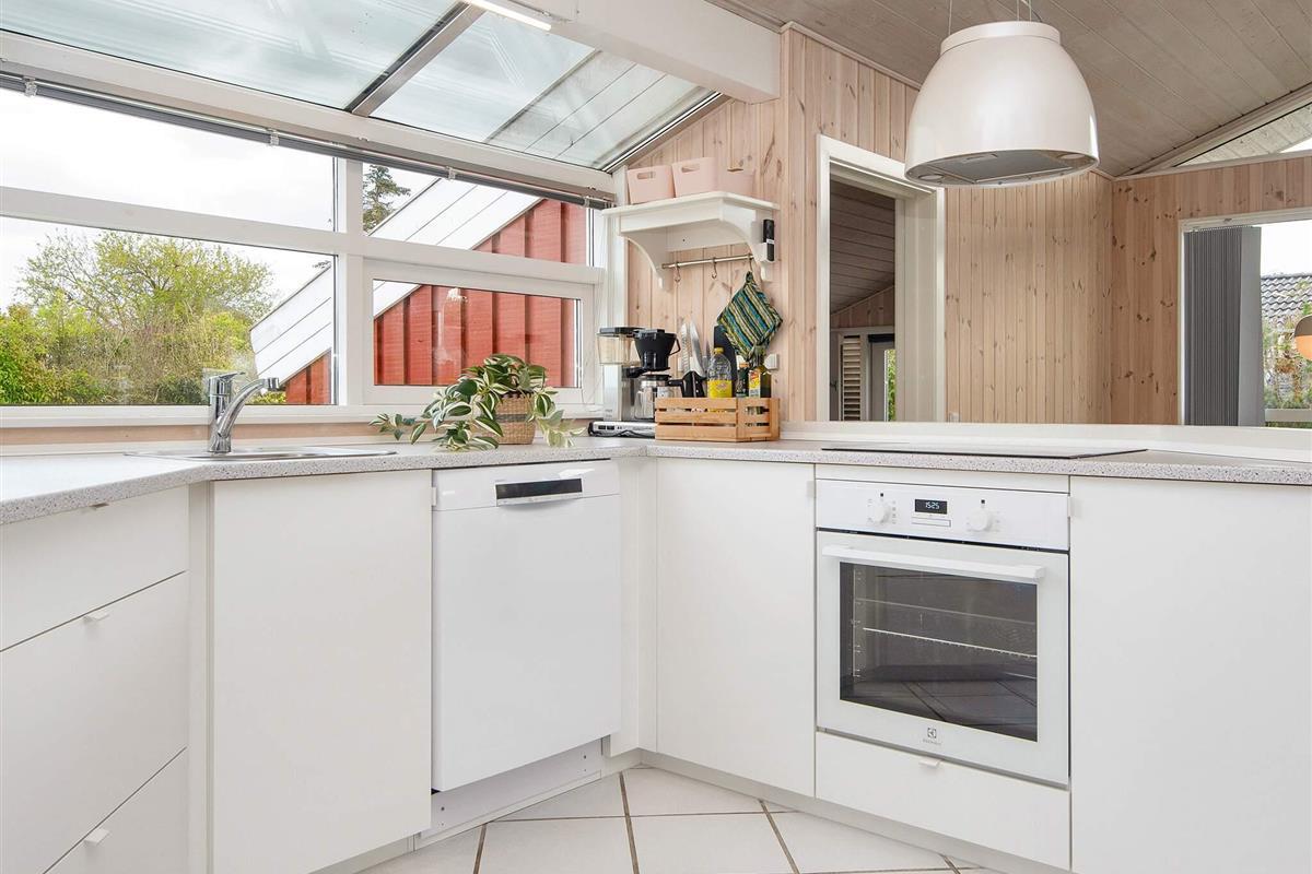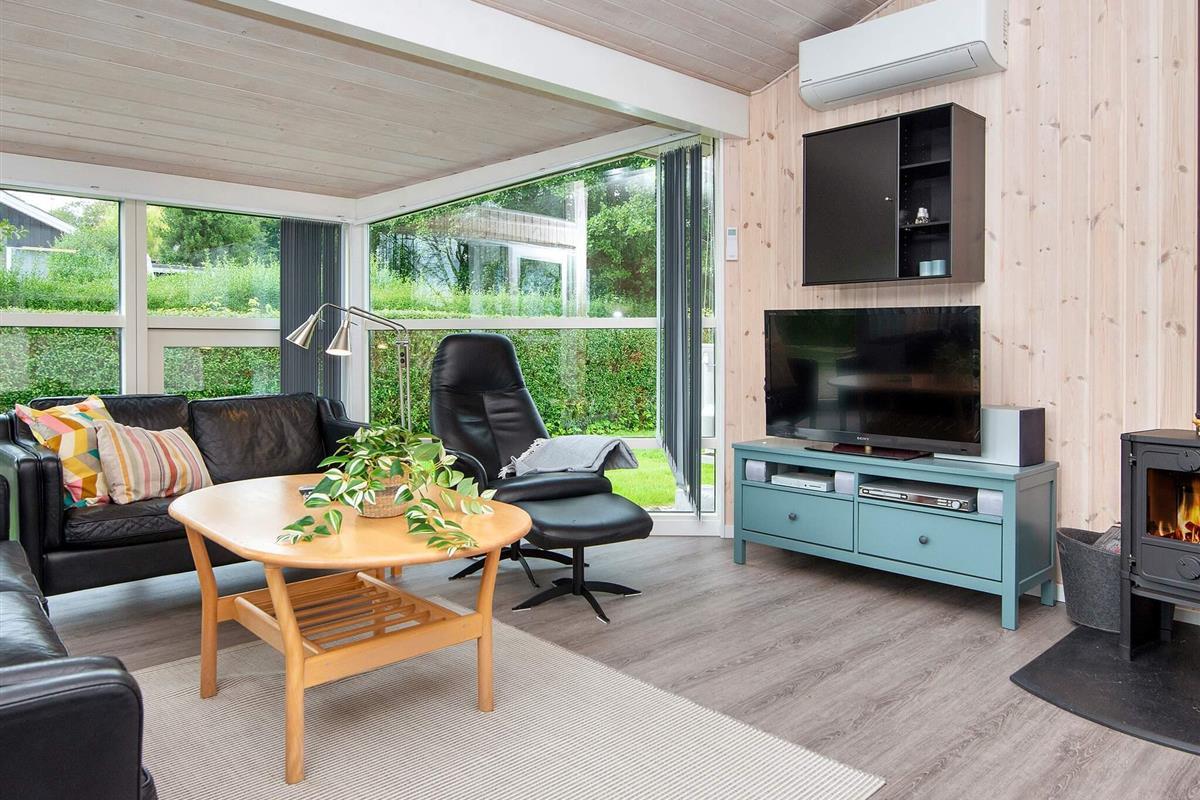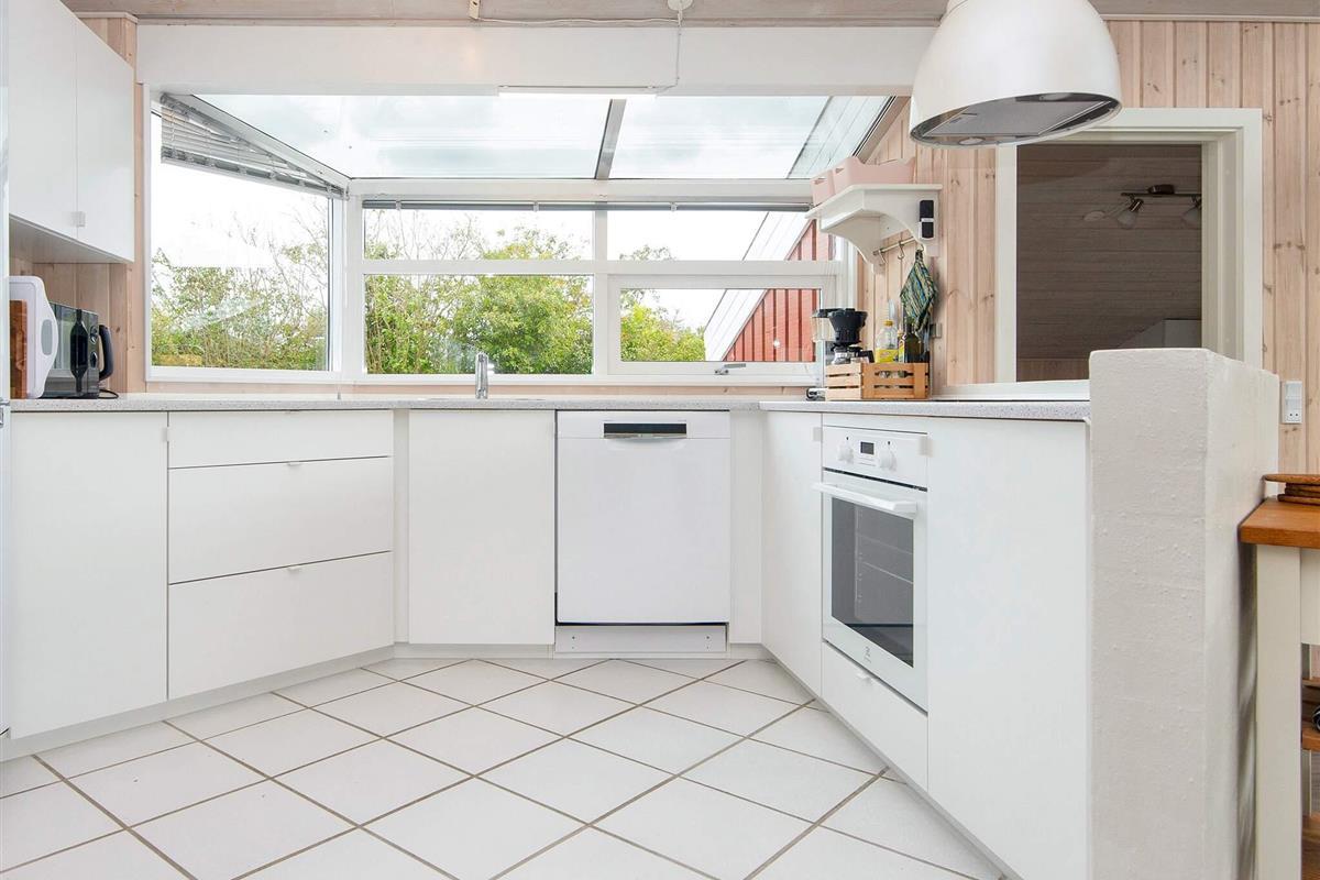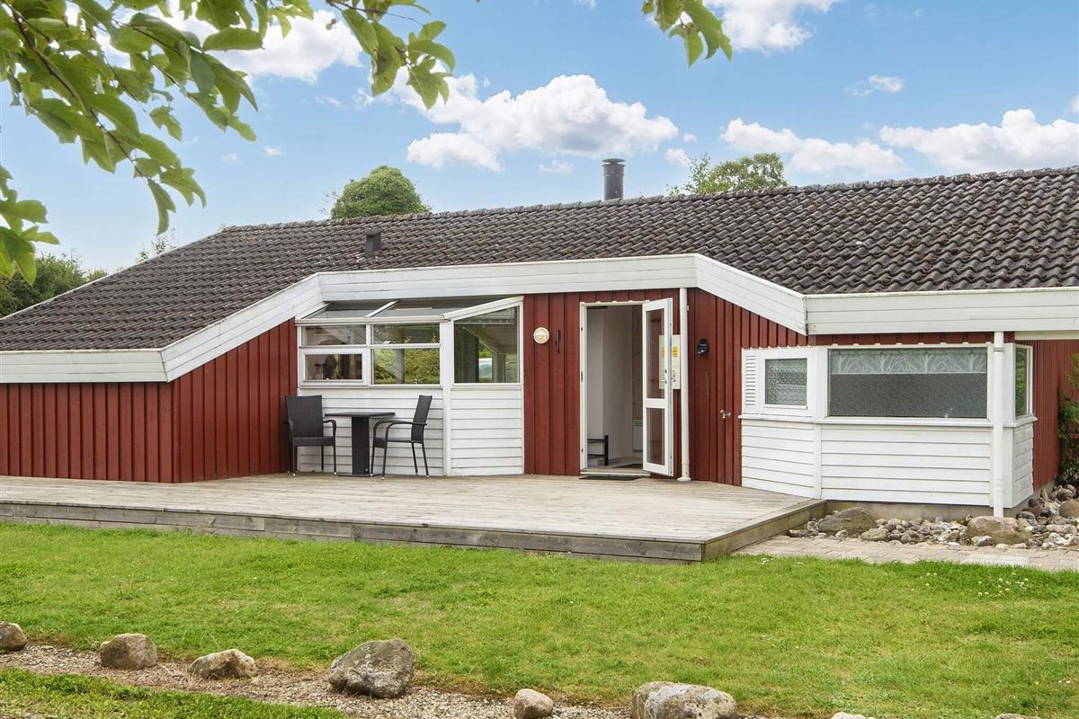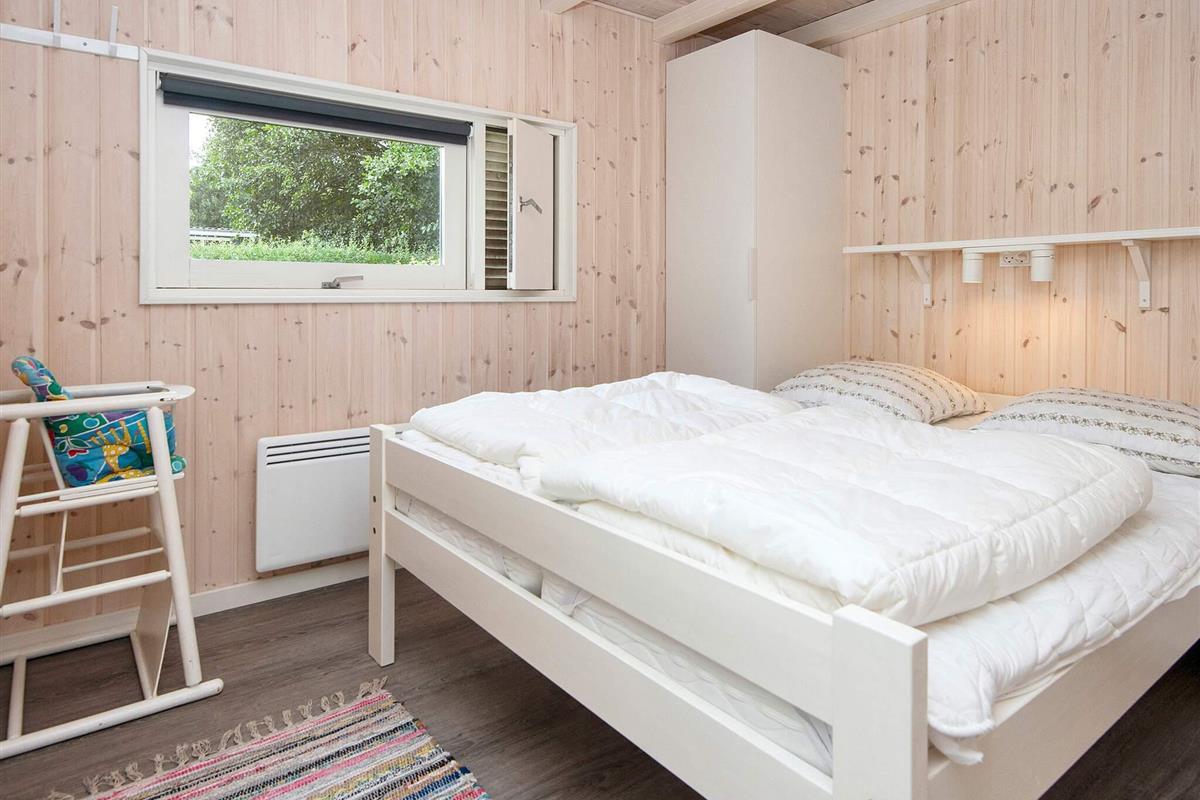 In 2. Reihe am Bjert Strand, einem kinderfreundlichen Badestrand, liegt dieses traditionelle Ferienhaus. Schräge Winkel und Nischen geben ihm seine besondere Atmosphäre. Für Entspannung sorgen Badewanne und Sauna. Die energiesparende Wärmepumpe kann auch als Klimaanlage genutzt werden. Für Kinder wurde ein Sandkasten auf dem Grundstück aufgestellt.