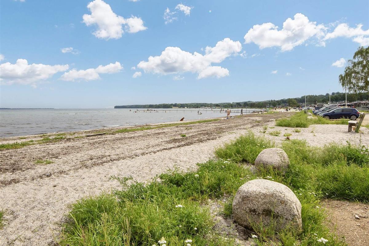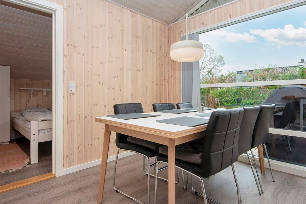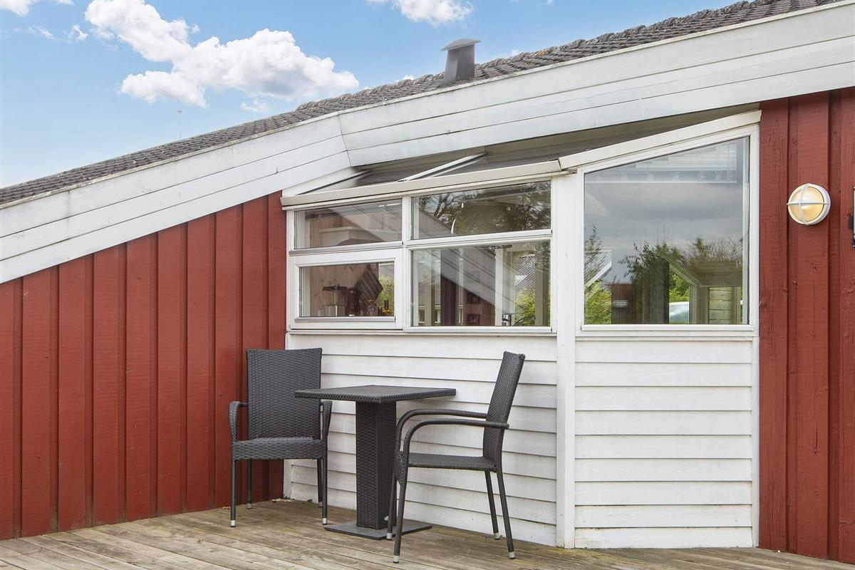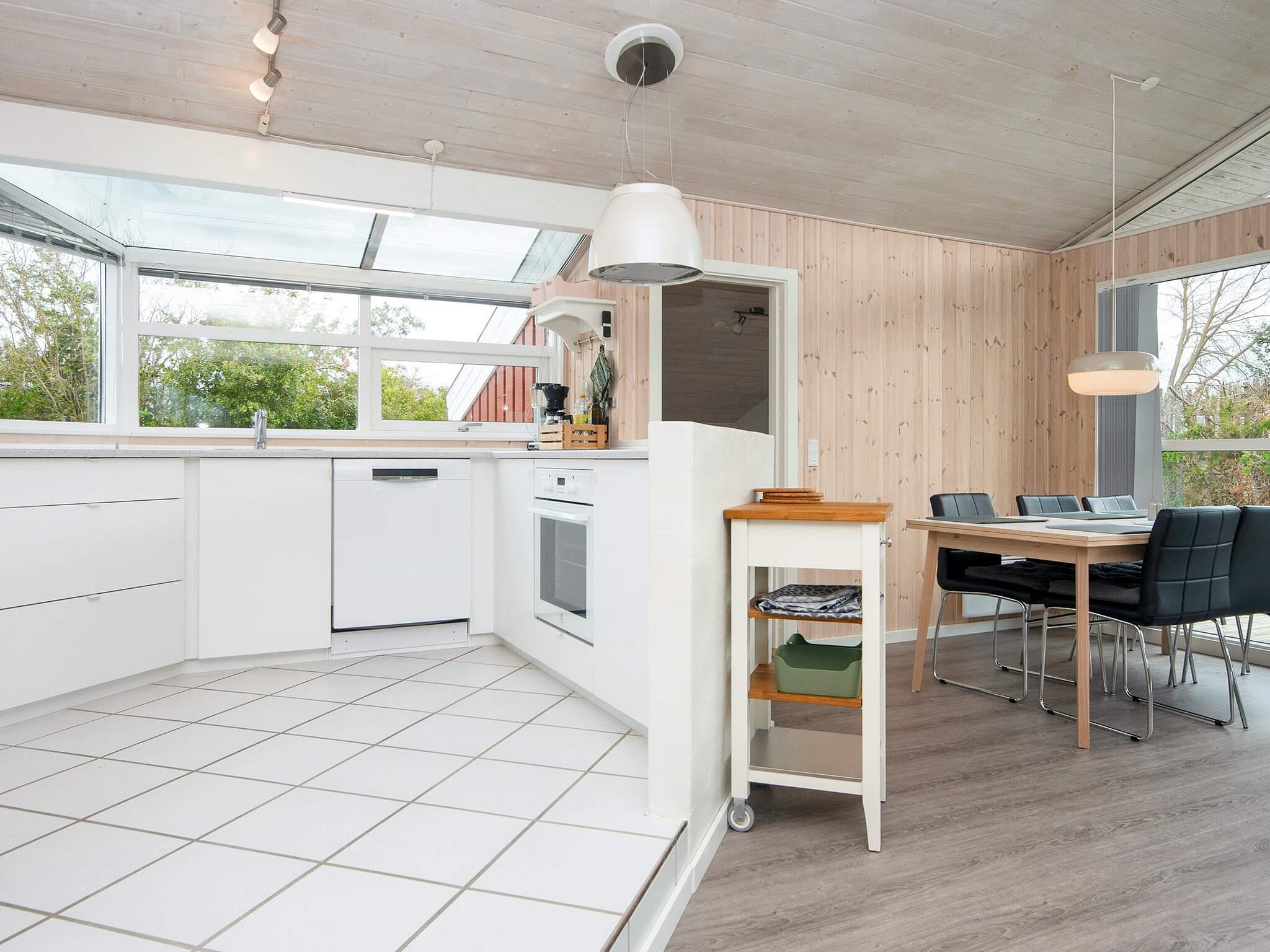 In 2. Reihe am Bjert Strand, einem kinderfreundlichen Badestrand, liegt dieses traditionelle Ferienhaus. Schräge Winkel und Nischen geben ihm seine besondere Atmosphäre. Für Entspannung sorgen Badewanne und Sauna. Die energiesparende Wärmepumpe kann auch als Klimaanlage genutzt werden. Für Kinder wurde ein Sandkasten auf dem Grundstück aufgestellt.