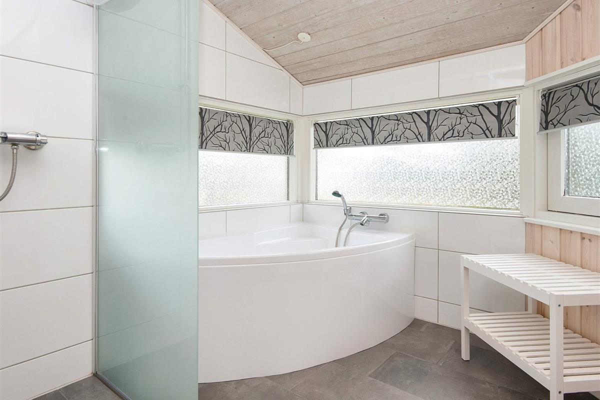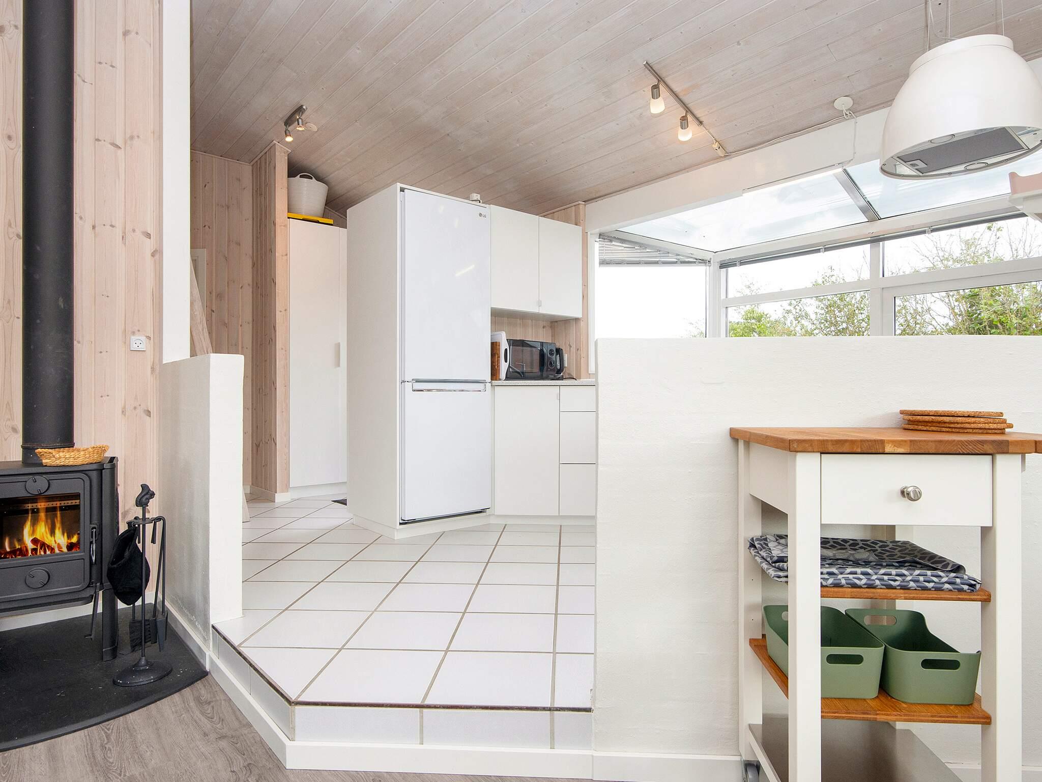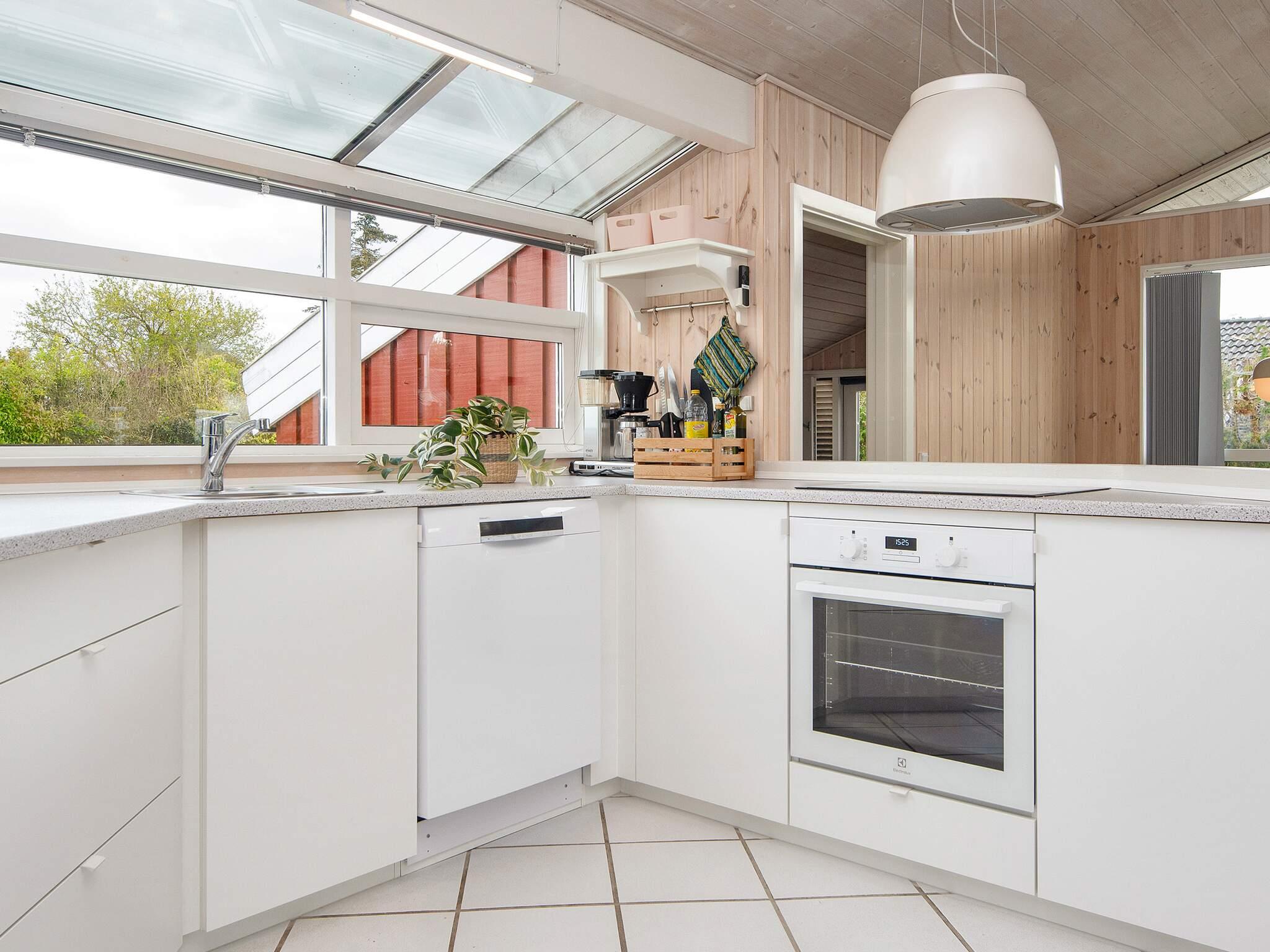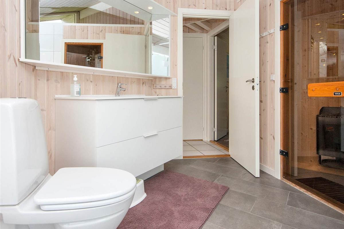 In 2. Reihe am Bjert Strand, einem kinderfreundlichen Badestrand, liegt dieses traditionelle Ferienhaus. Schräge Winkel und Nischen geben ihm seine besondere Atmosphäre. Für Entspannung sorgen Badewanne und Sauna. Die energiesparende Wärmepumpe kann auch als Klimaanlage genutzt werden. Für Kinder wurde ein Sandkasten auf dem Grundstück aufgestellt.