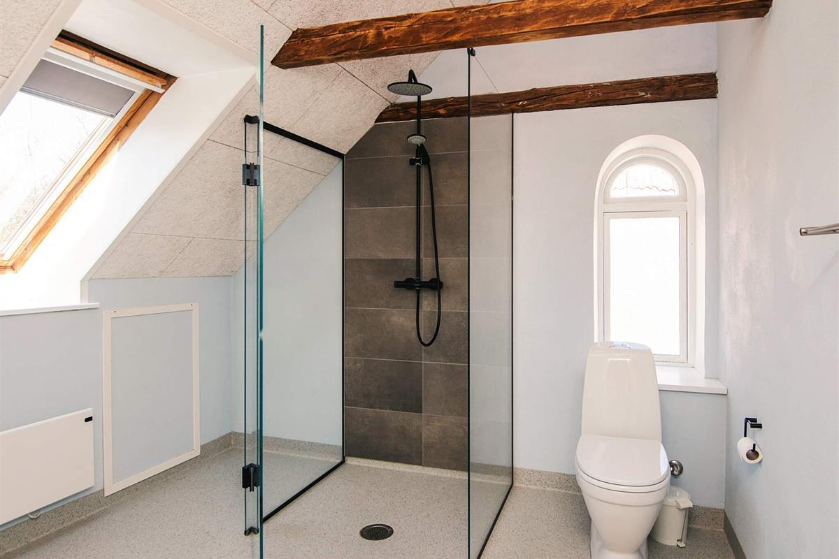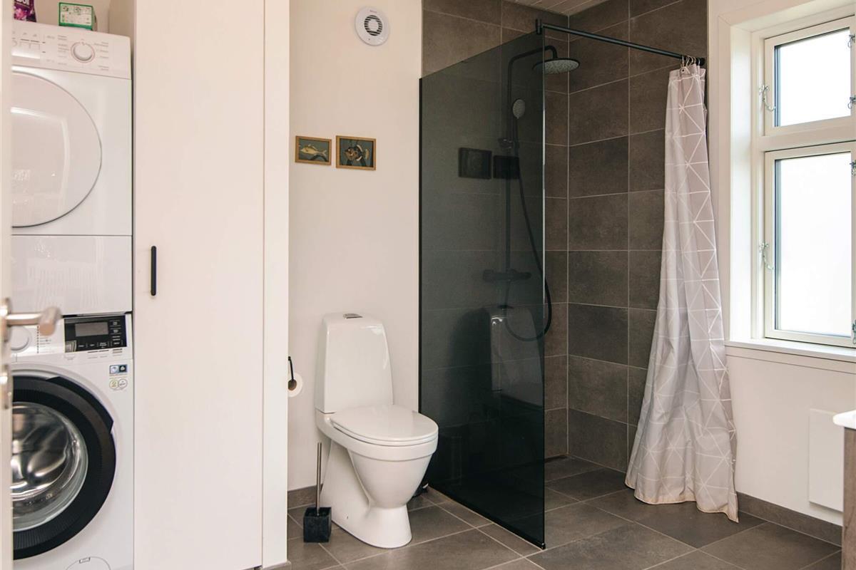 Im ersten Stock befindet sich außerdem ein Wohnzimmer mit herrlichem Blick auf das Wasser. Sowohl im Erdgeschoss als auch im ersten Stock befinden sich zwei Schlafzimmer und ein Badezimmer. Alle Schlafzimmer des Ferienhauses liegen weit voneinander entfernt, sodass sich die Räume gut unterteilen lassen. Im Haus befindet sich ein Holzofen.