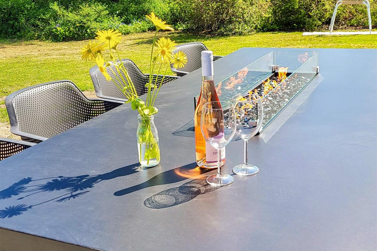 Auch das Leben im Freien ist etwas ganz Besonderes. Hier können Sie den riesigen Garten und die schöne Terrasse mit Blick auf das Wasser genießen. Der Gartentisch ist ein sogenannter „Feuertisch“, den Sie abends anzünden und das Flammenspiel unter freiem Himmel genießen können. Auf der Terrasse finden Sie außerdem eine gemütliche Loungegarnitur, die zum Entspannen einlädt.