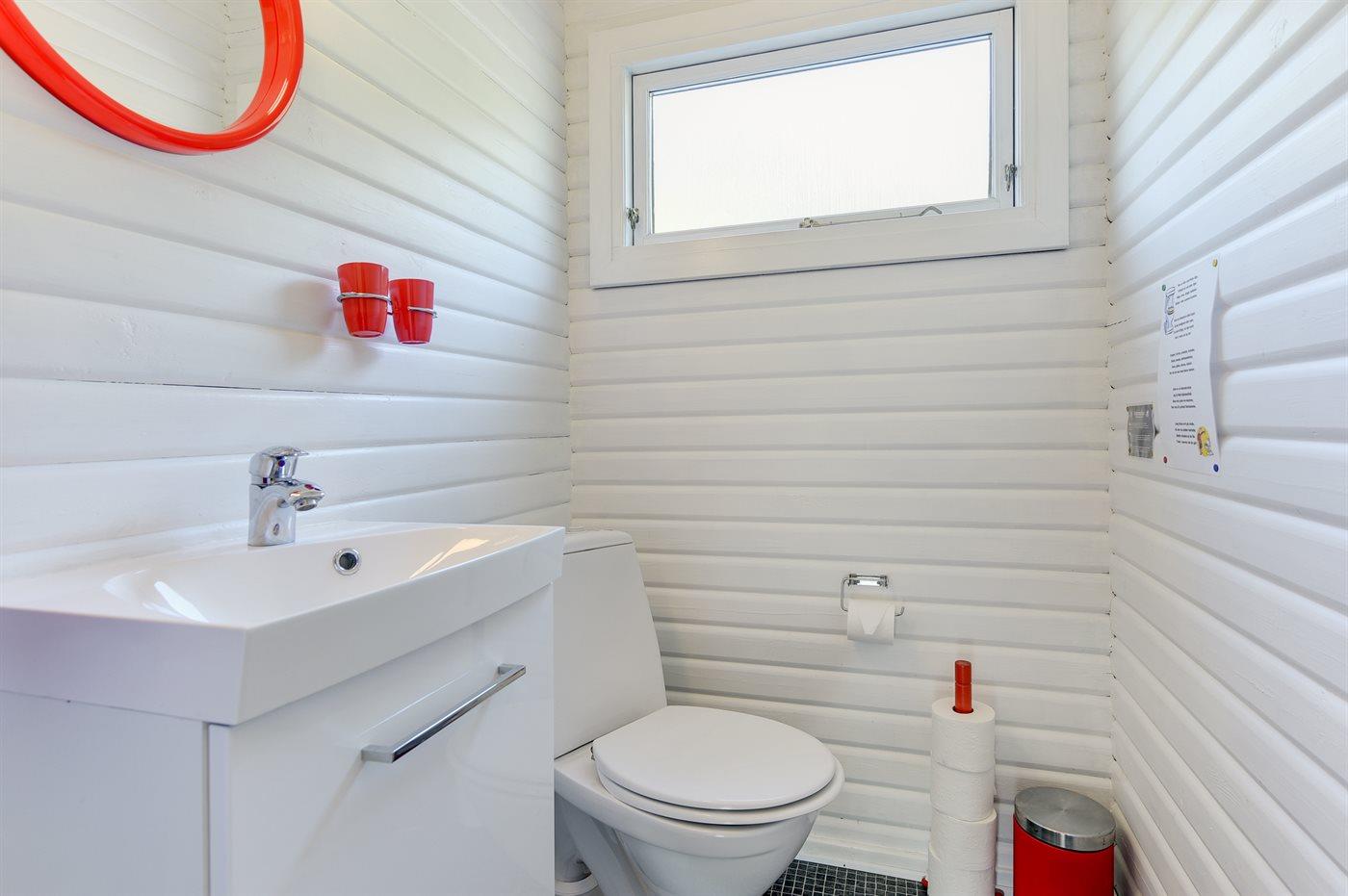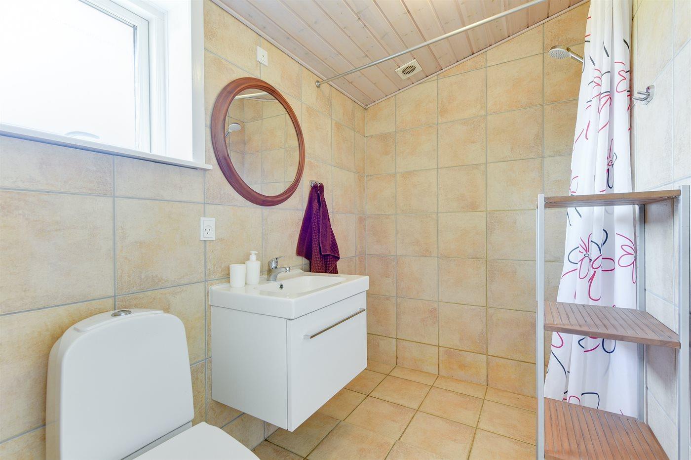 Er is 1 badkamer met douchehok en 2 toiletten, waarvan 1 gastentoilet. Er is vloerverwarming in 1 badkamer.