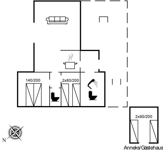 Er zijn in totaal 3 slaapkamers. De slaapplaatsen zijn als volgt verdeeld: 2 slaapplaatsen in tweepersoonsbed. 4 slaapplaatsen in eenpersoonsbedden.2 van deze slaapplaatsen bevinden zich in de bijgebouw. Verder is kinderbed ter beschikking.