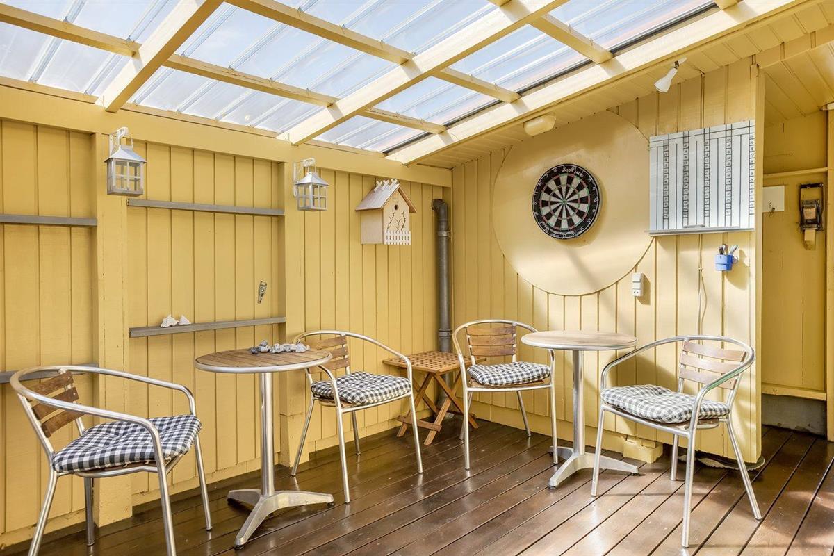 De vakantiewoning is gelegen op een 375 m² groot aangelegde tuin. Afstand tot de zee 150 m. Dichtstbijzijnde winkel 3700 m. Bij de vakantiewoning hoort terras. Daarnaast is er een overdekt terras. Schommel. Speeltoren. Glijbaan. Afstand tot speelplaats 300 m. Barbecue. Carport ter beschikking. Parkeerplaats bij het huis.